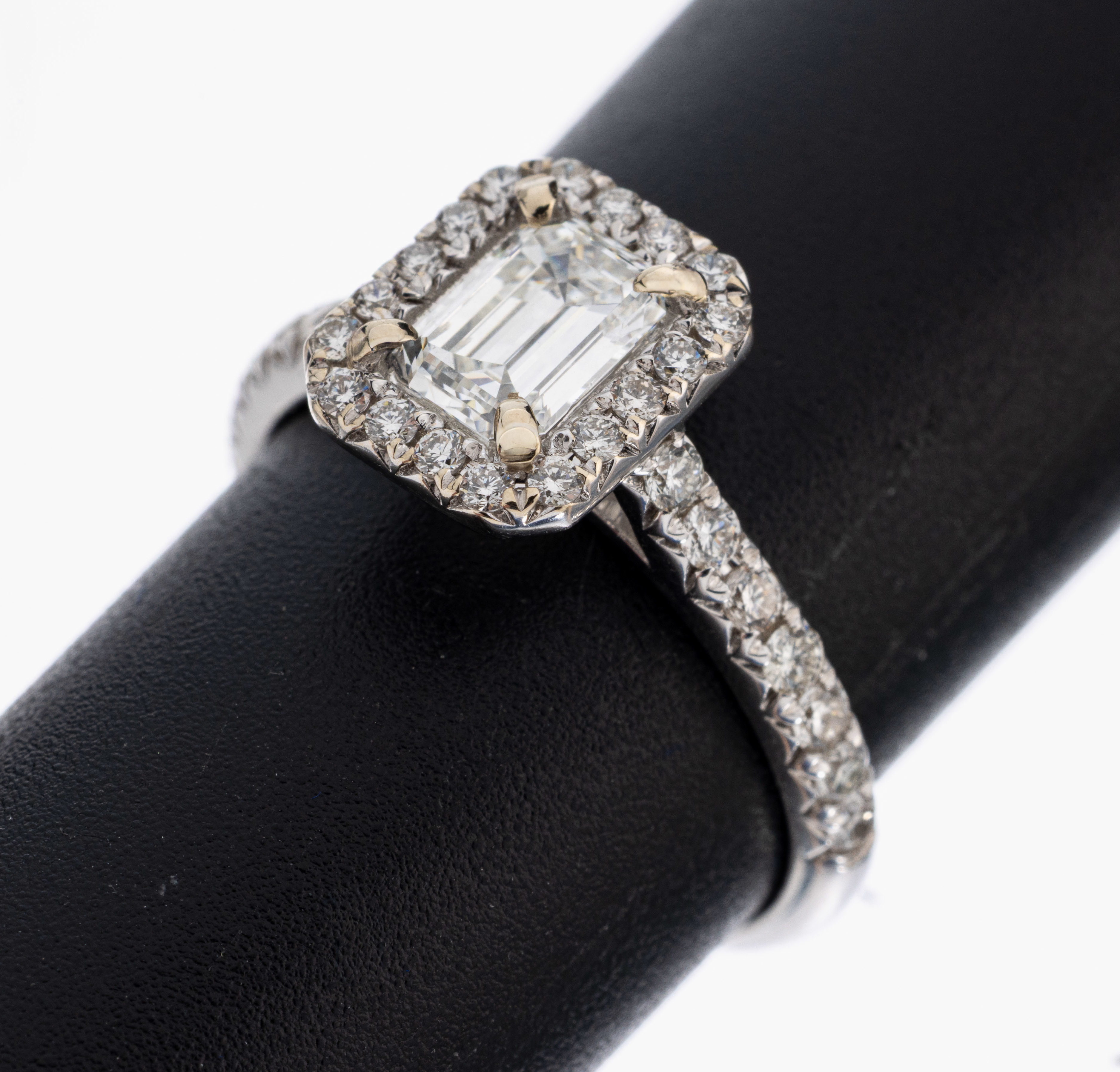 18 kt Gold Diamant-Ring, WG 750/000, mittigDiamant im Emerald Cut ca. 0.78 ct Weiß/si,