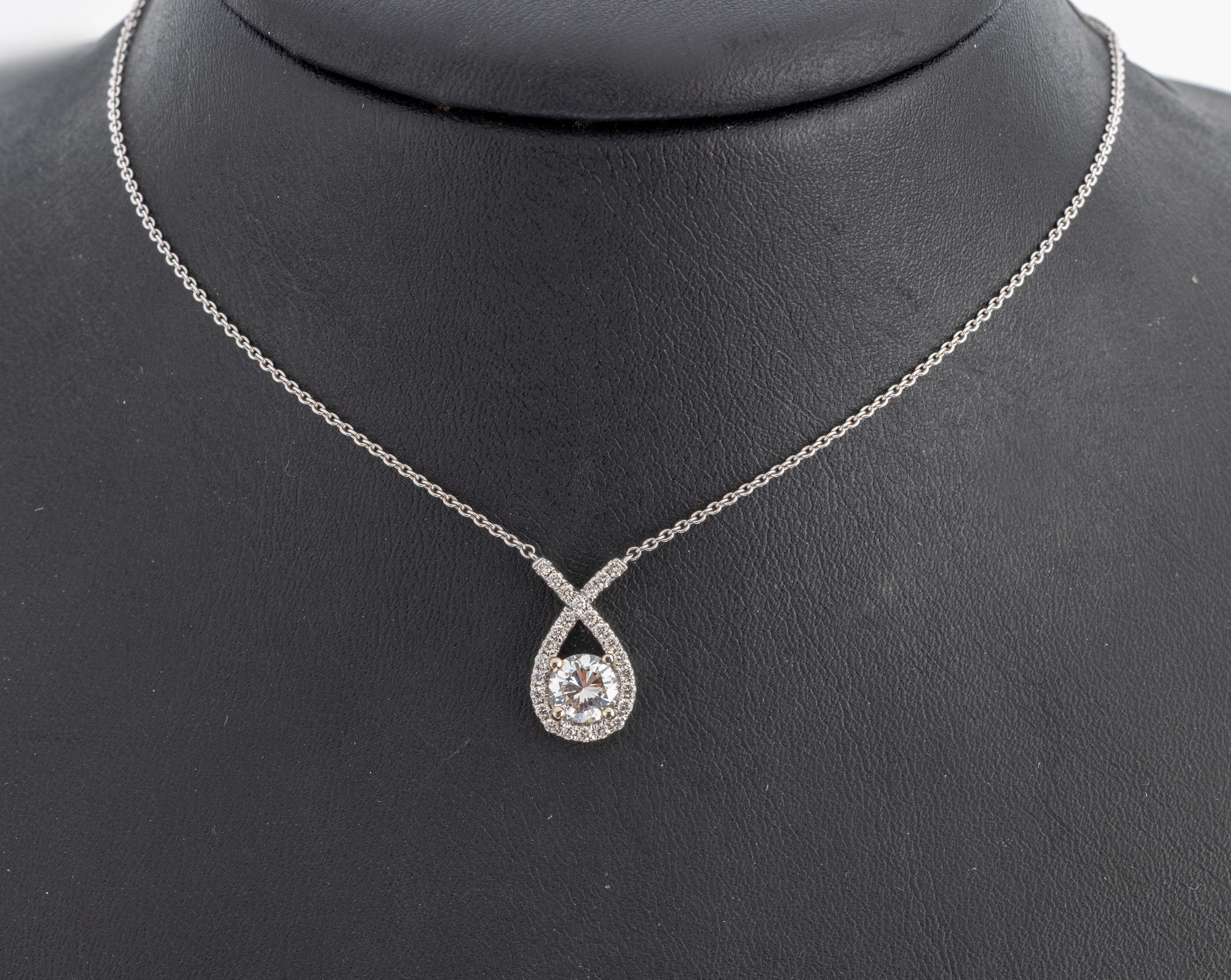 18 kt Gold Brillant-Collier, WG 750/000, Mittelteil tropfenf., mittig Brillant ca.