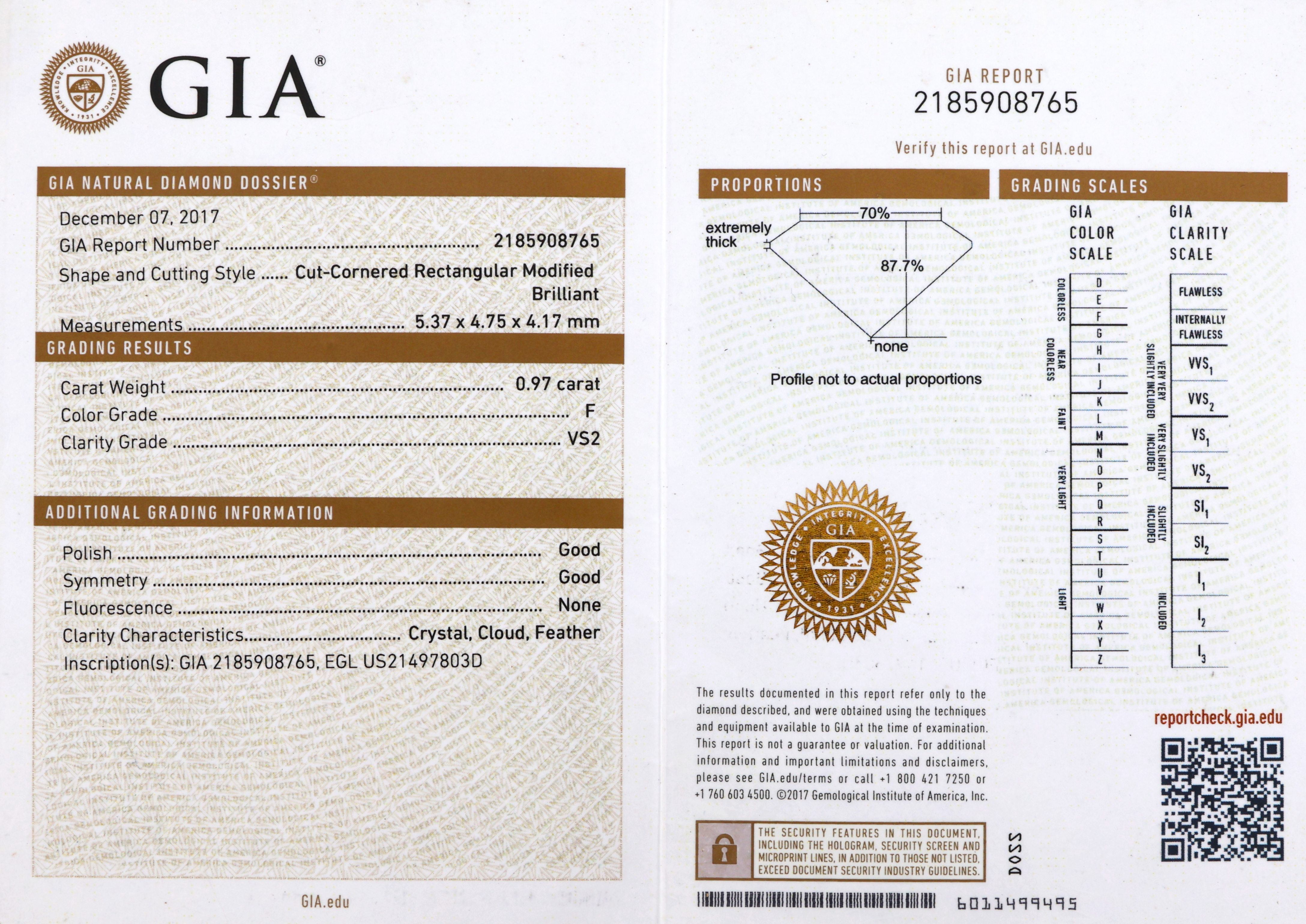 ca. 0.97 ct feines Weiß(F)/vs1, 30 Brillanten zus.ca. 0.62 ct (grav.) feines Weiß-Weiß/vs-si,