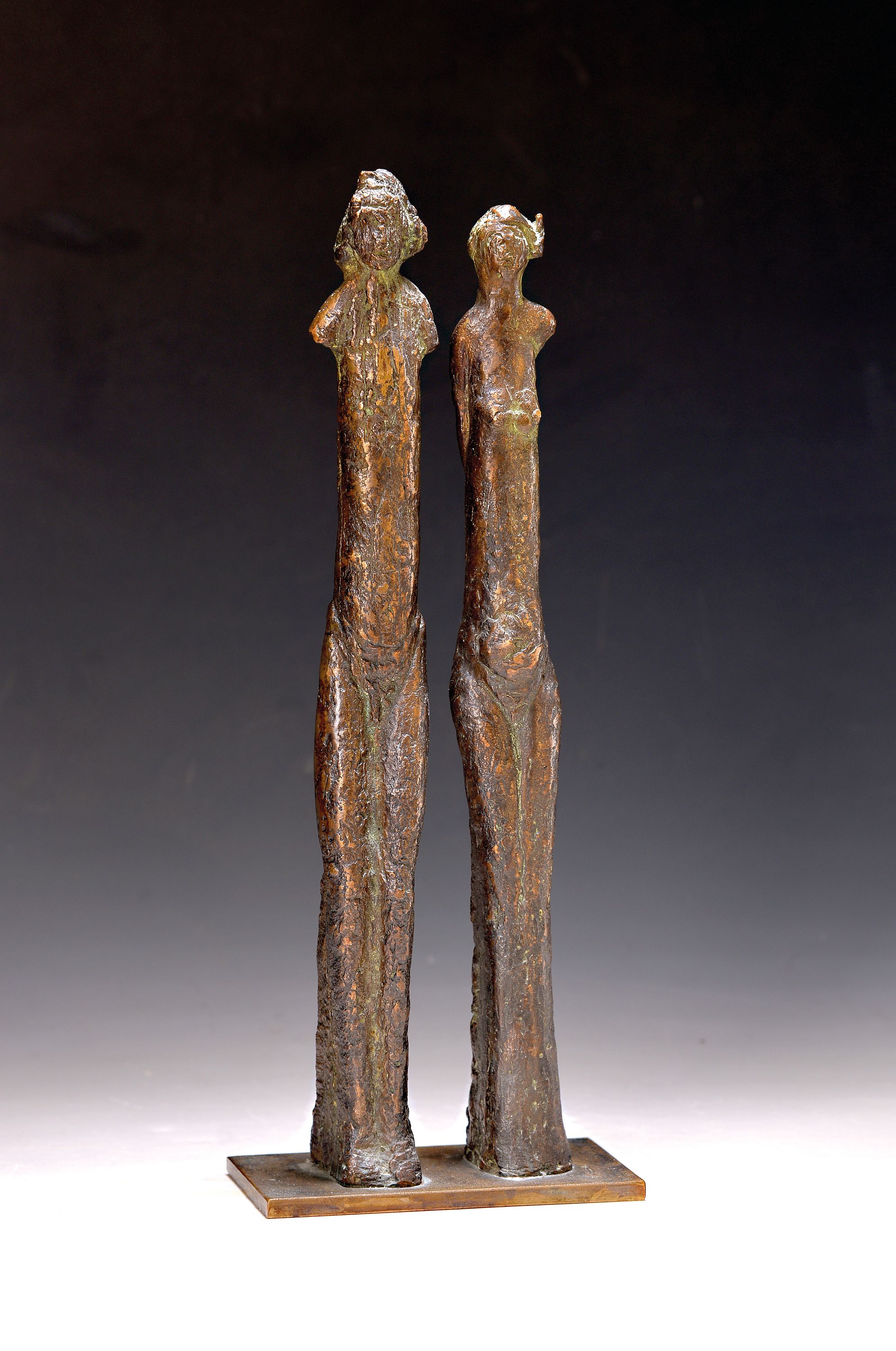 Unbekannter Bildhauer, Bronzefigur, 2. Hälfte 20. Jh., stehendes Paar auf rechteckigem