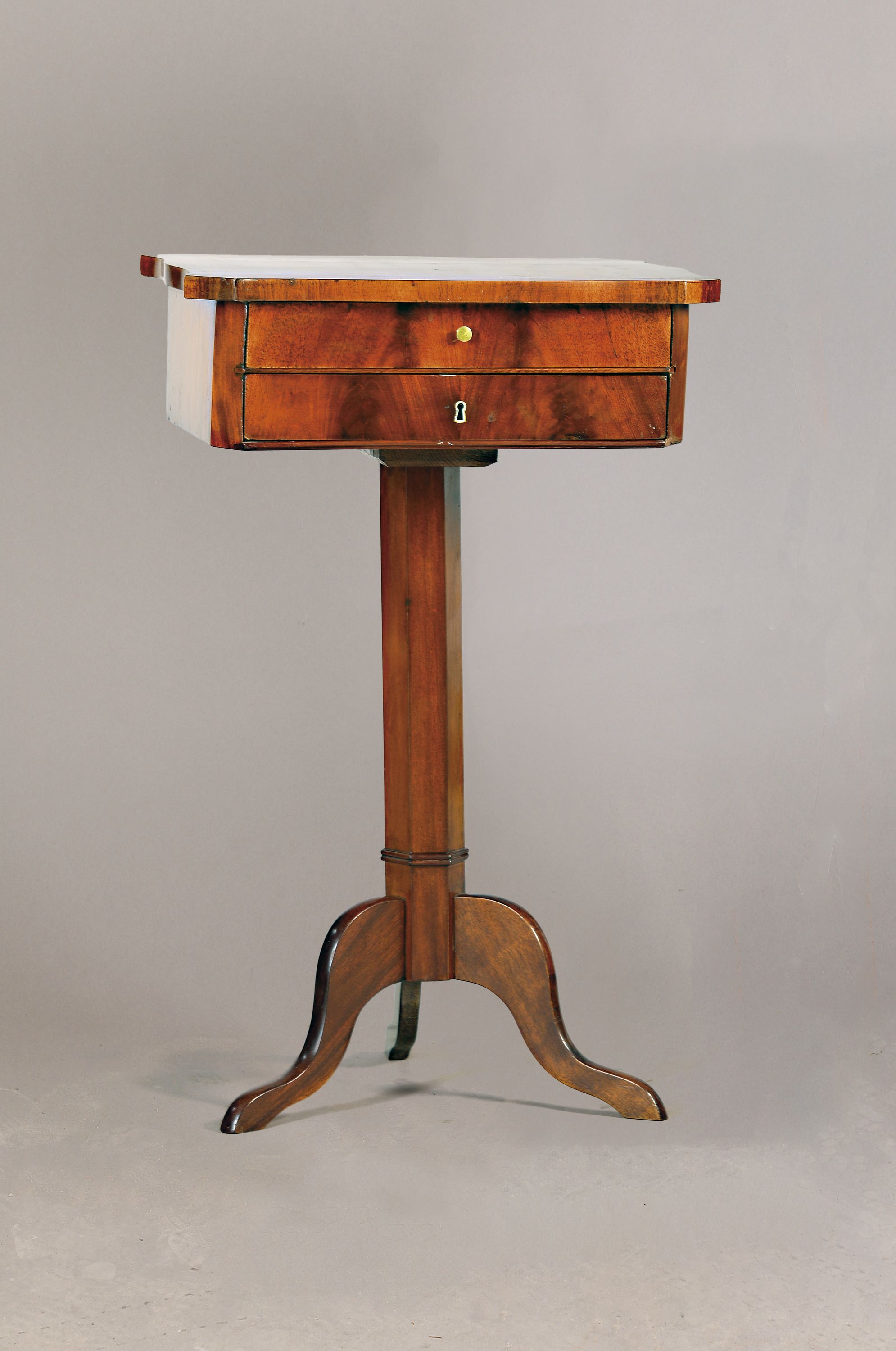 Biedermeier Beistelltisch, norddeutsch, um 1840/50, Mahagonifurnier, 2 Schubladen, 1 Schlüssel, ca. 75 x 47 x 39 cm, EZ 2