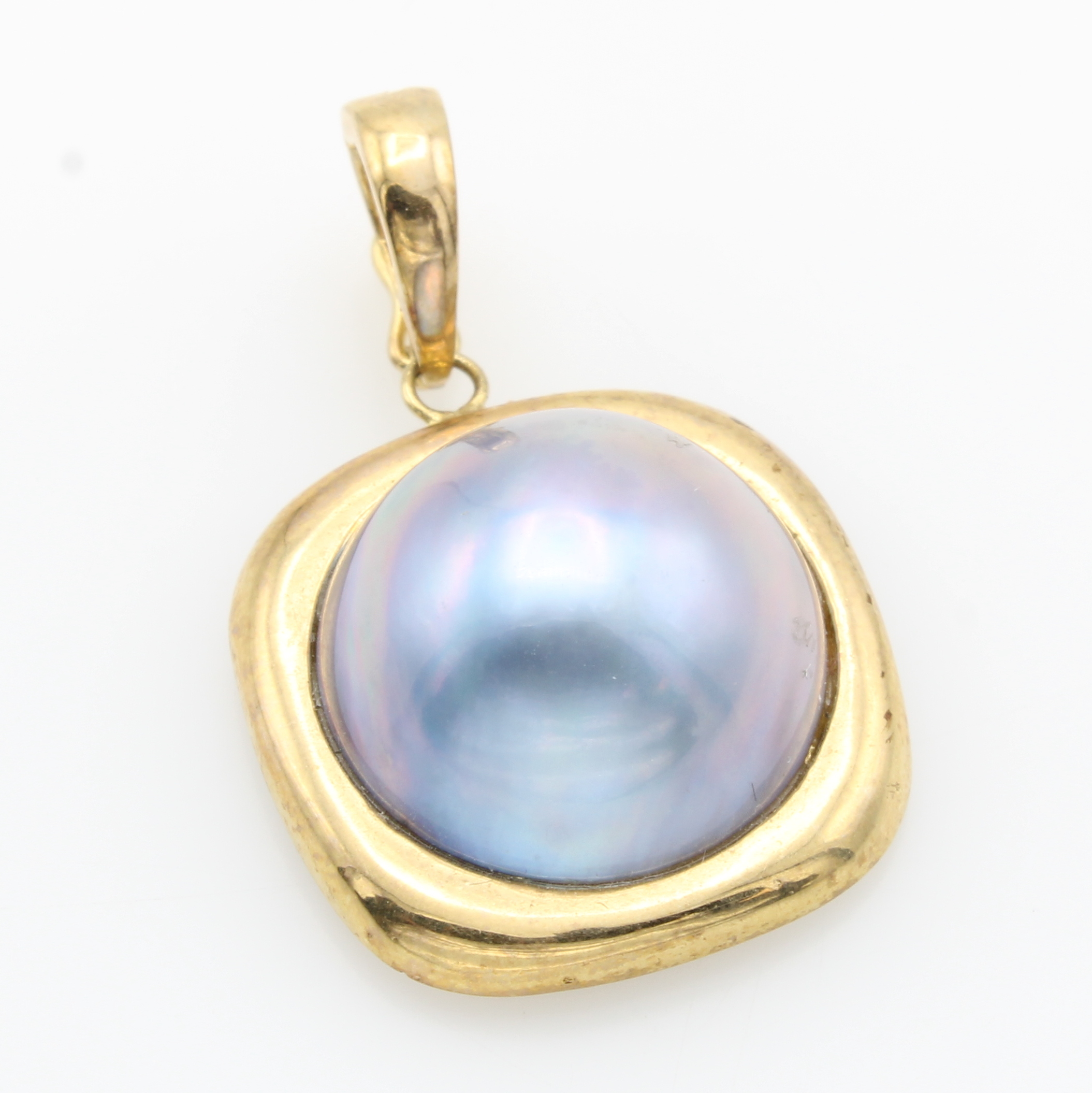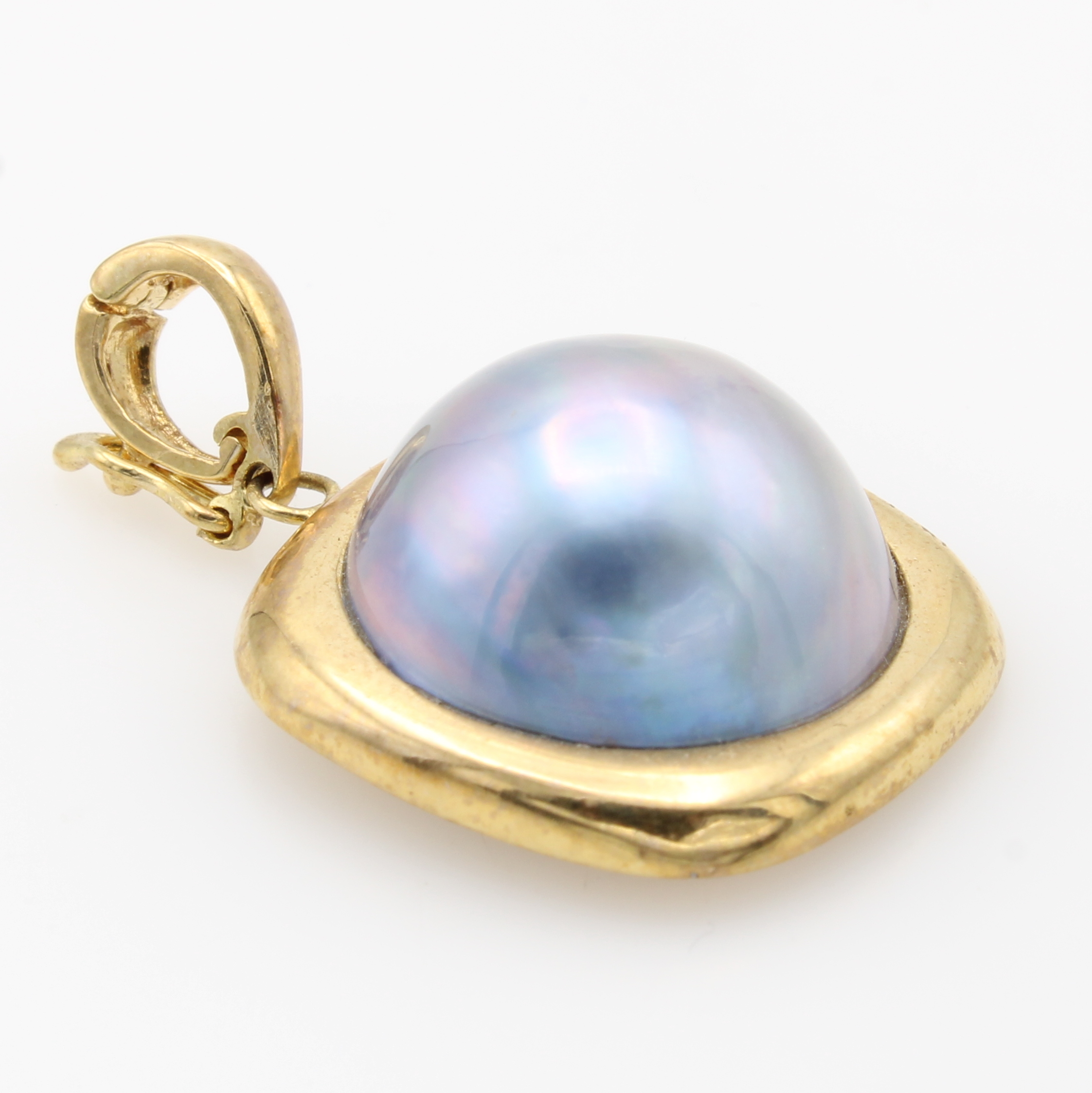 Clipanhänger mit Mabeperle, GG 585/000, graue Perle in quadratischer Fassung ca. 15 mm Schätzpreis: 560, - EUR