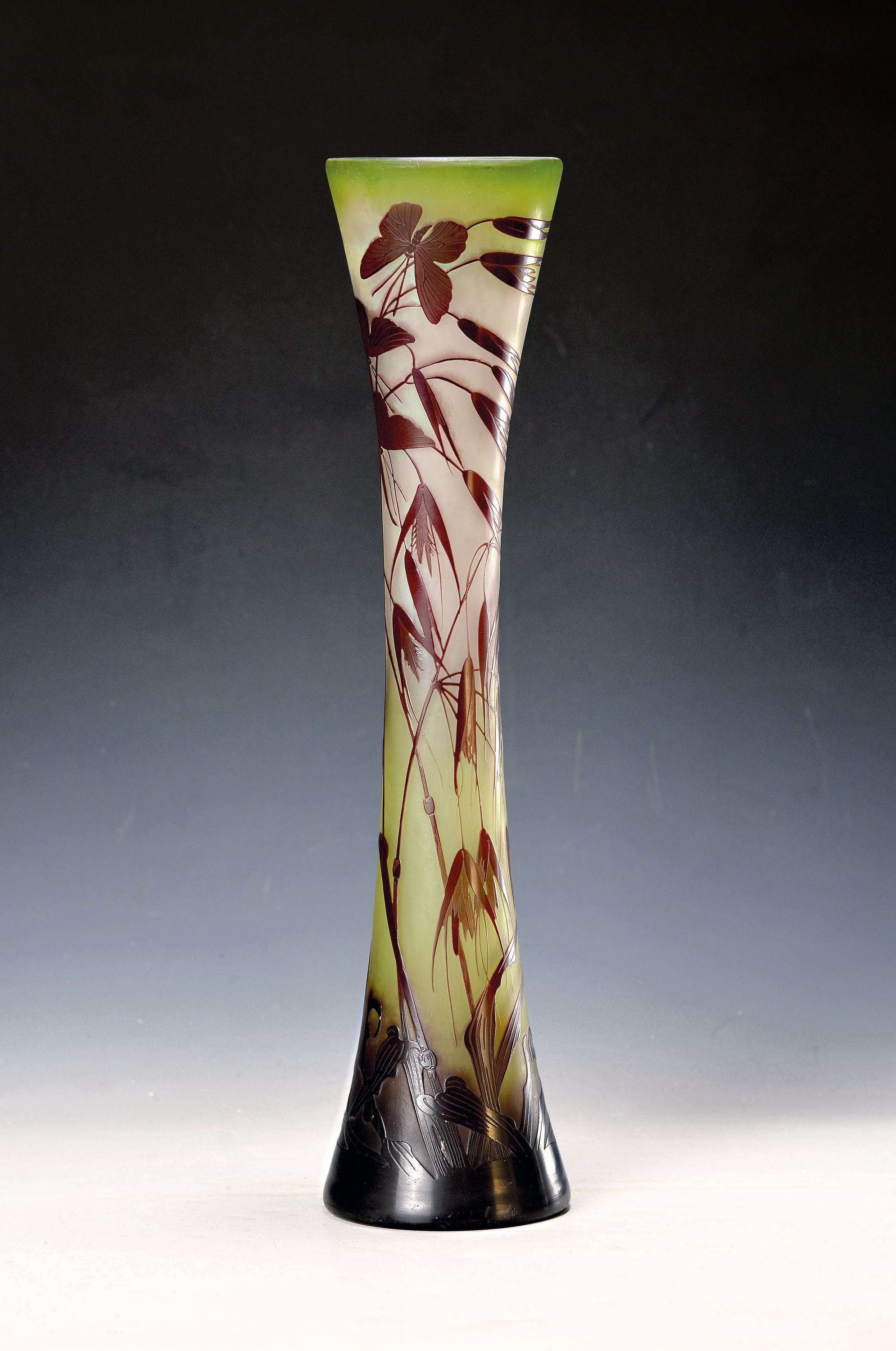 Große Vase, Emile Gallé, um 1900-10, Dekor von filigranen Gräsern und Schmetterlingen,
