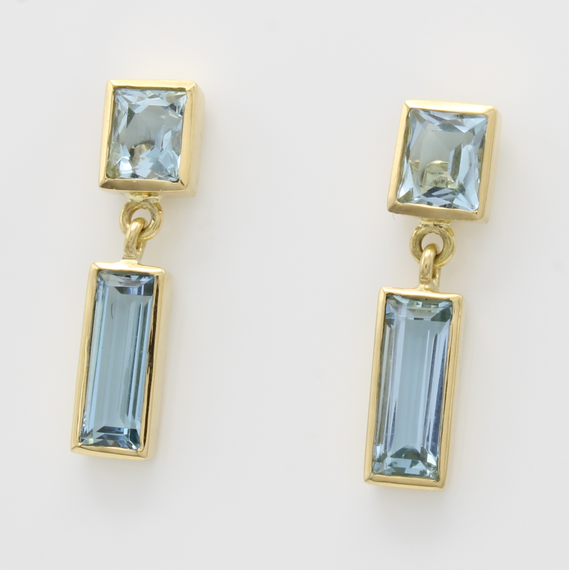 Paar Ohrstecker mit Aquamarinen, GG 750/000, 4 Aquam. zus. ca. 1.85 ct, Abhängungen bewegl. Schätzpreis: 4600, - EUR