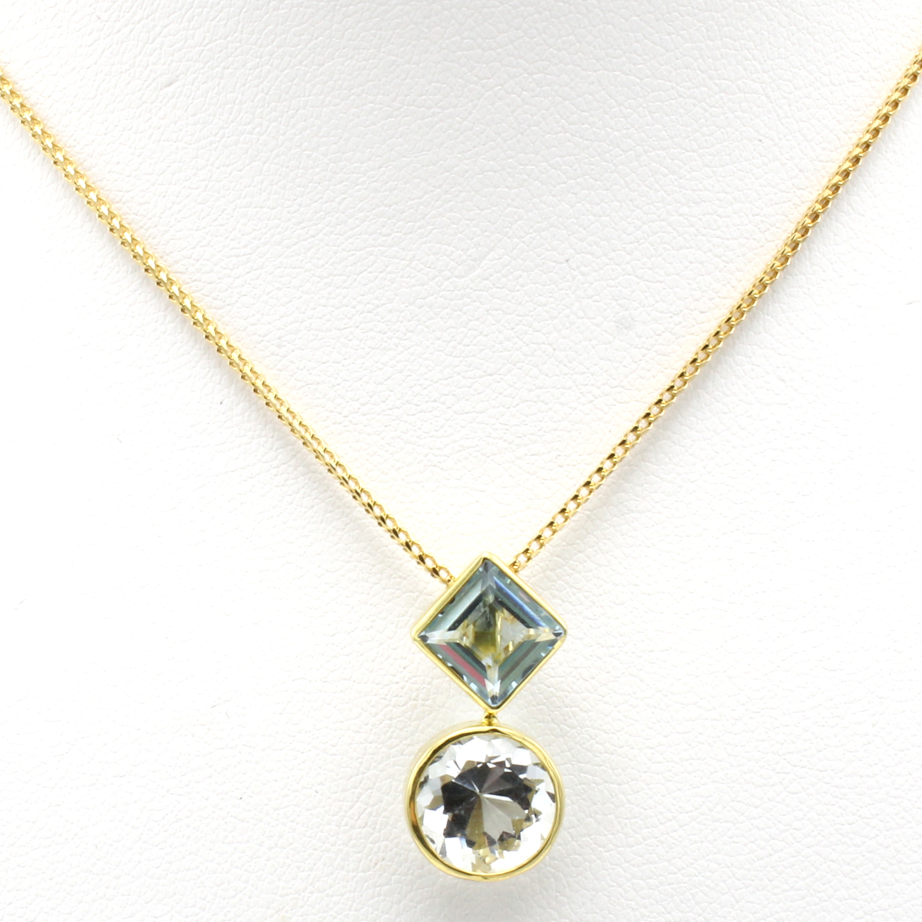 Anhänger mit Aquamarinen an Kette, GG 585/ 000, carréef. u. runder Aquam. zus. ca. 4.6 ct, L. ca. 45 cm Schätzpreis: 2320, - EUR