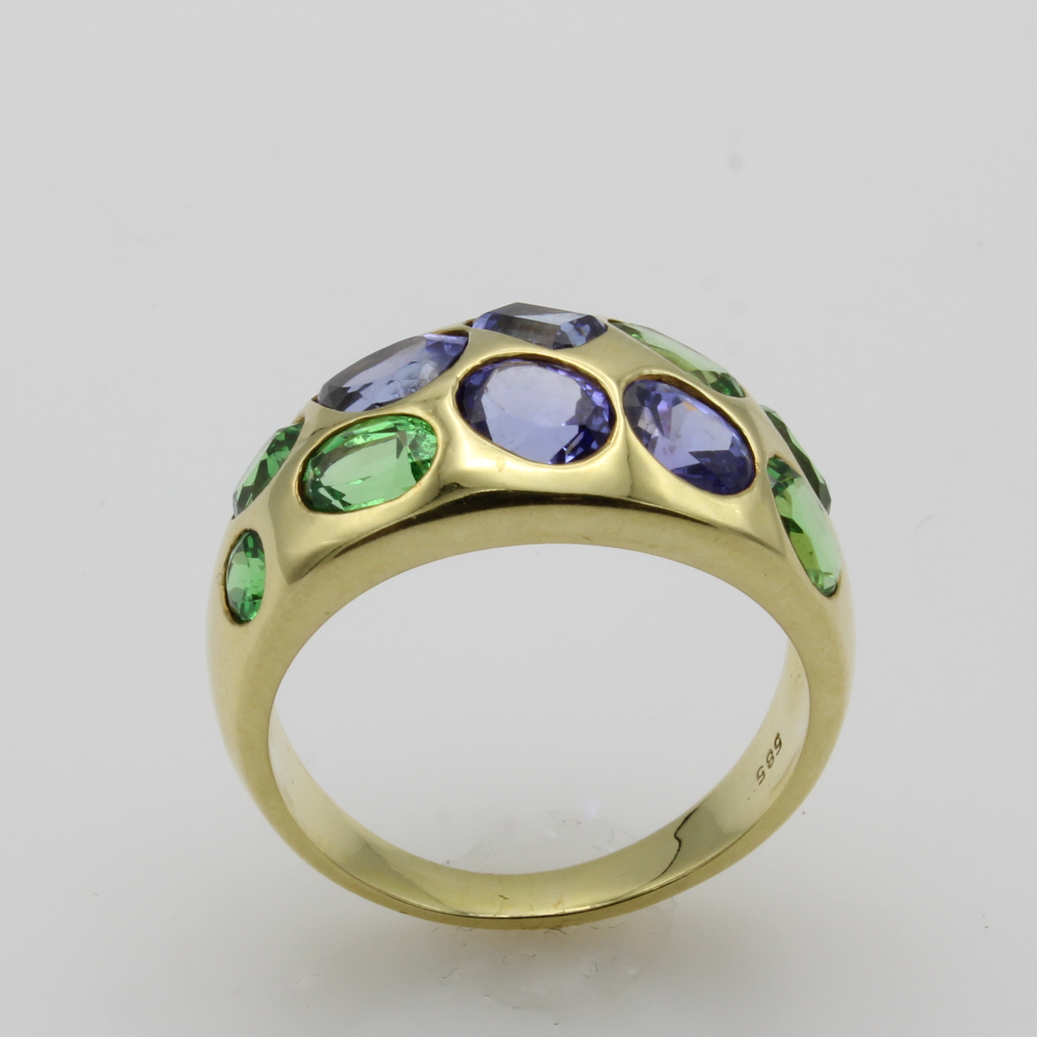 Ring mit Tansaniten und Tsavoriten, GG 585/000, Farbsteine in versch. Schliffarten zus. ca. 4.1 ct, RW ca. 58 Schätzpreis: 3600, - EUR
