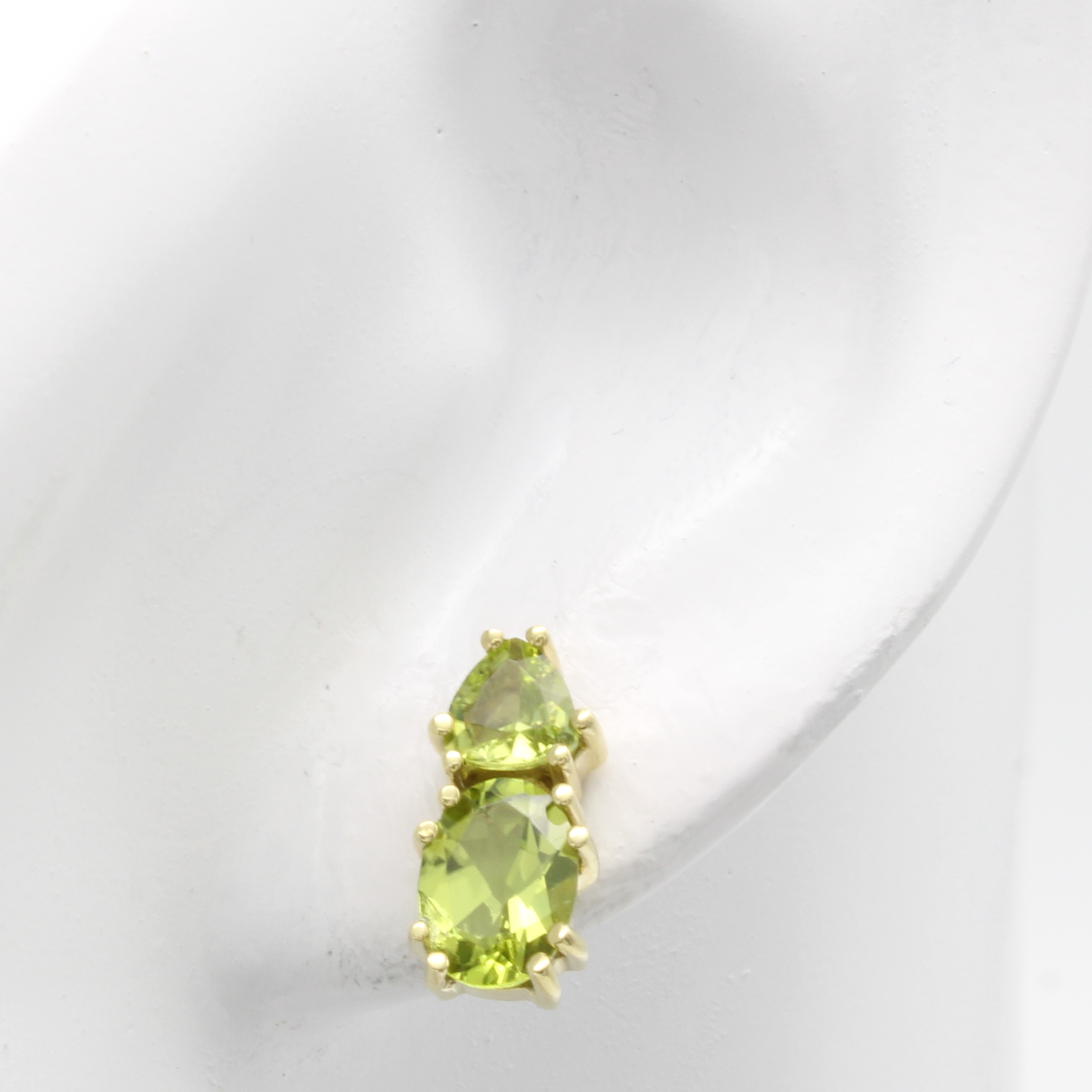 Paar Ohrstecker mit Peridots, GG 585/000, 2 ovale u. 2 dreieckige Peridots zus. ca. 4 ct, Krappenfassungen Schätzpreis: 1200, - EUR