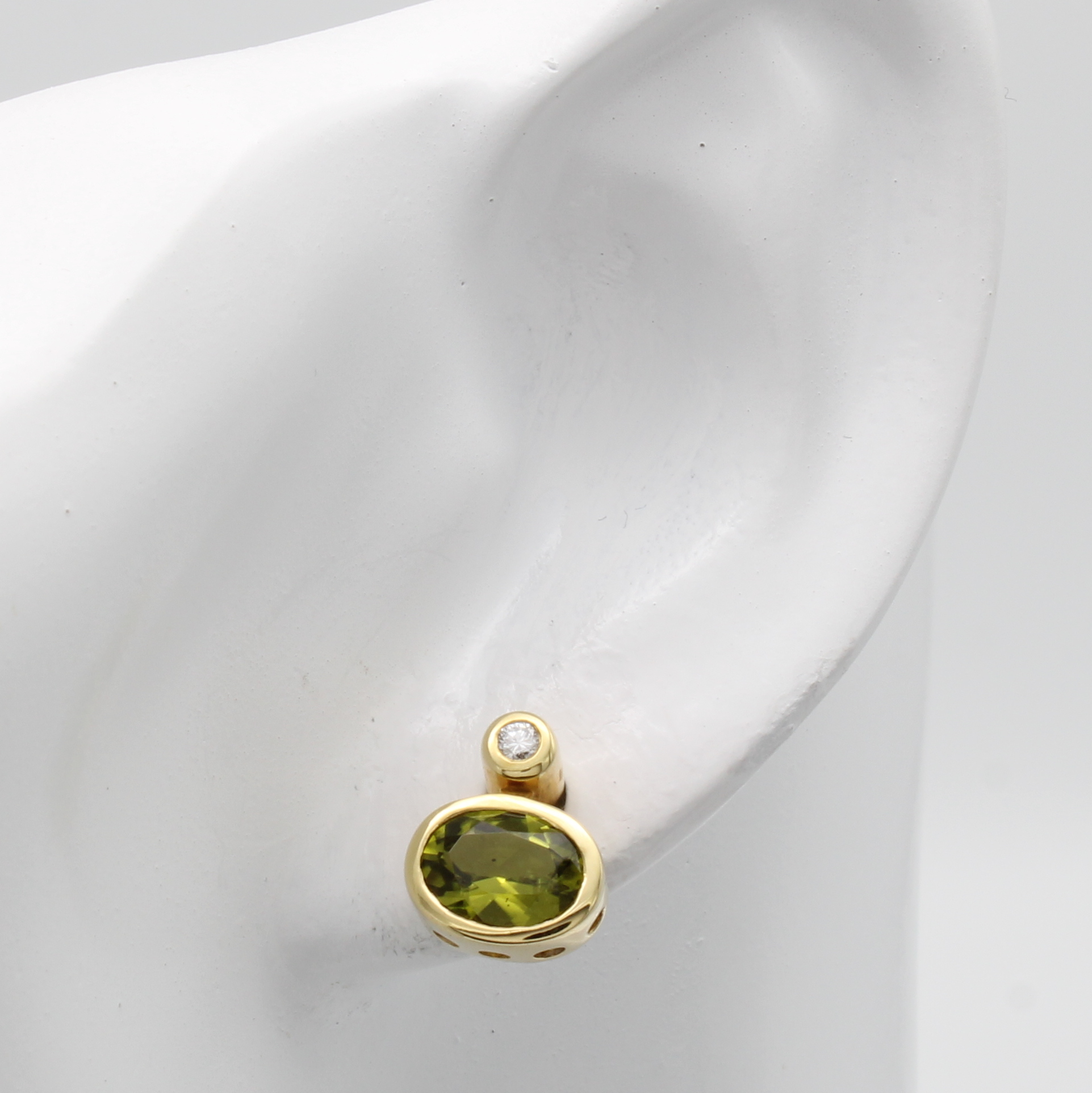 Paar Ohrstecker mit Peridots und Diamanten, GG 585/000, 2 ovale Peridots zus. ca. 2.1 ct, 2 Diam. zus. ca. 0.08 ct Weiß/p, Zargenfassung Schätzpreis: 1450, - EUR