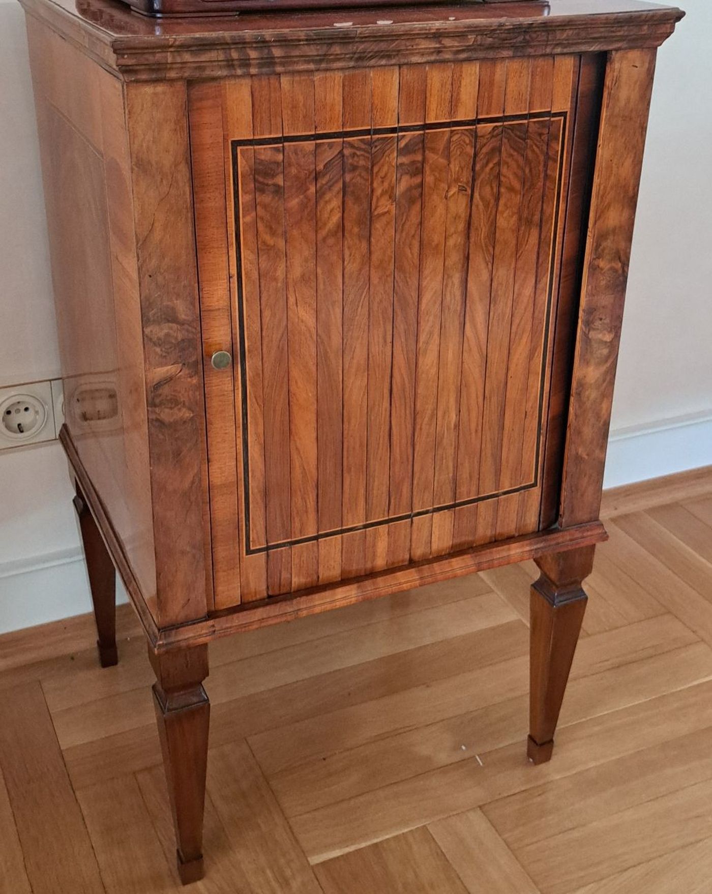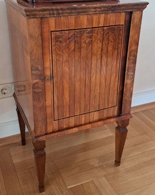Jalousienschränkchen/Pfeilerkommode, mit Jalousie, klassizistisch, um 1800/10, Nussbaumfurnier,
