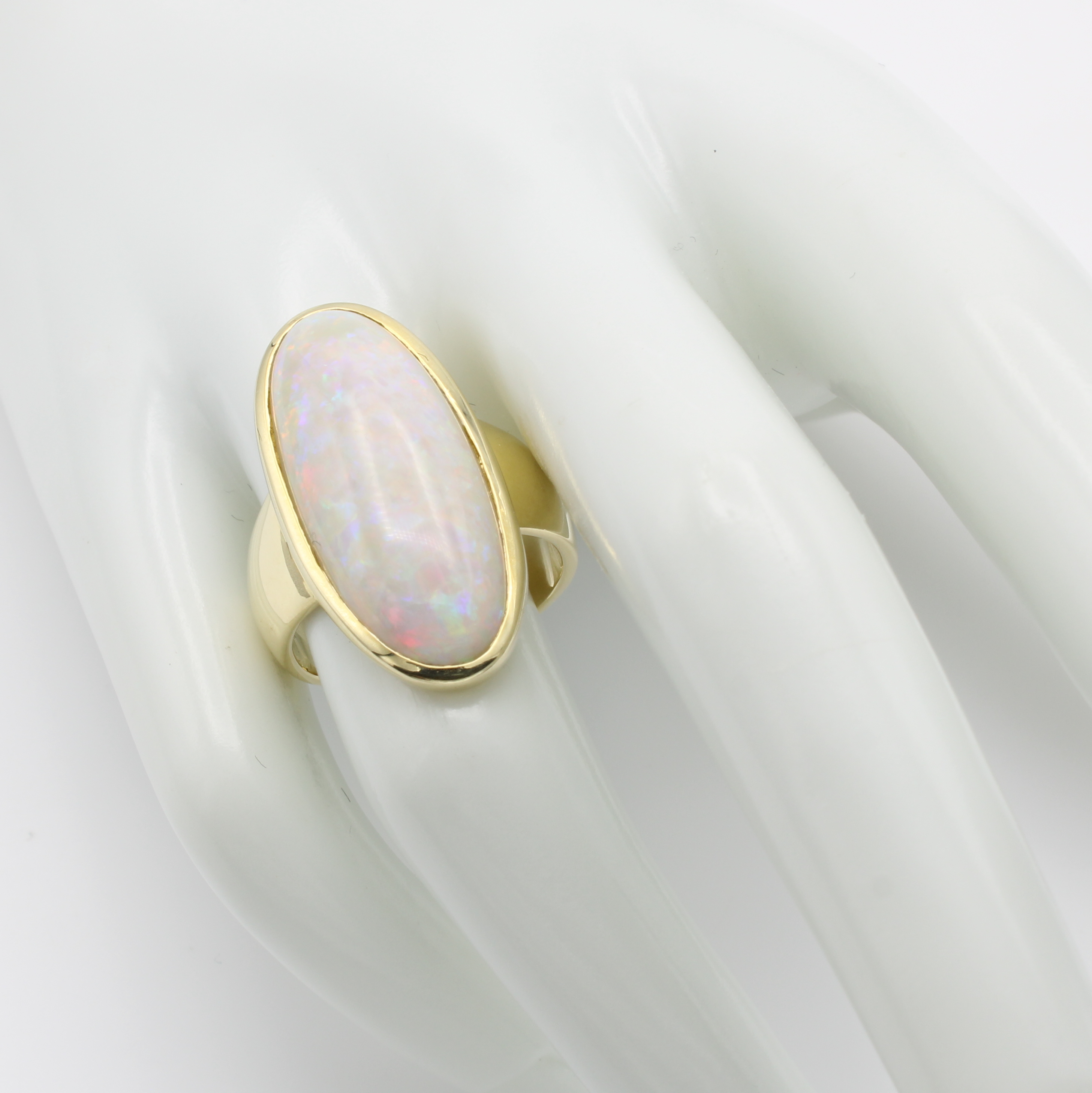 Ring mit Opal, GG 585/000, ovaler Opal in glatter Fassung ca. 12.5 ct, RW ca. 58 Schätzpreis: 3800, - EUR