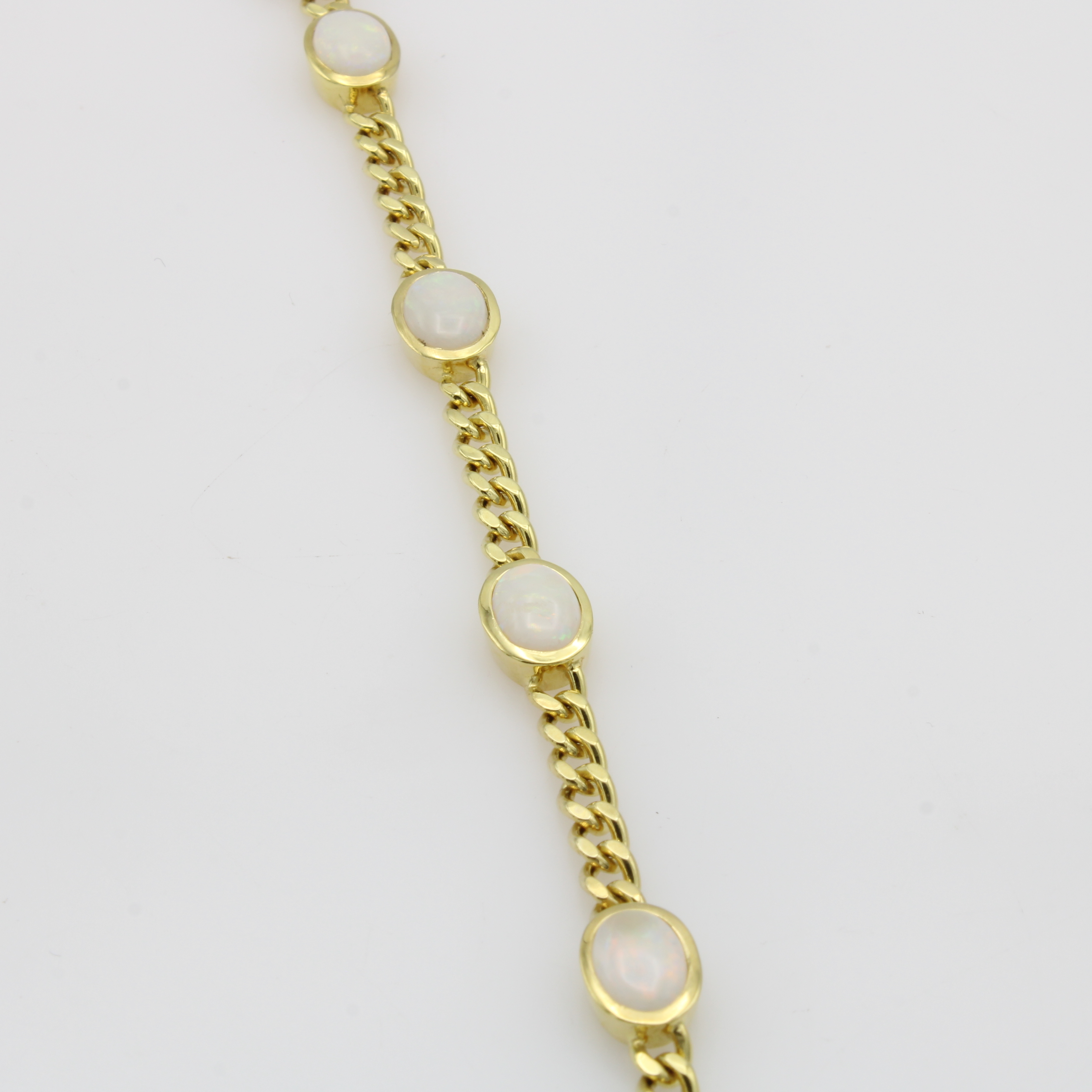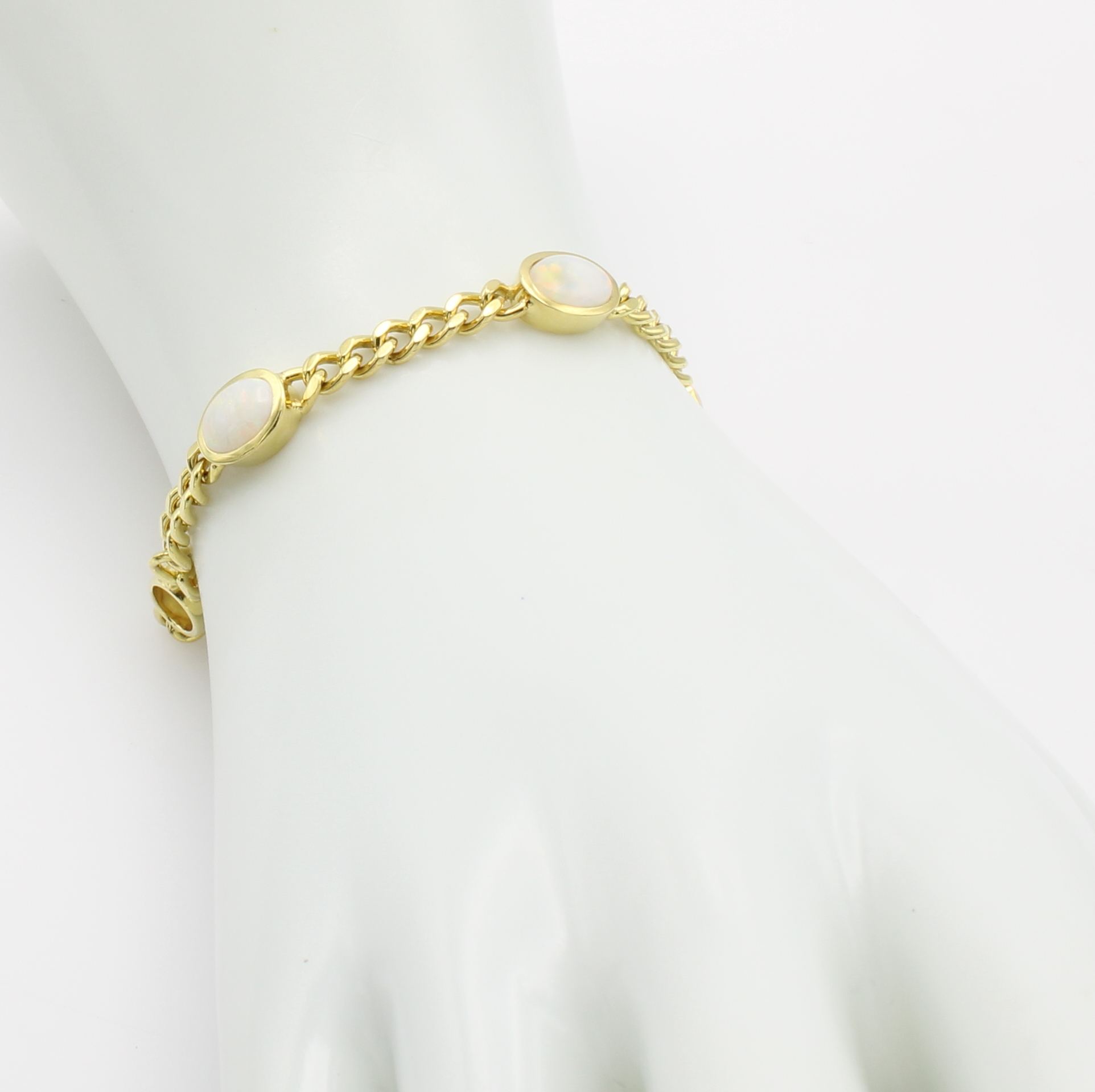 Panzerarmband mit Opalen, GG 585/000, 6 ovale Opale zus. ca. 5 ct, Kastenschl. m. zwei Sicherheitsbügeln, L. ca. 19 cm Schätzpreis: 5380, - EUR