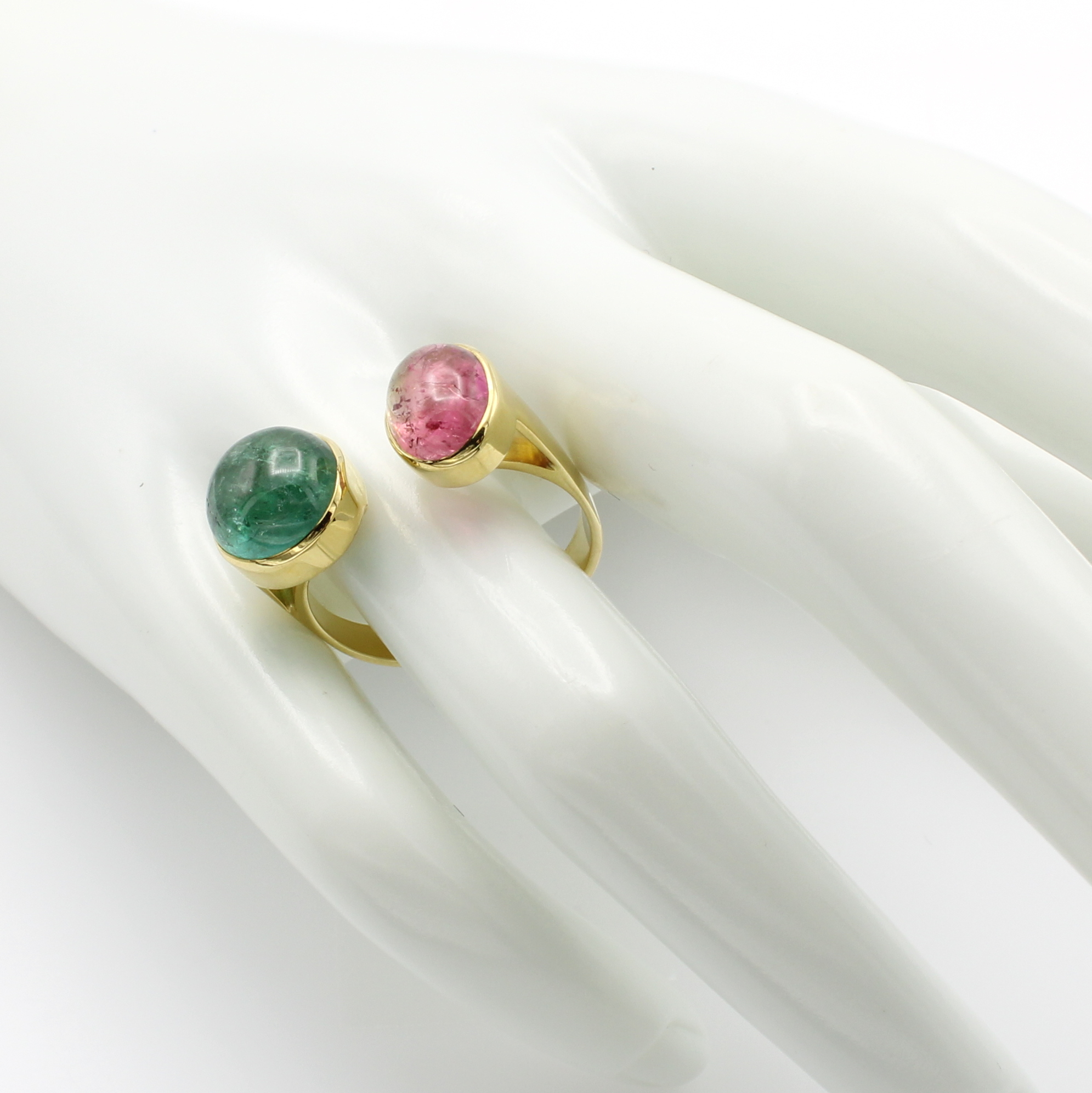 Ring mit Turmalinen, GG 585/000, rosa u. grüner Turmalincabochon zus. ca. 7.2 ct, offen gearb., RW ca. 61 Schätzpreis: 2400, - EUR
