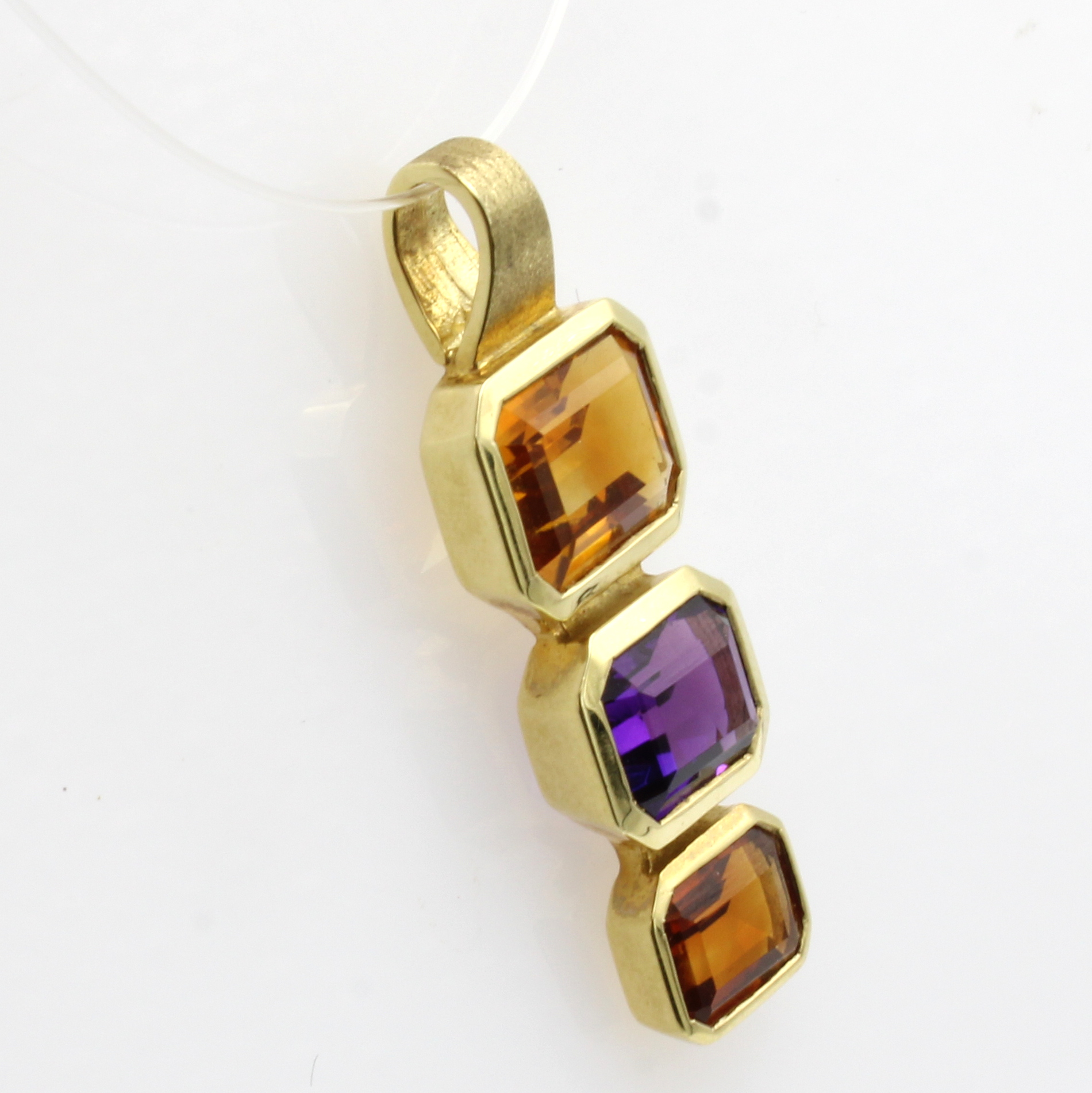 Anhänger mit Farbsteinen, GG 585/000, z.T. matt., Amethyst ca. 2.2 ct, 2 Citrine zus. ca. 4.1 ct Schätzpreis: 2100, - EUR