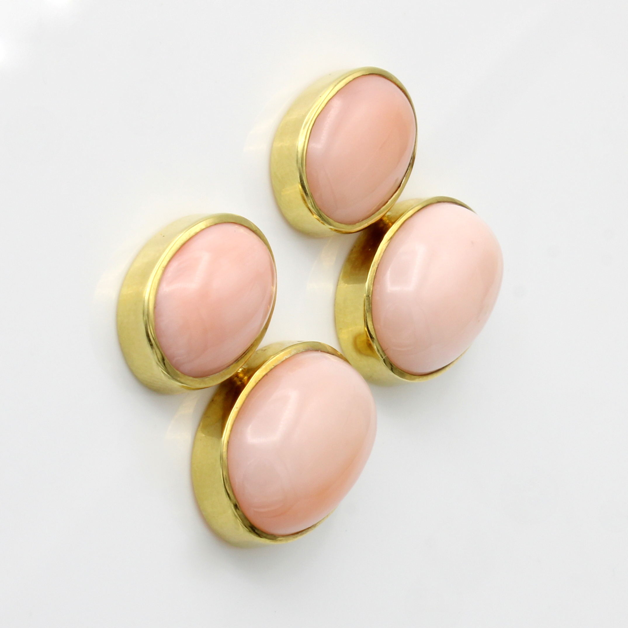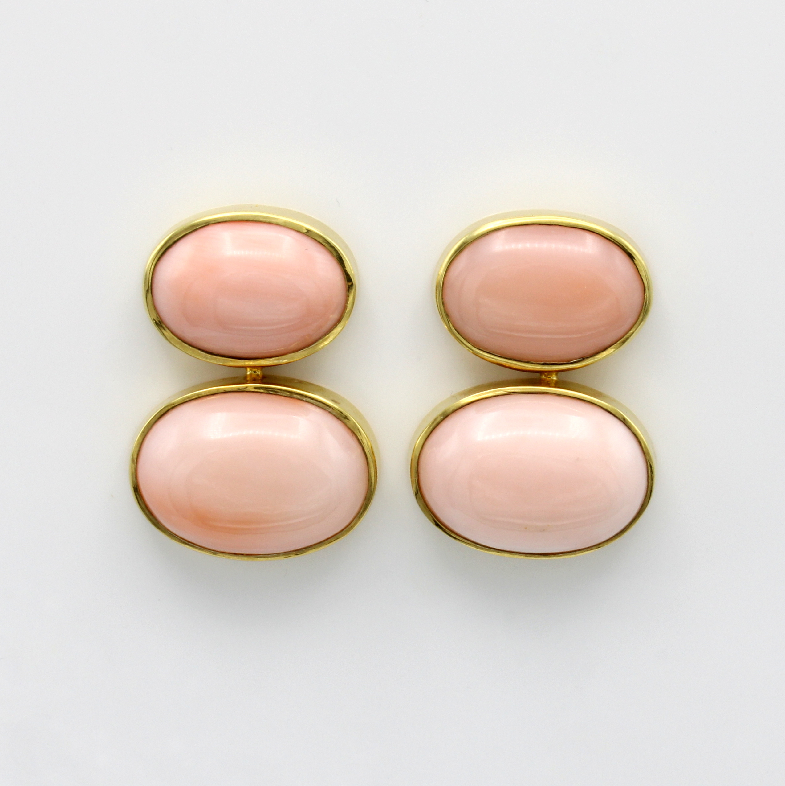 Paar Ohrstecker mit Korallen, GG 585/000, 4 ovale, rosa Korallen zus. ca. 22 ct, Versand nur innerhalb der EU Schätzpreis: 2600, - EUR