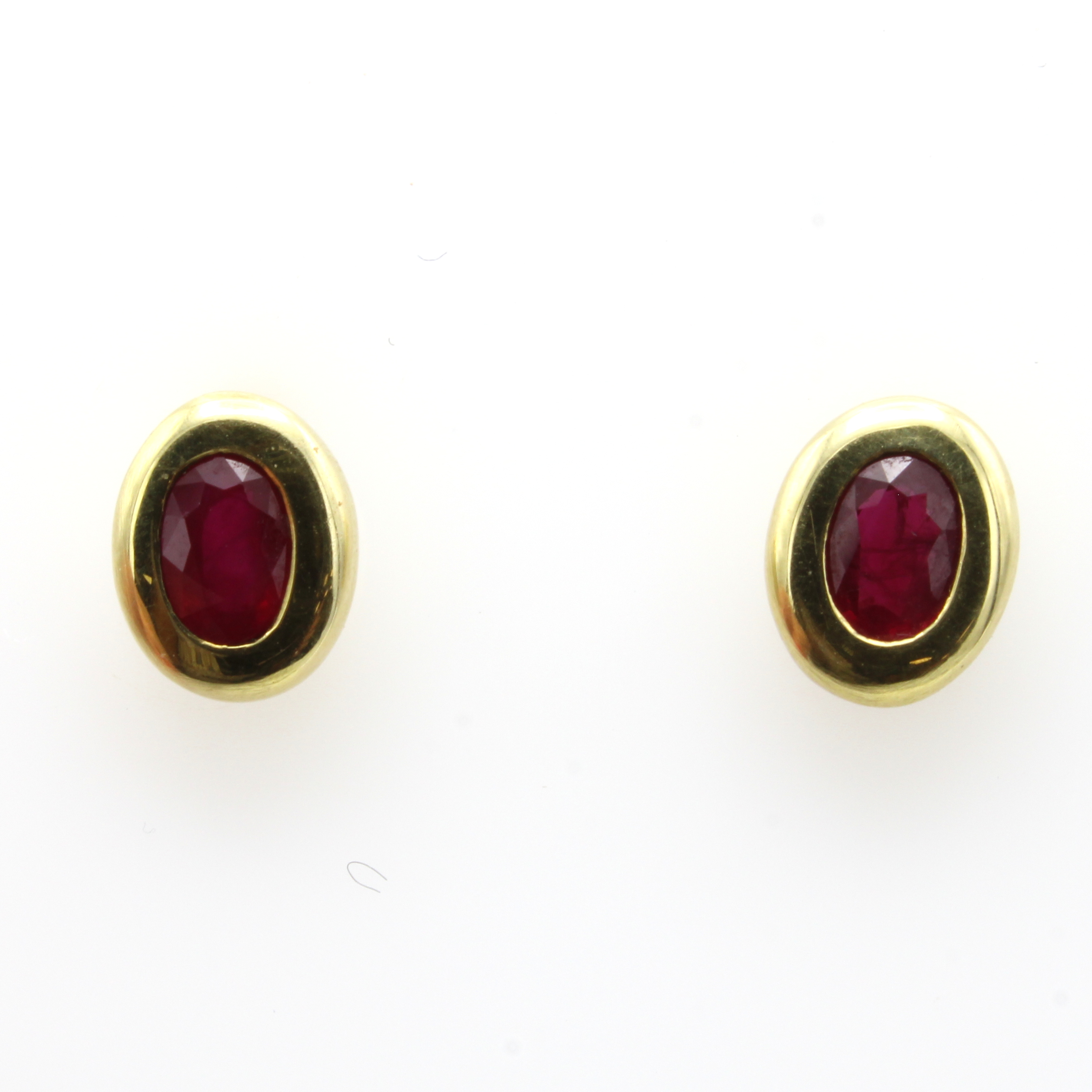 Paar Ohrstecker mit Rubinen, GG 750/000, 2 ovale Rubine in glatter Fassung zus. ca. 1 ct Schätzpreis: 1890, - EUR
