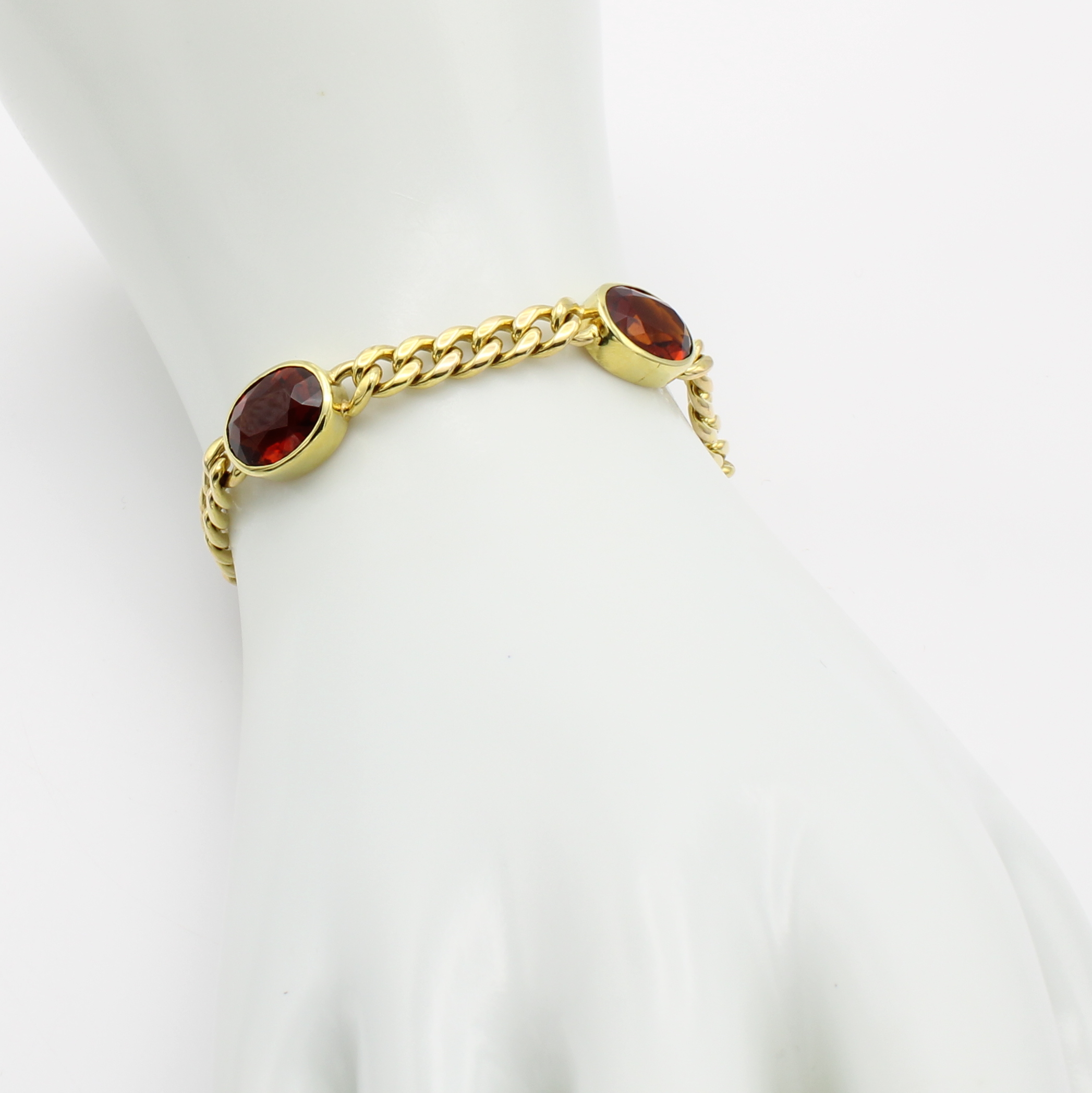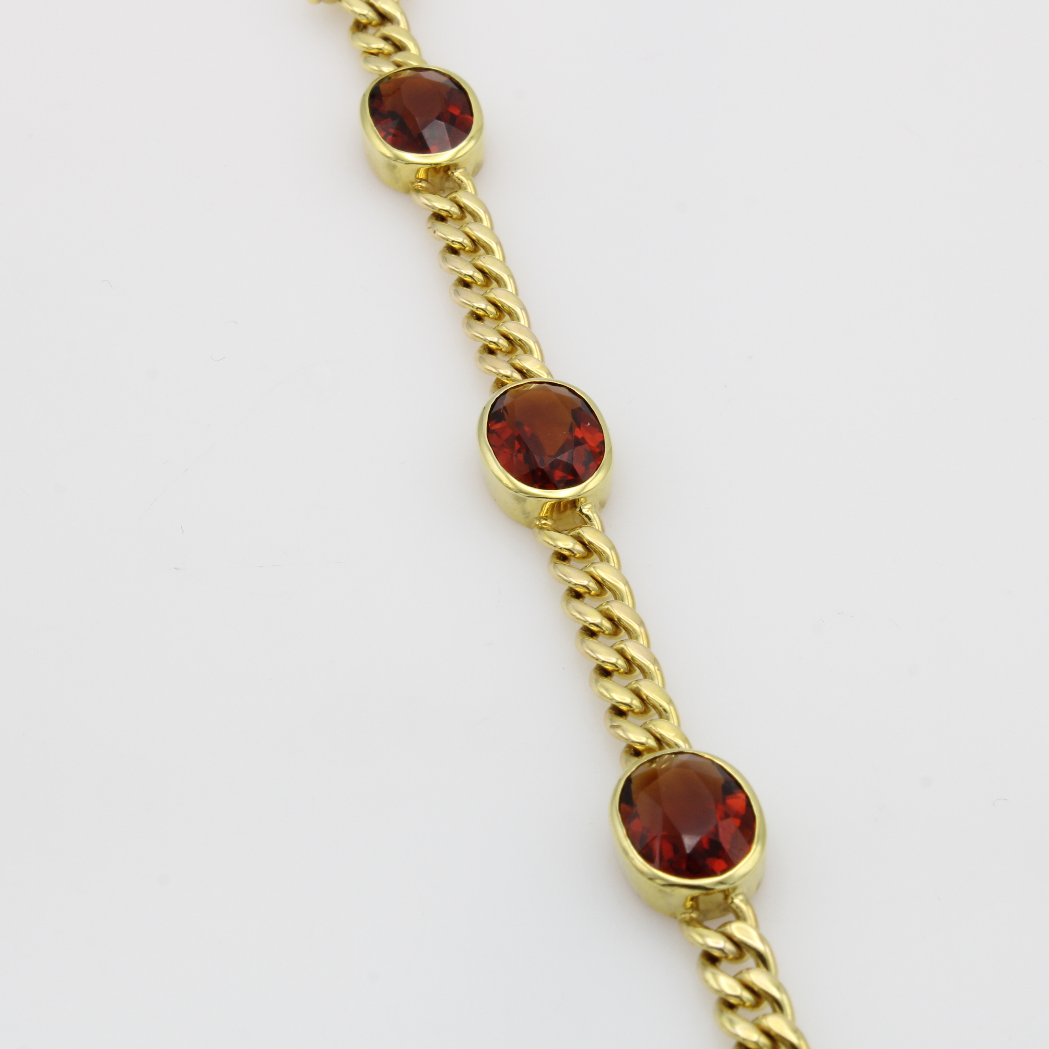 Panzerarmband mit Citrinen, GG 585/000, 5 ovale Citrine zus. ca. 14 ct, Kastenschl. m. doppelter Sicherheitsacht, L. ca. 19 cm Schätzpreis: 7500, - EUR