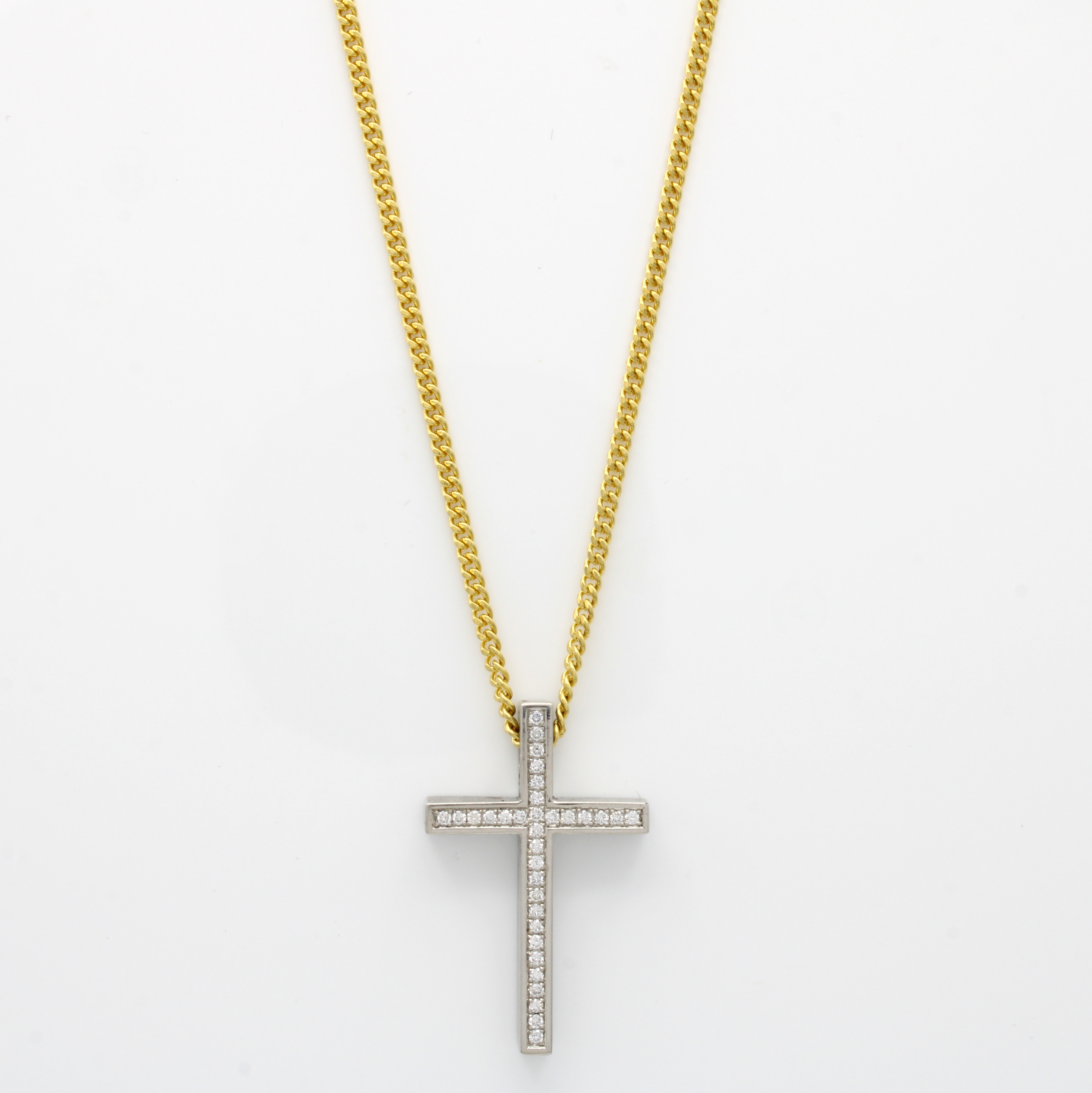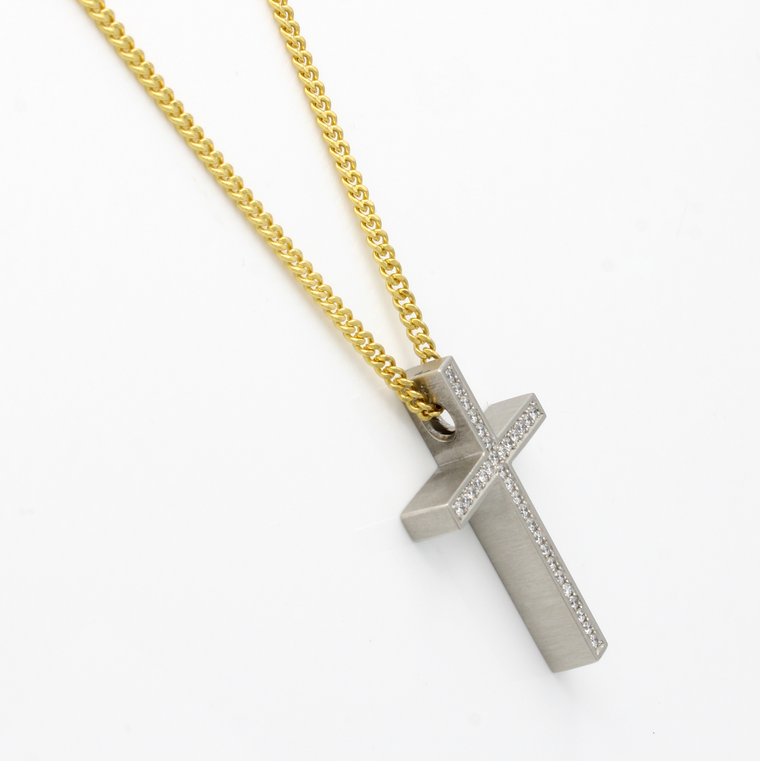 Kreuzanhänger mit Brillanten an Kette, PT 950/000, Kette GG 750/000, Brill. zus. ca. 0.33 ct Weiß/si, L. ca. 61 cm Schätzpreis: 6200, - EUR
