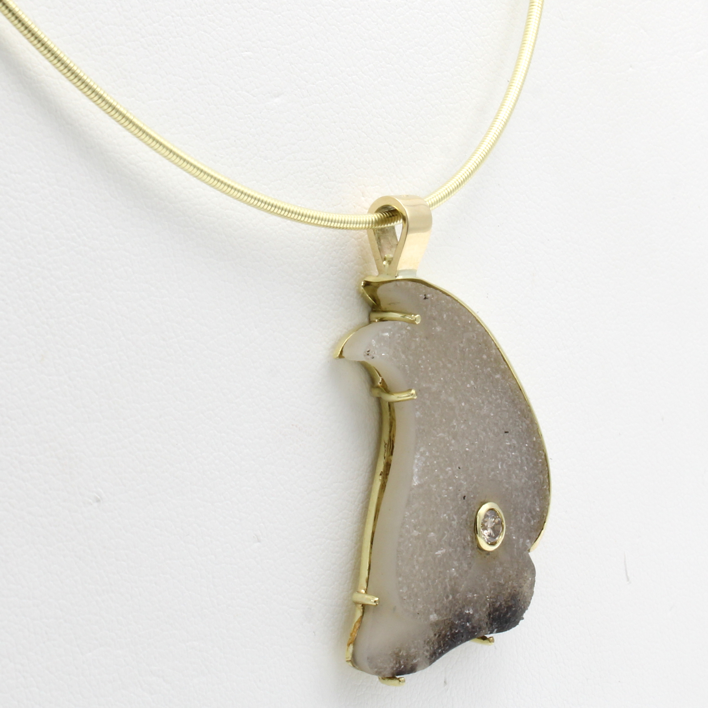 Anhänger mit Achat und Brillant an Omegareif, GG 585/000, Brill. ca. 0.15 ct Braun/si-p, L. ca. 45 cm Schätzpreis: 3600, - EUR