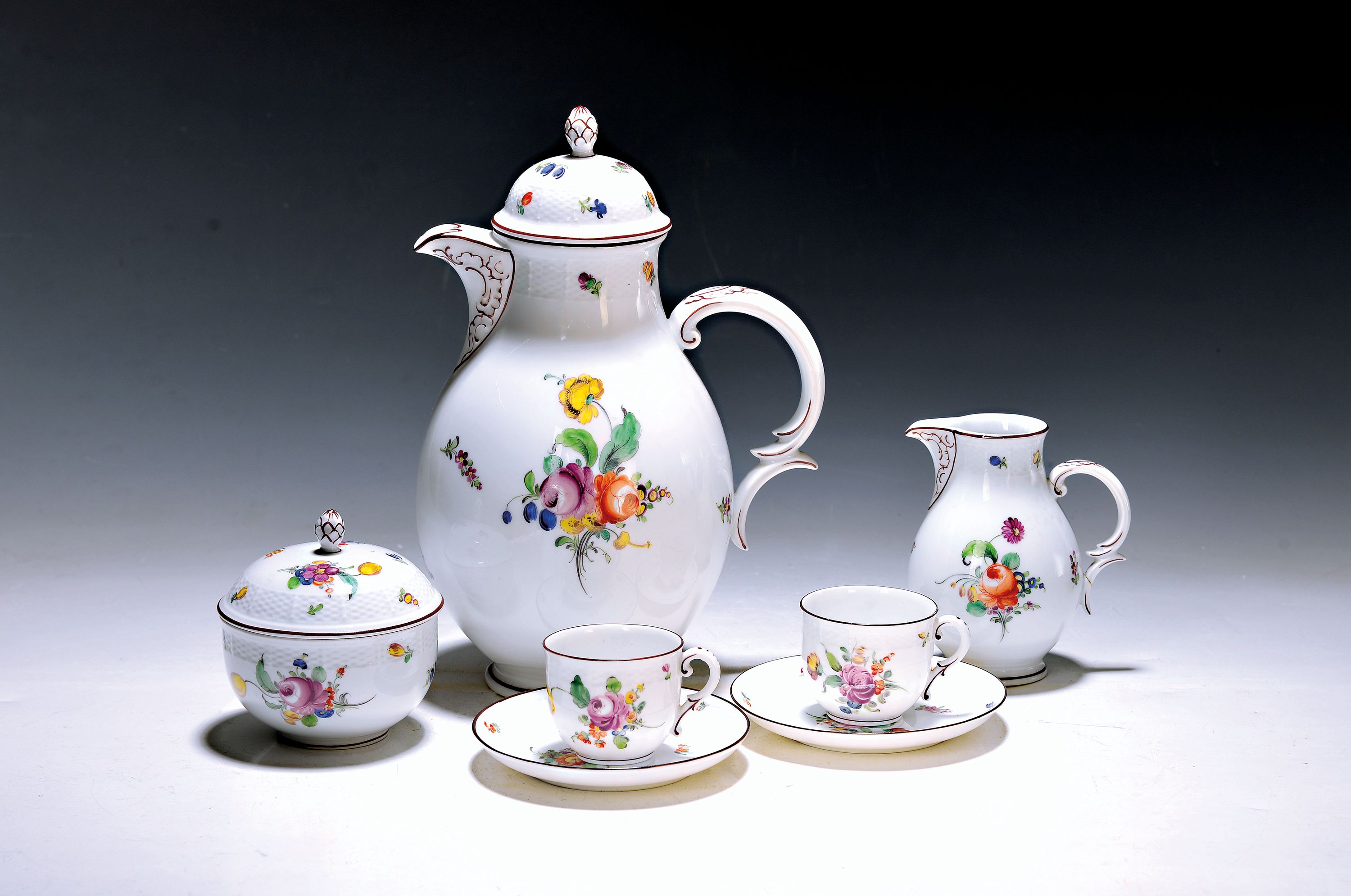 Mokka- bzw. Espressoservice, Nymphenburg, um 1920, Porzellan, mit bunter Malerei