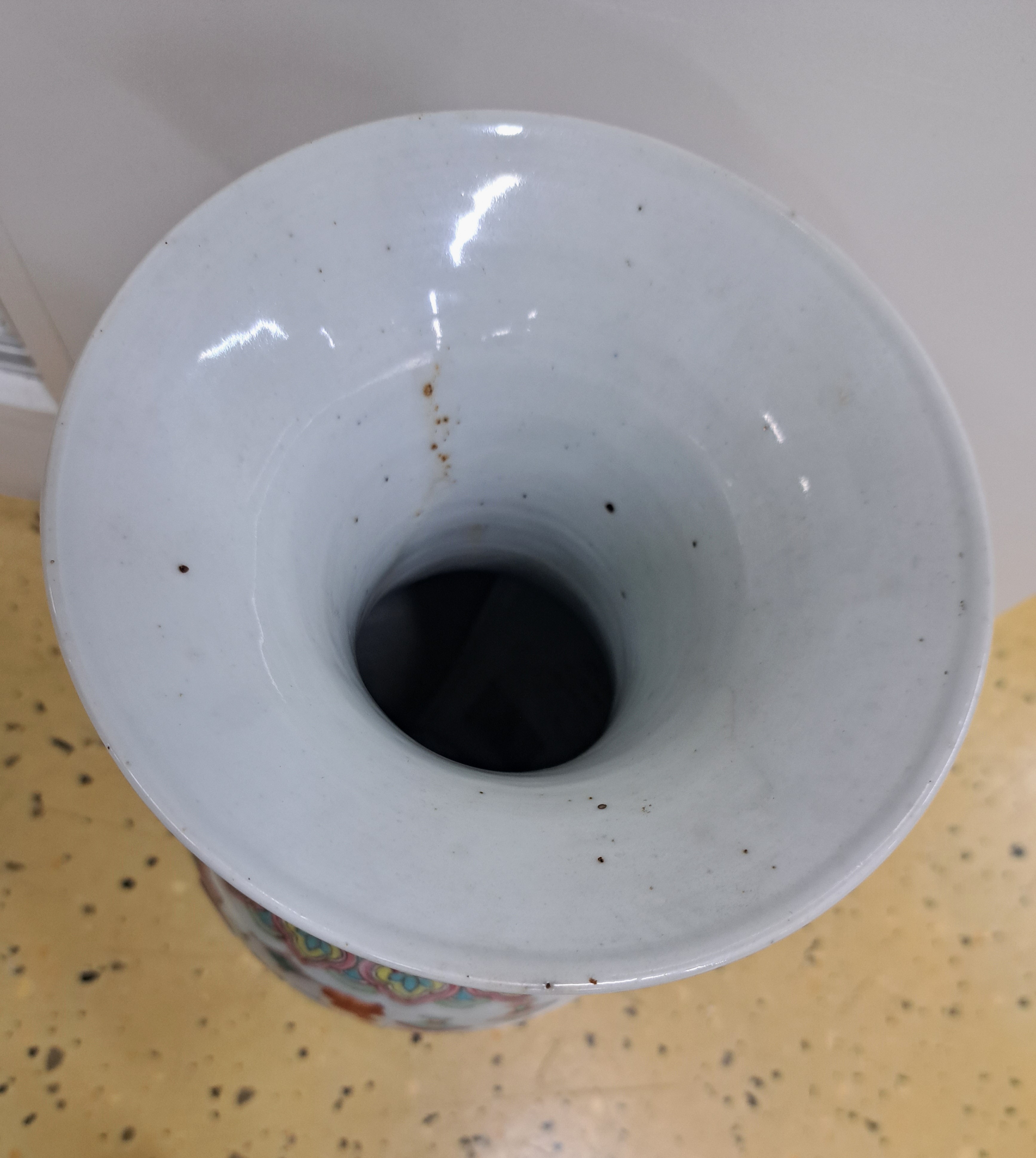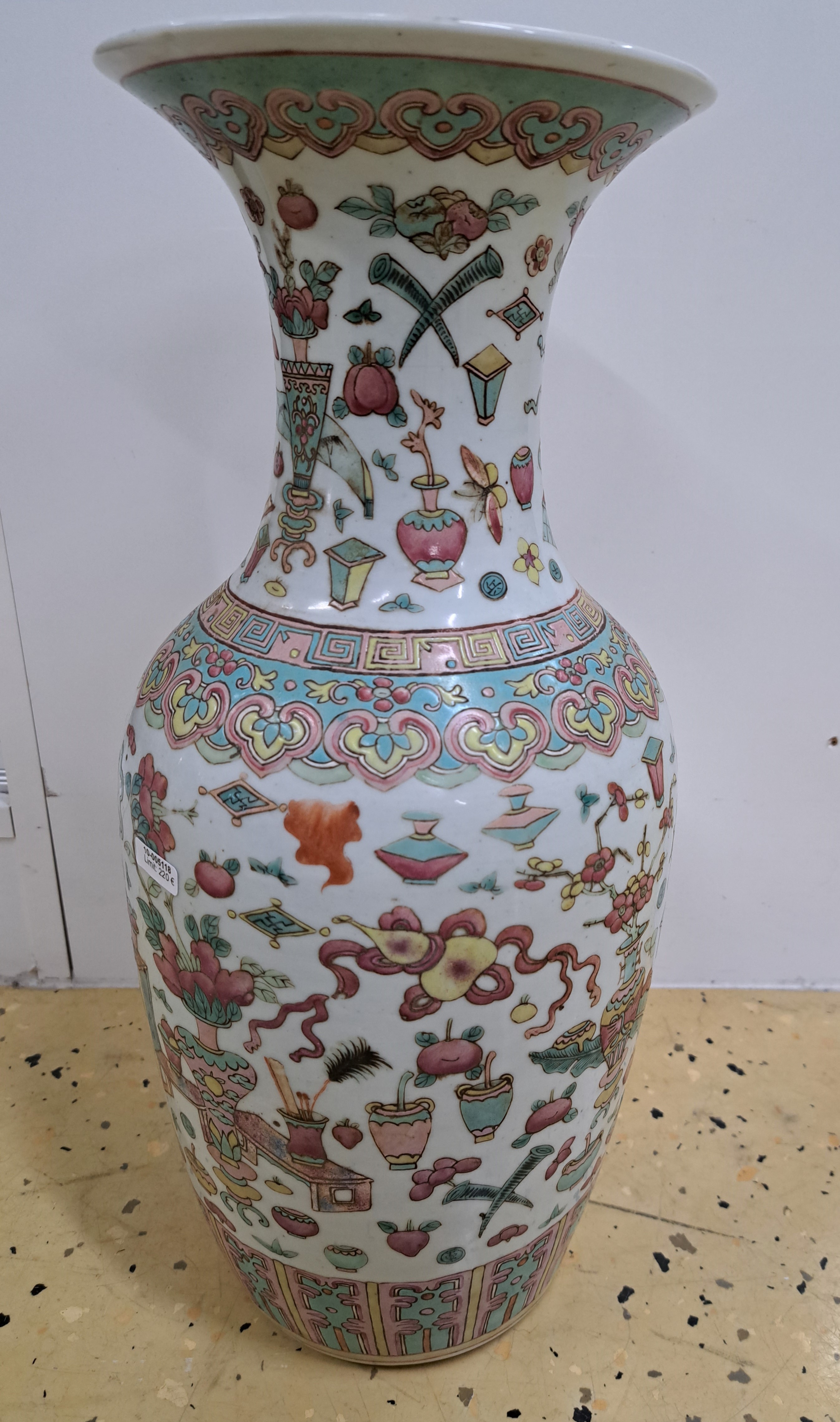 vase, China, around 1880-90, porcelain, encircling painted in bright colors with Peonies and another symbol of happiness, H. approx. 44.5cm