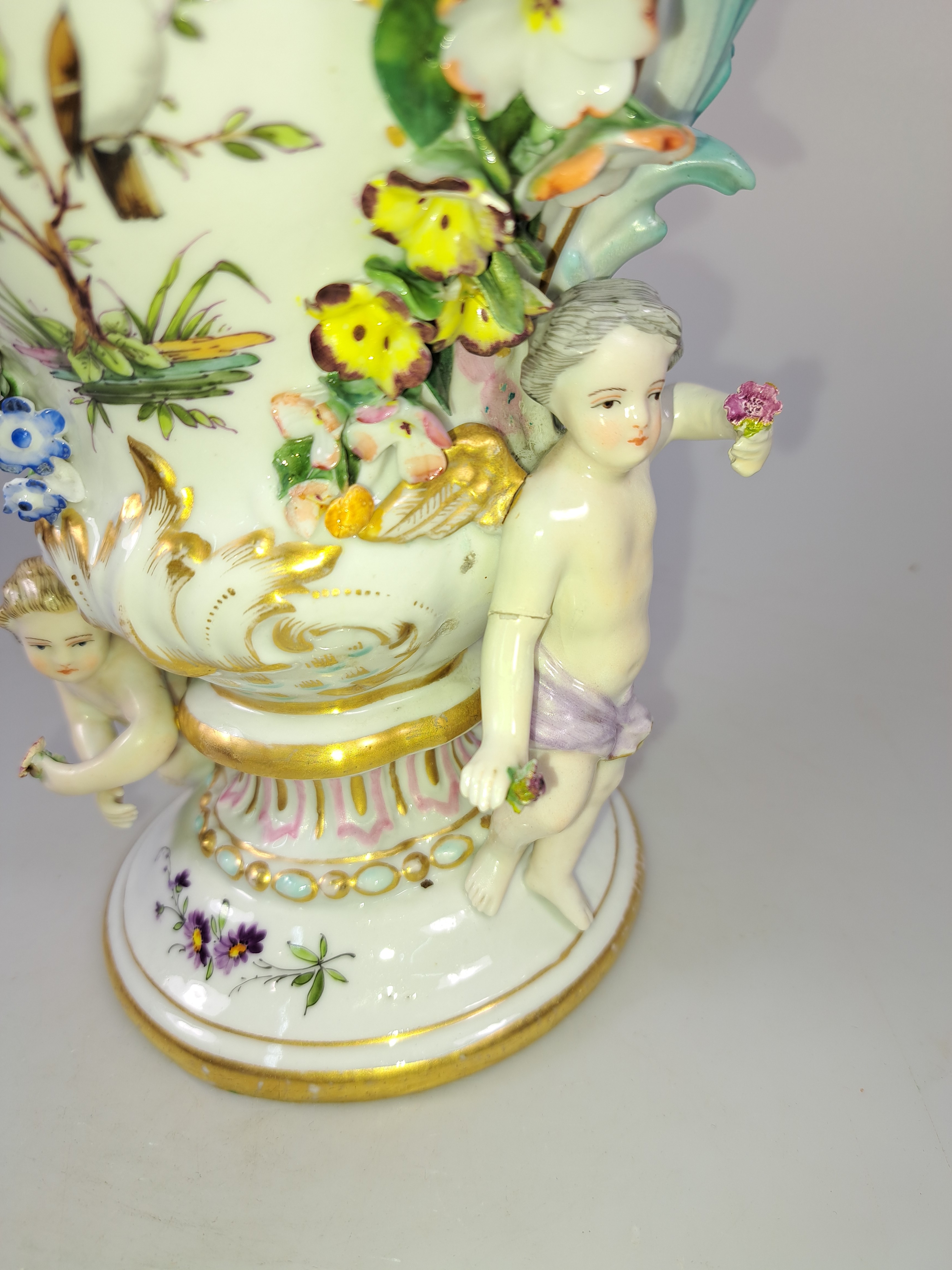 z.T. rest., Vogel- und Blumenmalerei, H. ca. 36 cm
