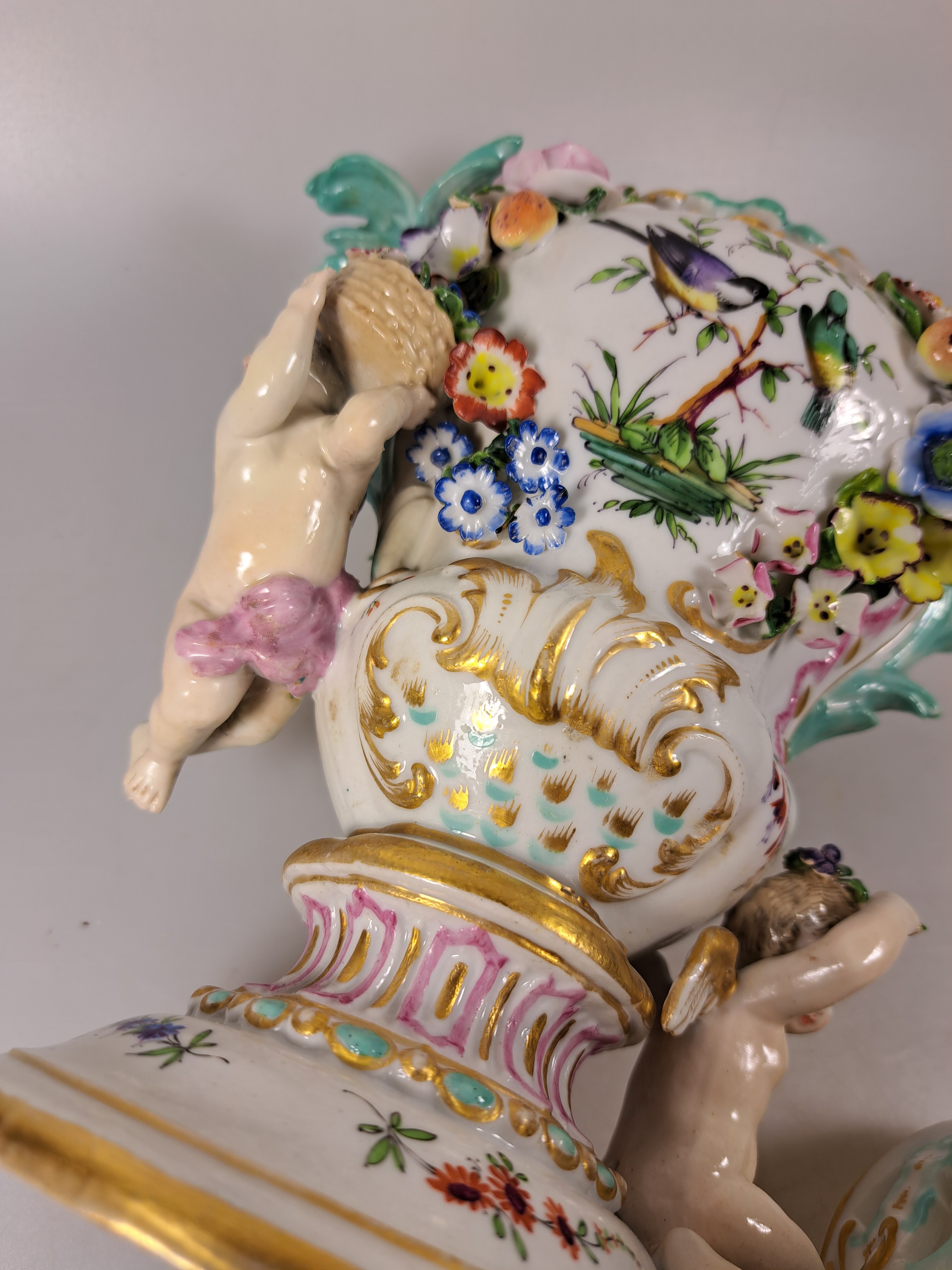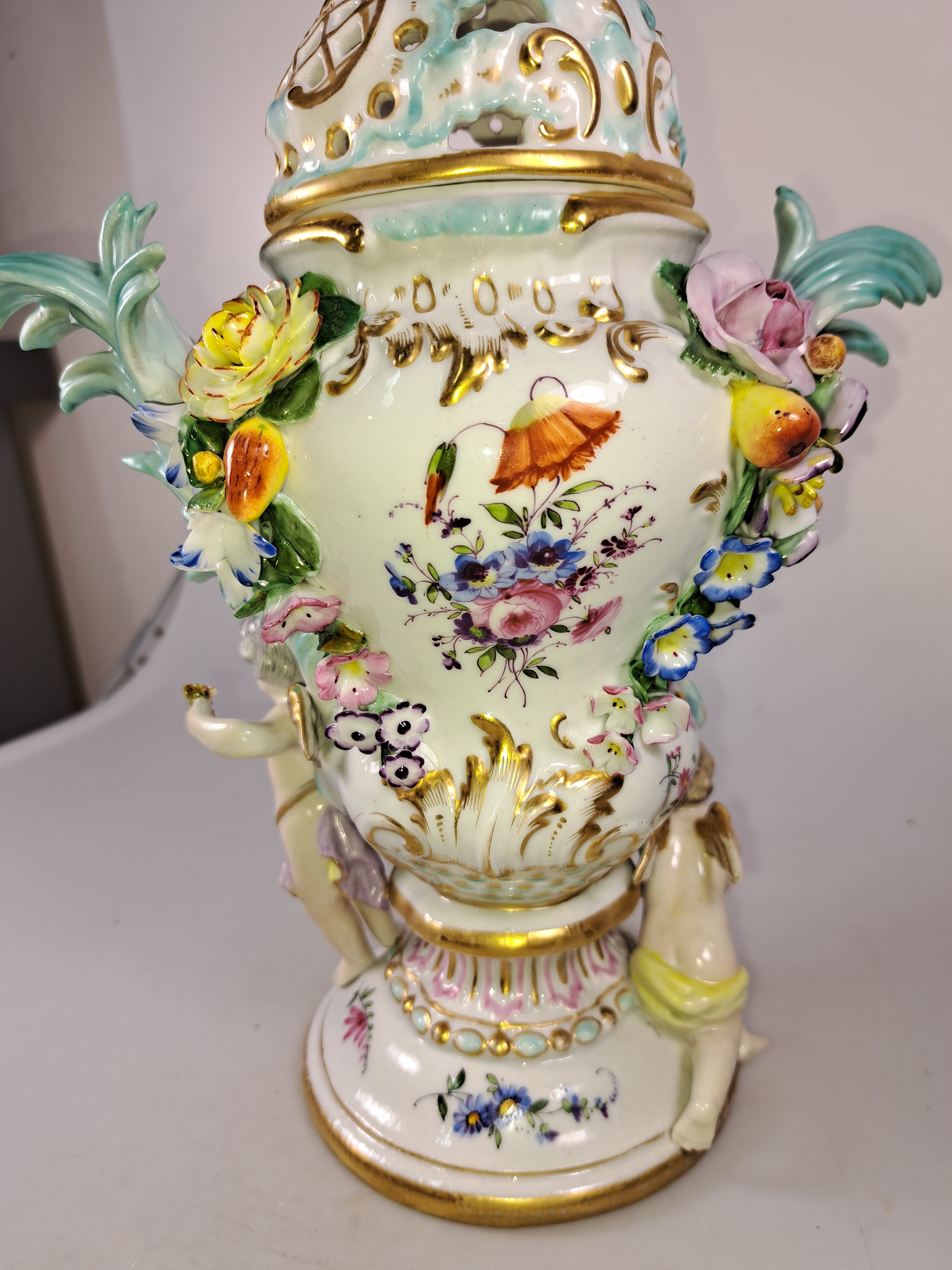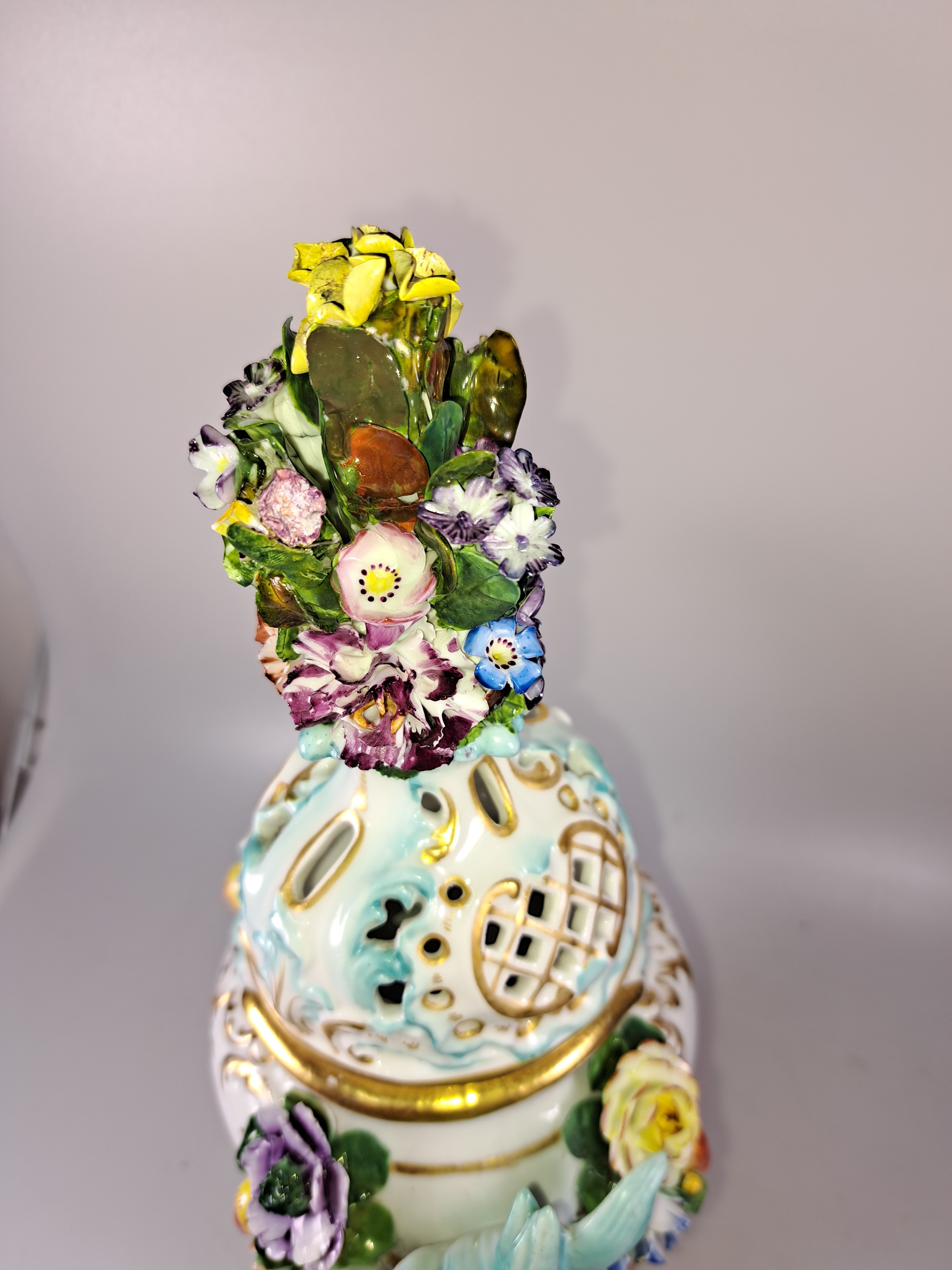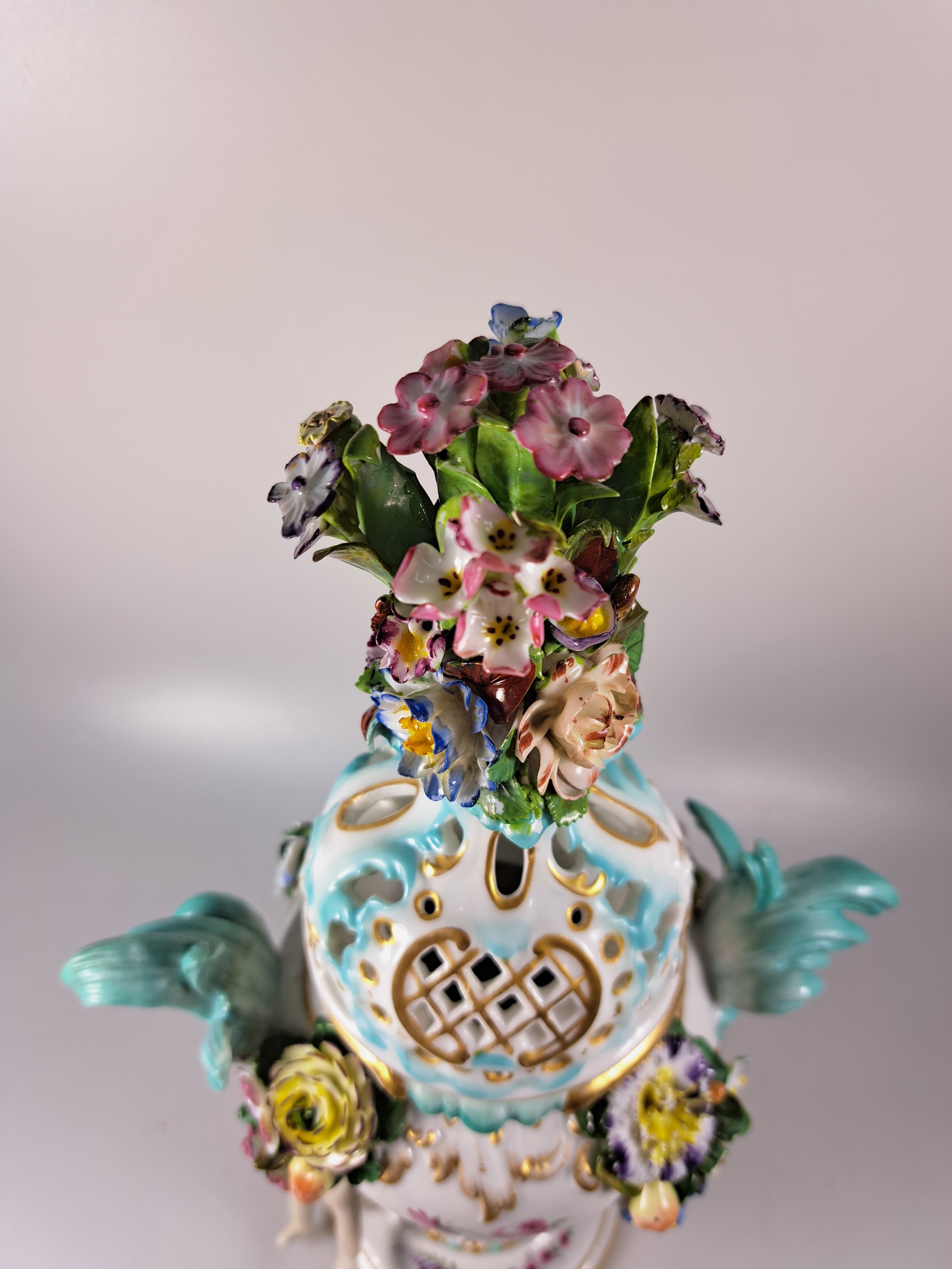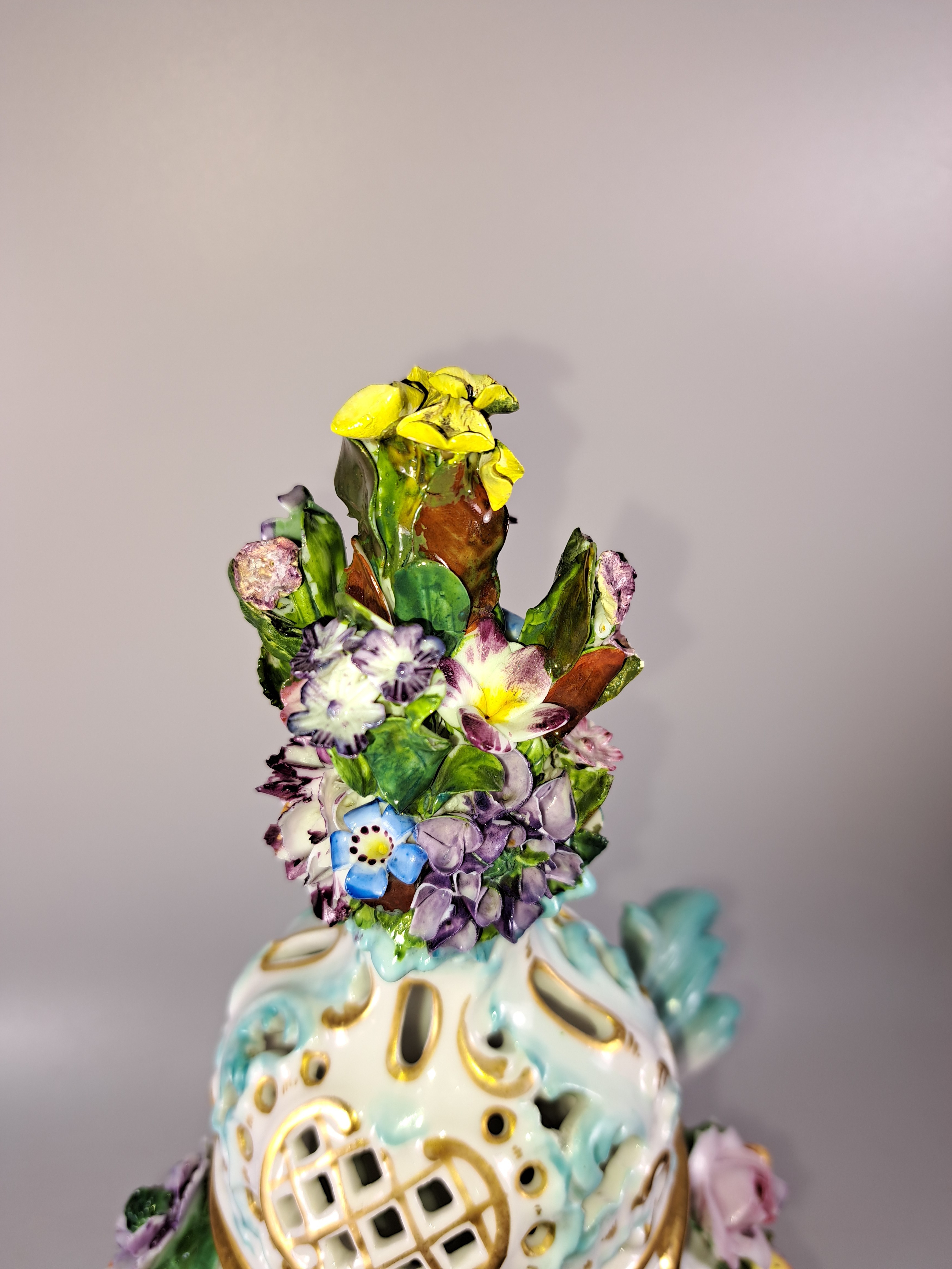 Paar Potpourri-Vasen, nach Vorbild von Meissen, Porzellan, Deckel mit Durchbrucharbeit,