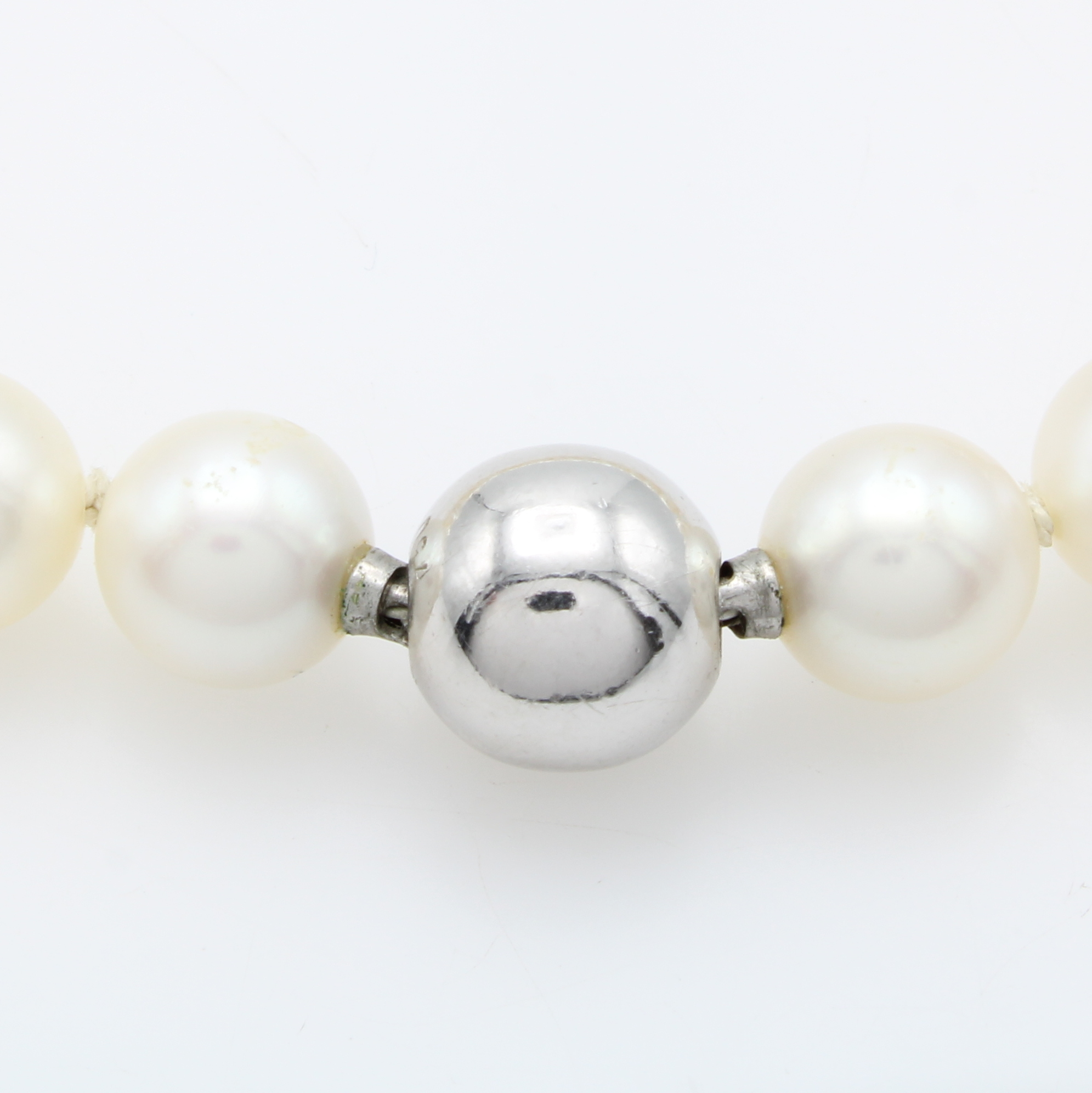 Akoyaperlcollier, Wechselkugelschließe WG 750/000, Perld. ca. 7.5-8 mm, L. ca. 51 cm