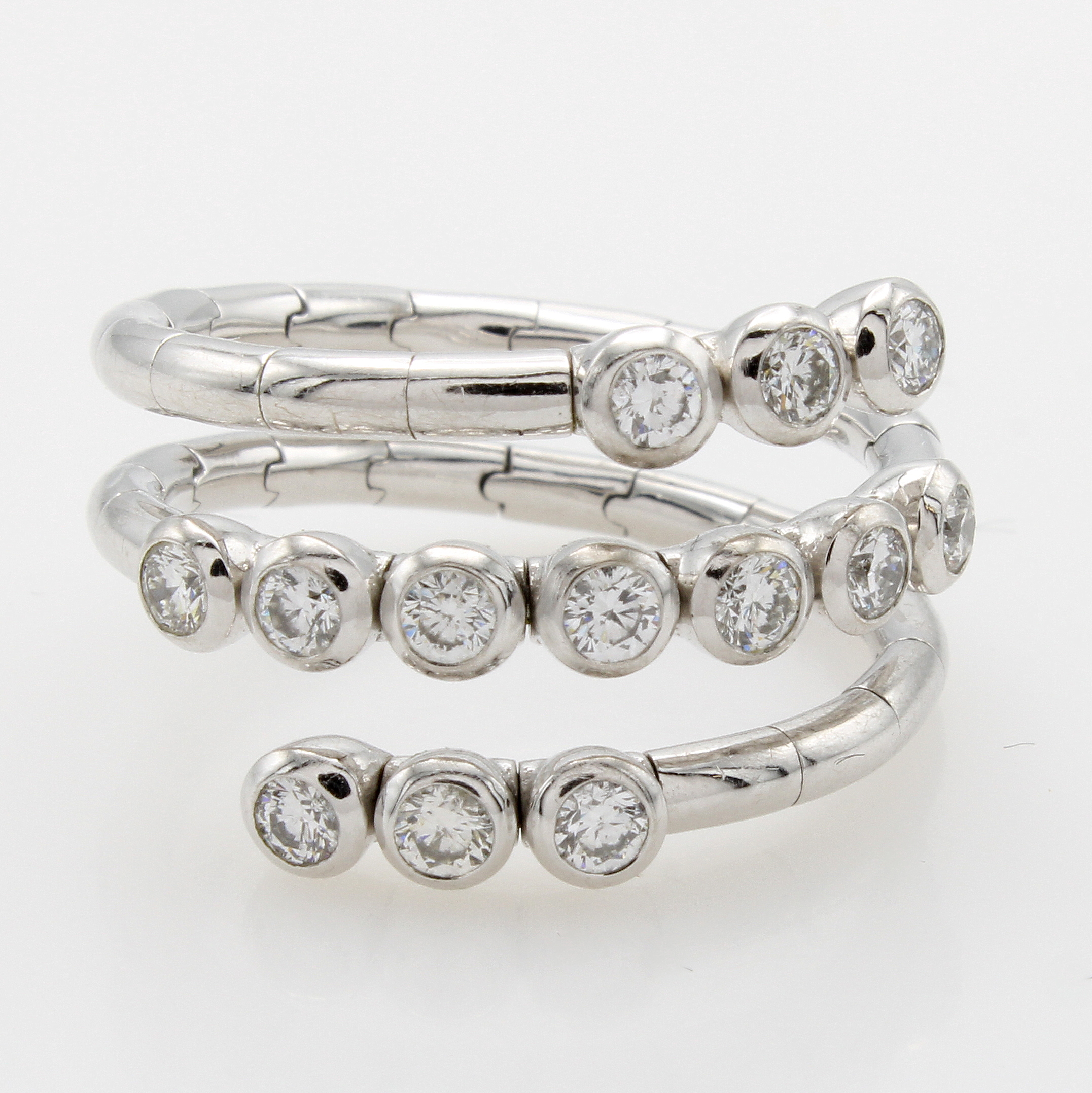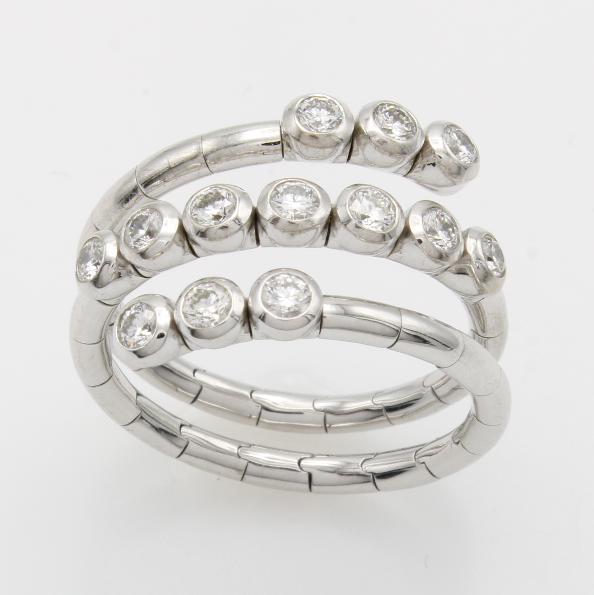 Spiralring mit Brillanten, WG 750/000, 13 Brill. zus. ca. 0.72 ct feines Weiß/si, RW ca. 56 Schätzpreis: 10800, - EUR
