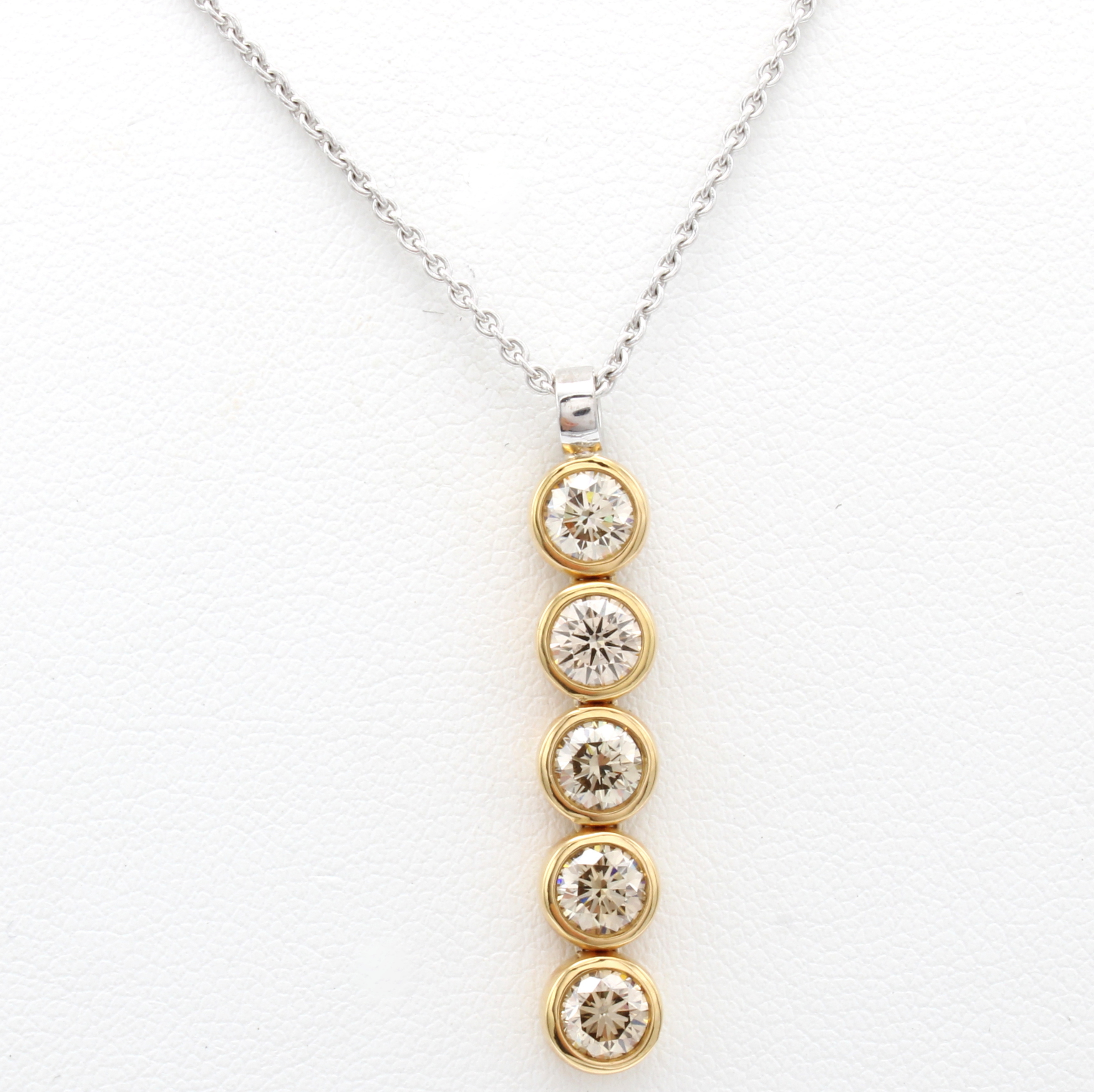 Anhänger mit Brillanten an Kette, RG/WG 750/000, 5 Brill. in einer Reihe u. in Zargenfassungen zus. ca. 1.57 ct orange-brown/si, L. ca. 42.5 cm Schätzpreis: 12300, - EUR