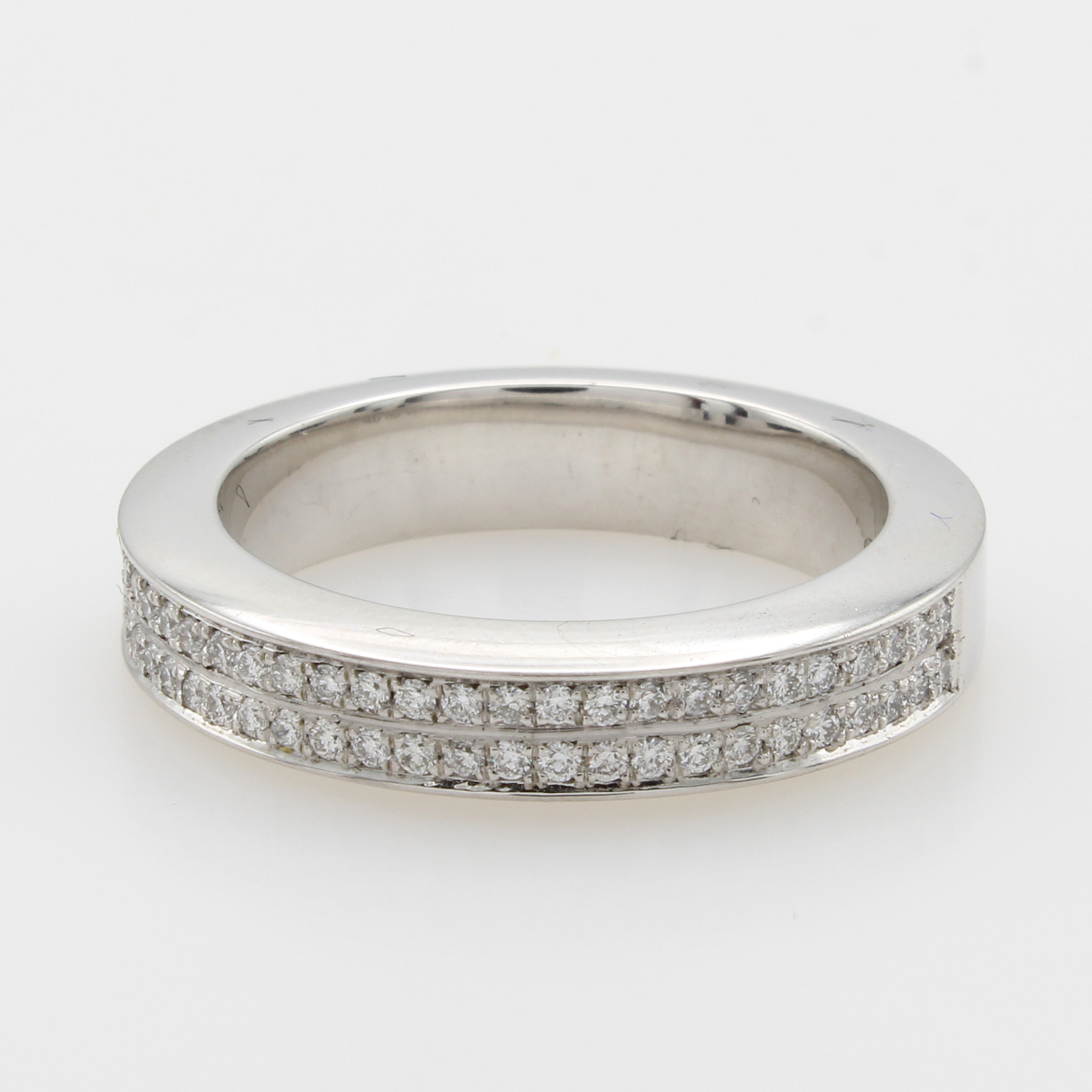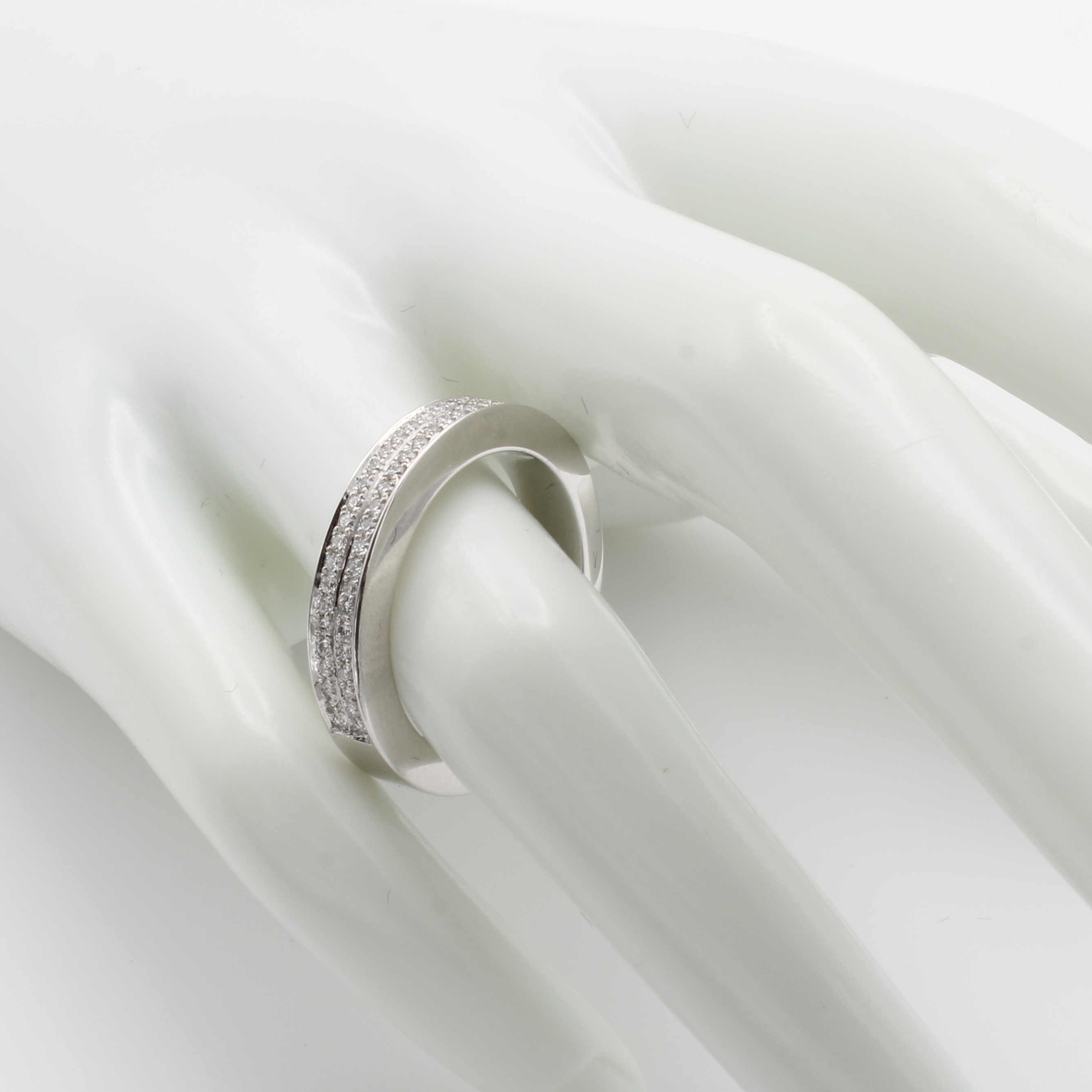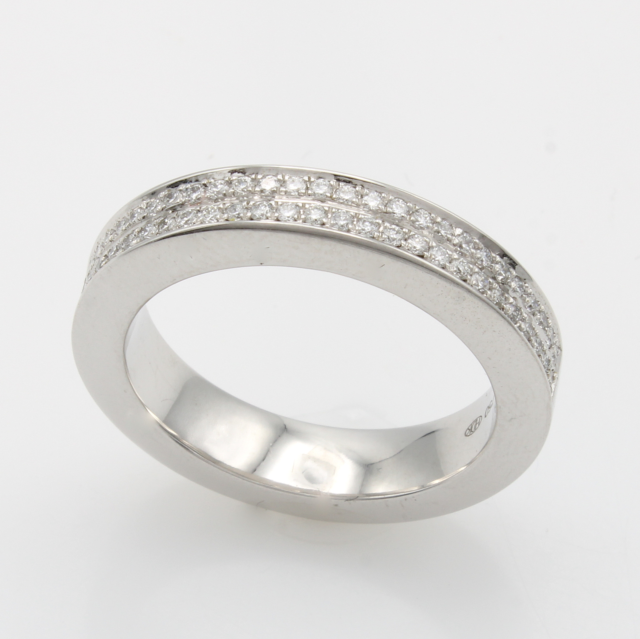Massiver Ring mit Brillanten, WG 750/000, 54 Brill. in 2 Reihen gefaßt zus. ca. 0.43 ct feines Weiß/vs, RW ca. 59 Schätzpreis: 15750, - EUR