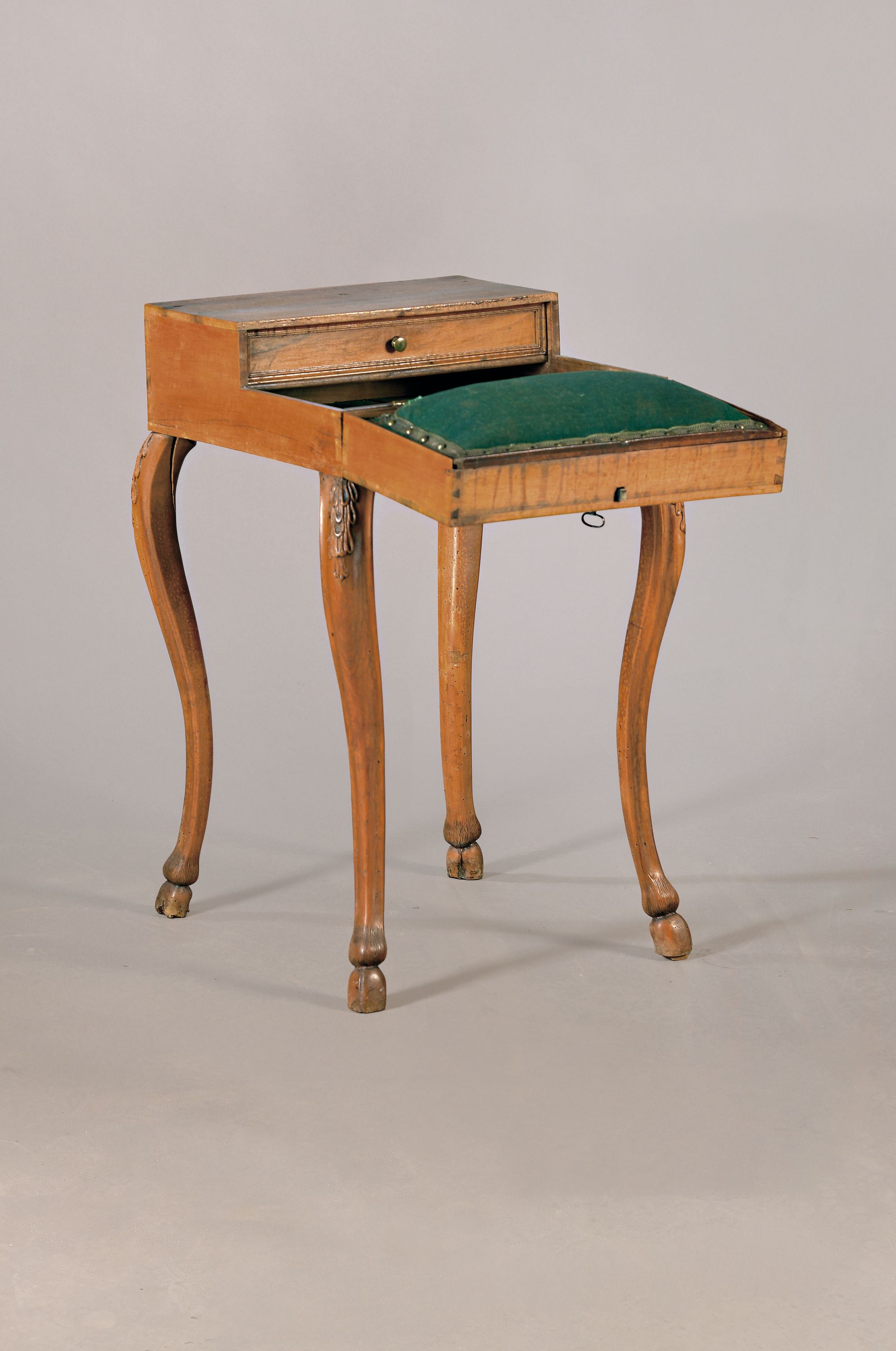 Nähkissen, eine Schublade, auf langen geschwungenen Beinen, ca. 79x46x46 cm, EZ