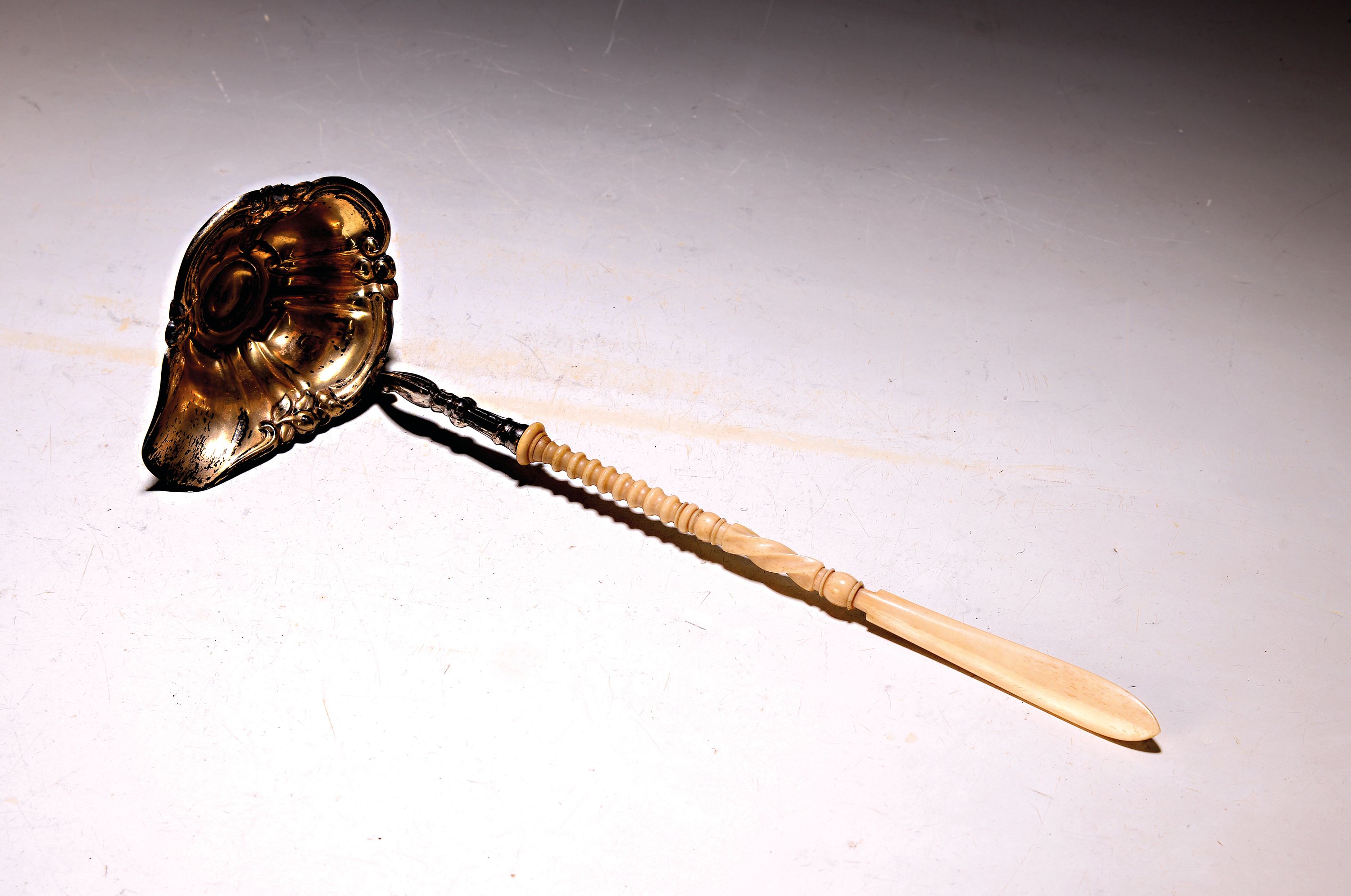 Suppen- bzw. Schöpfkelle, 19.Jh., Kelle aus Silberblech, innenvergoldet, Griff aus