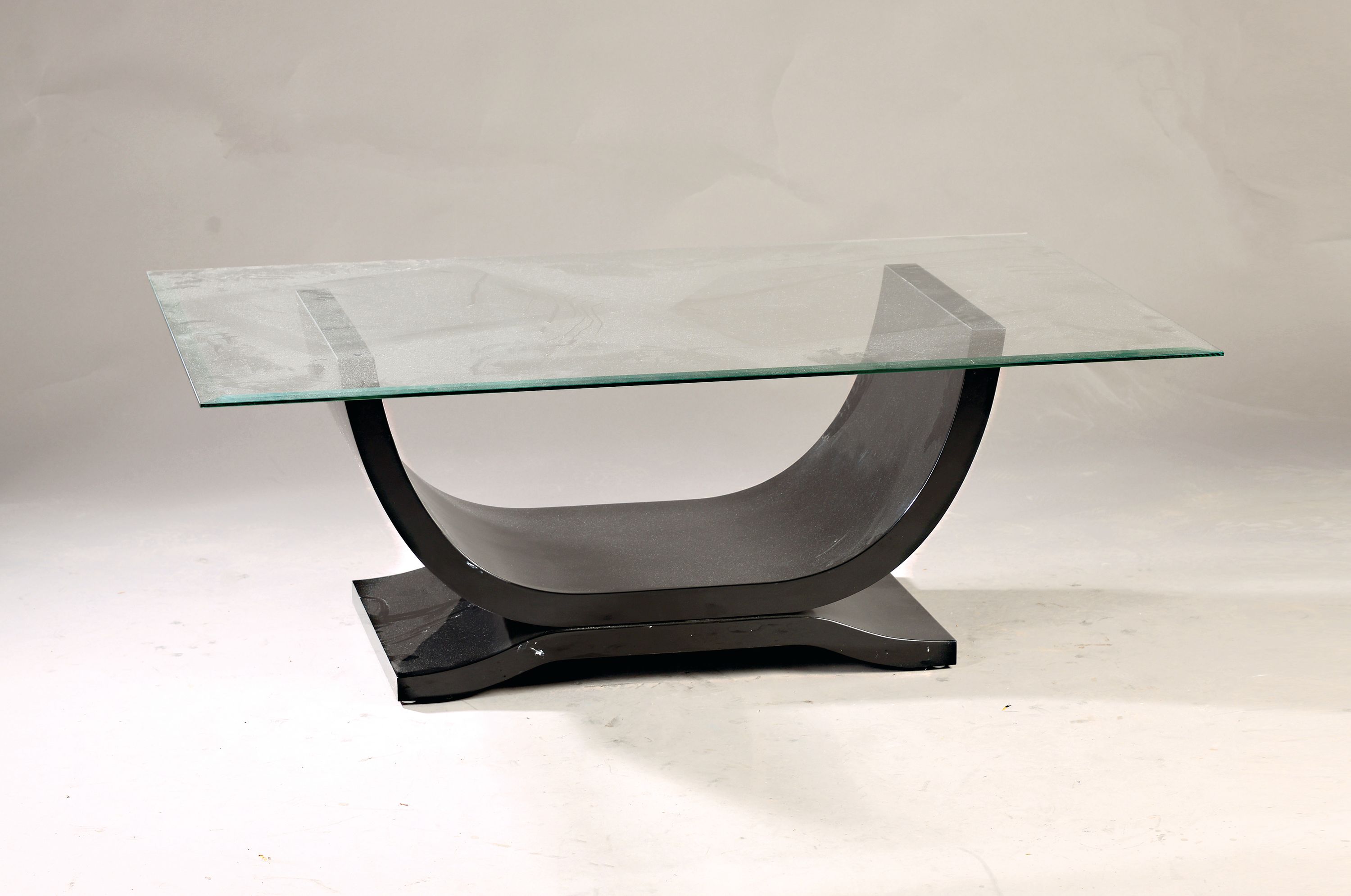 Couchtisch, Art-Deco-Stil, 20. Jh., Holz schwarz lackiert und poliert, rechteckige