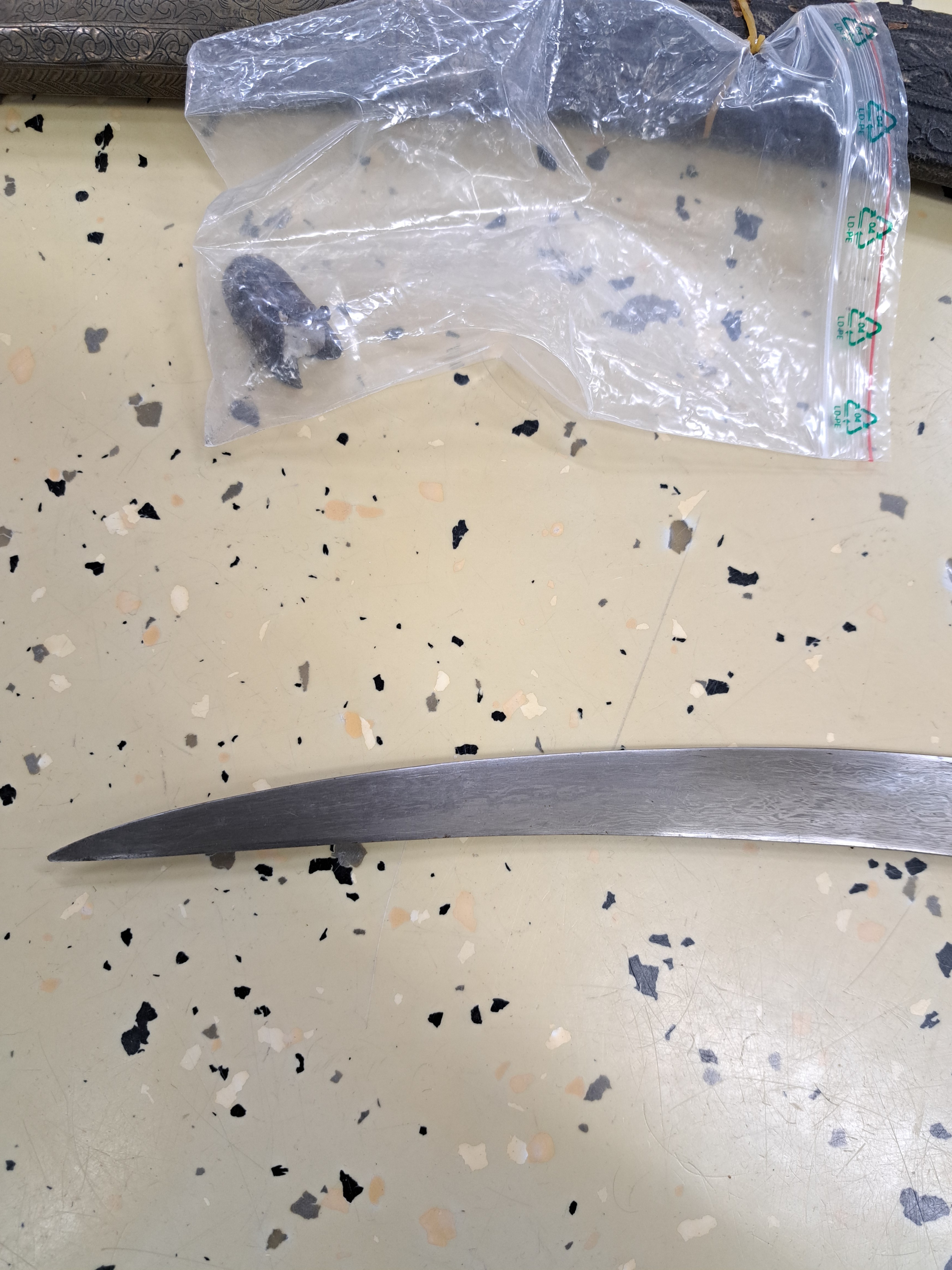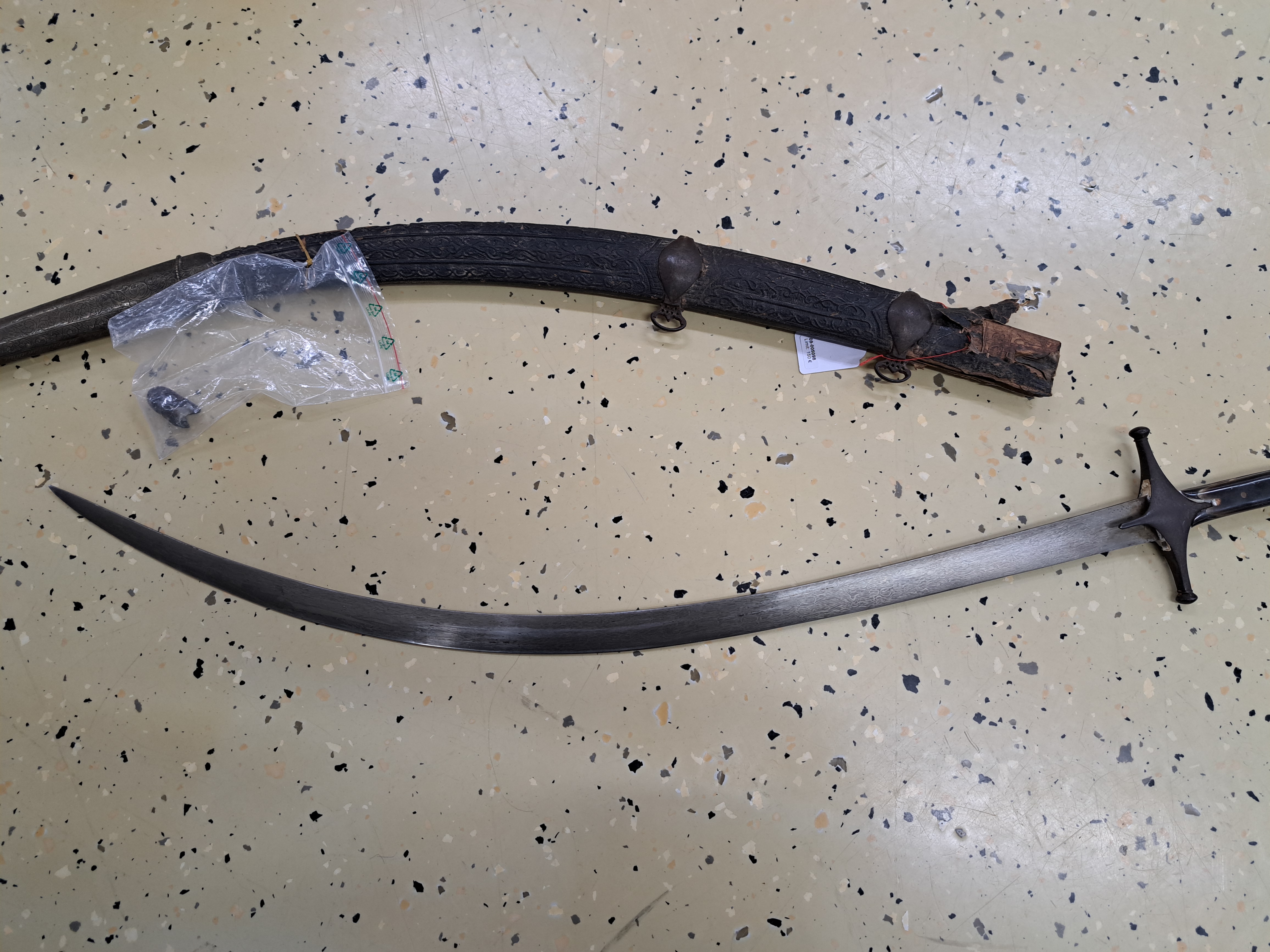 handle shells made of horn, handlerestored or dam., embossed wooden sheath partly