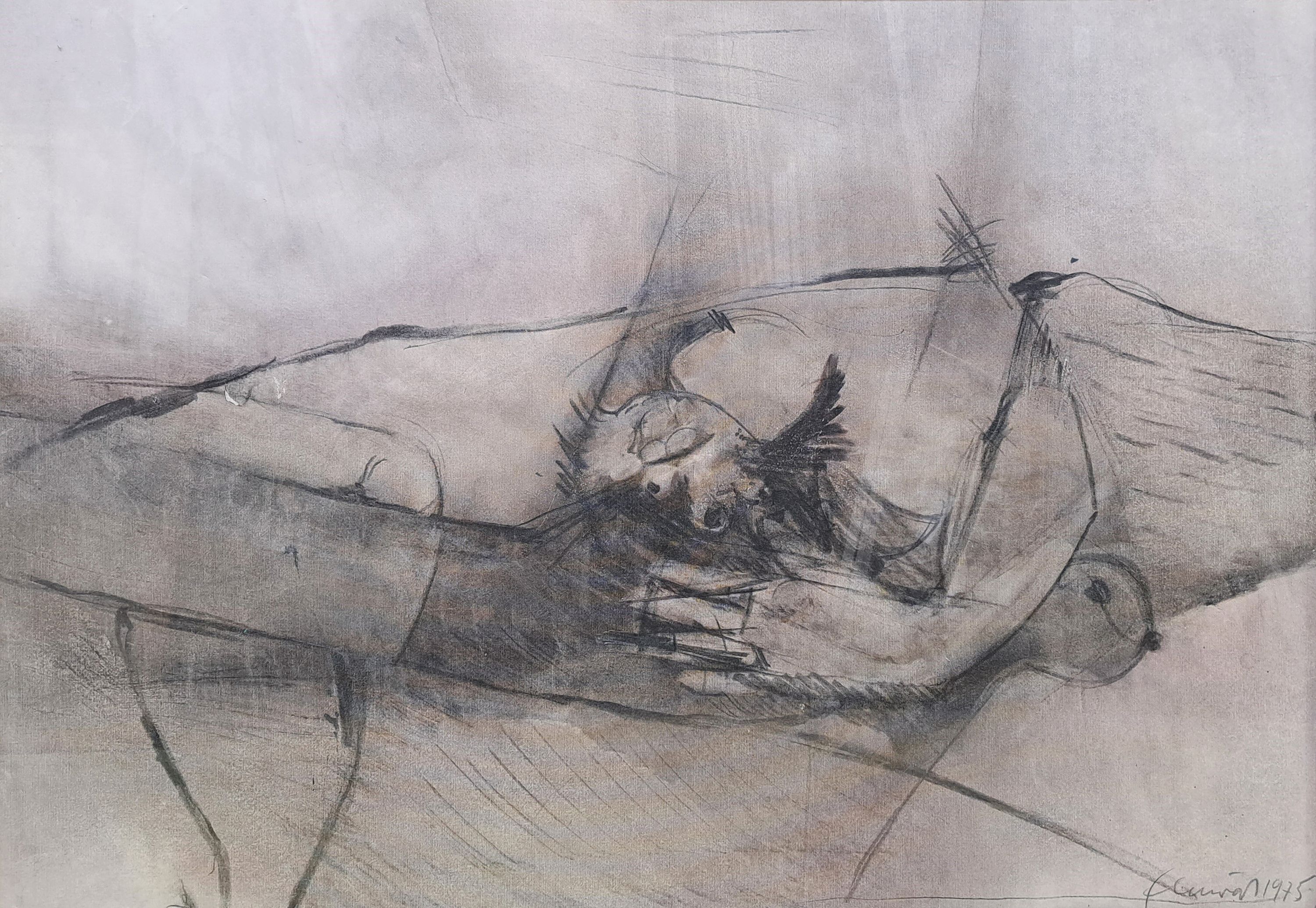 Fred (Alfred) Emmerich, 1928-1999 Mannheim, Bleistift auf Leinwand, liegender weiblicher
