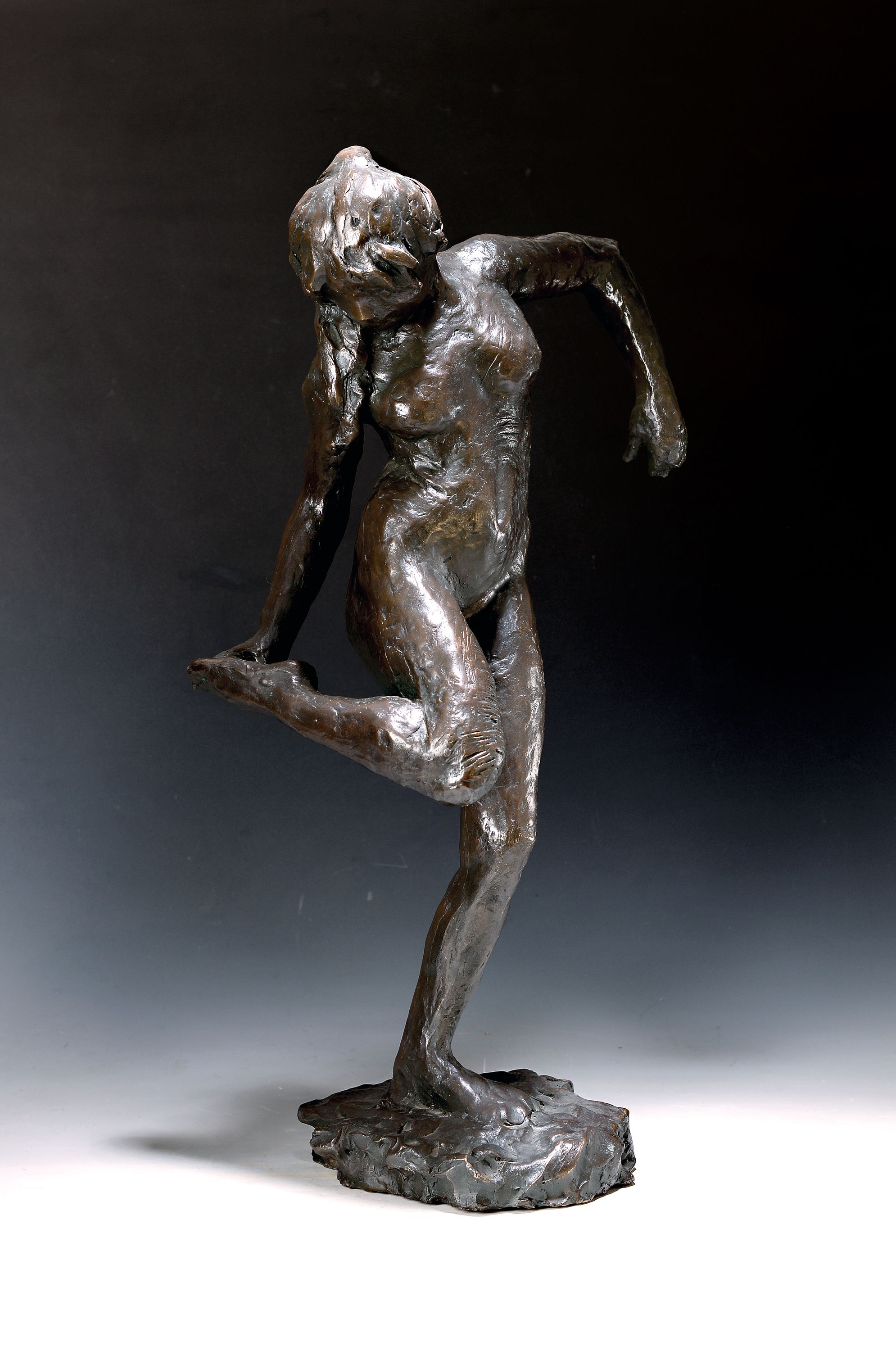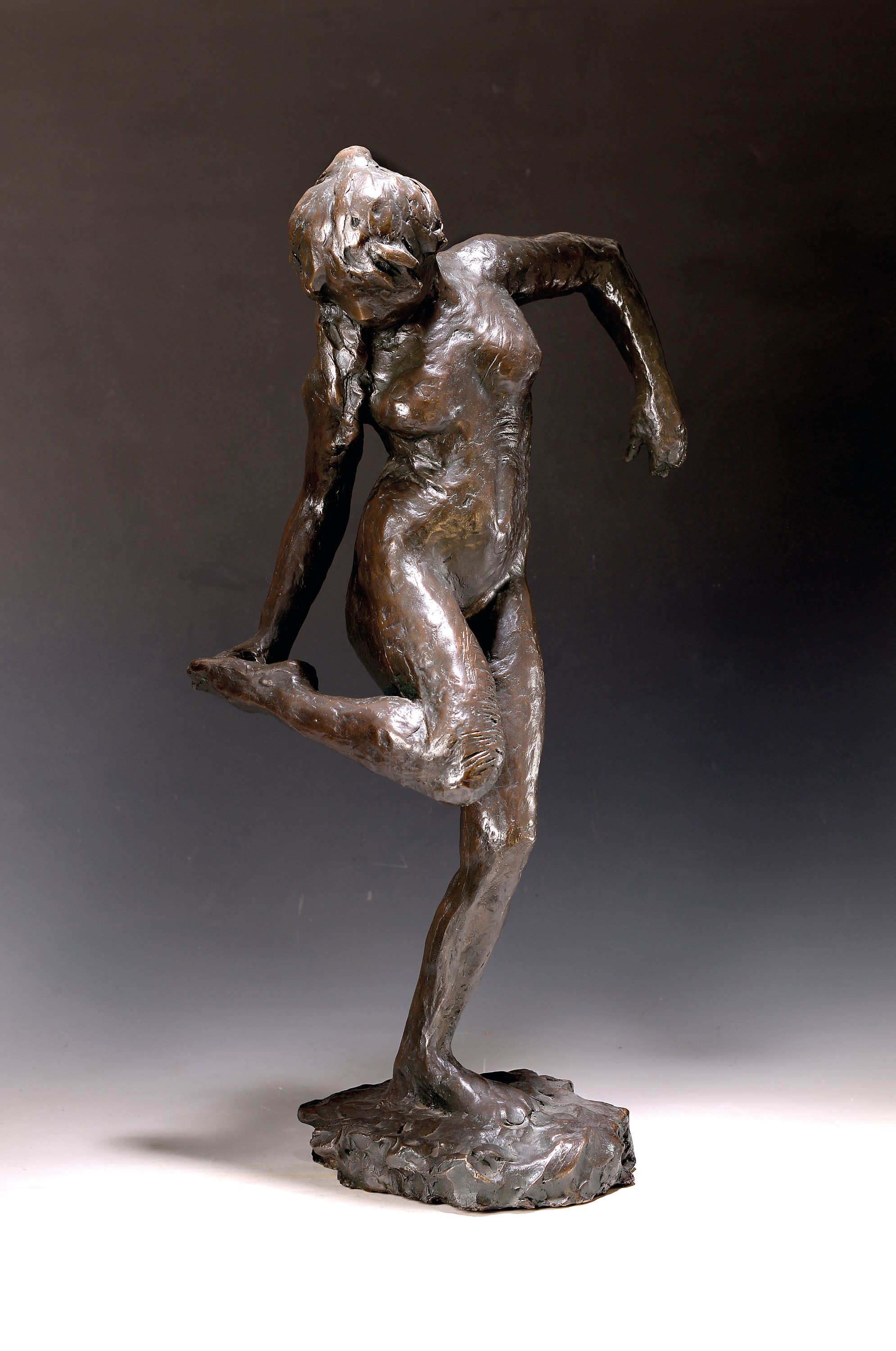 Tänzerin beim betrachten der Sohle ihres rechten Fußes, Bronze, patiniert, bezeichnet,