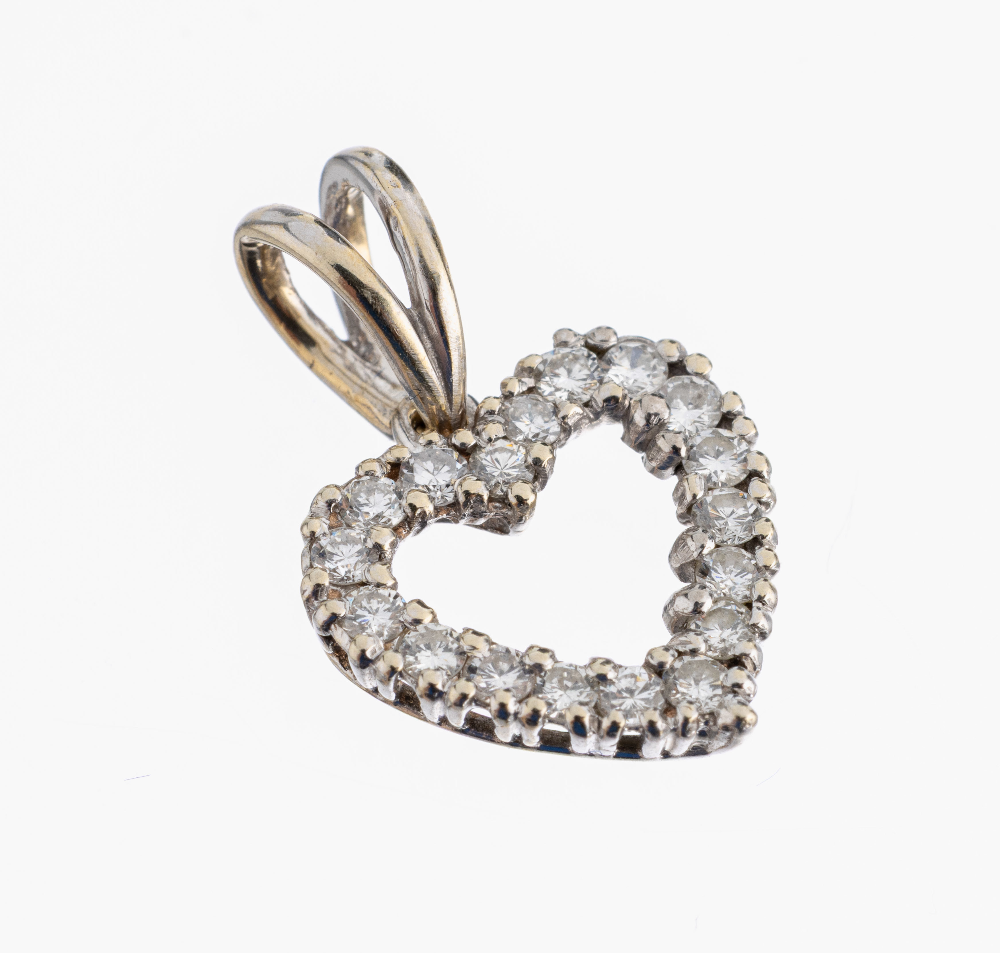 18 kt Gold Brillant-Herzanhänger, WG 750/000, 18 Brillanten zus. ca. 0.36 ct Weiß/si, ca. 1.8 g