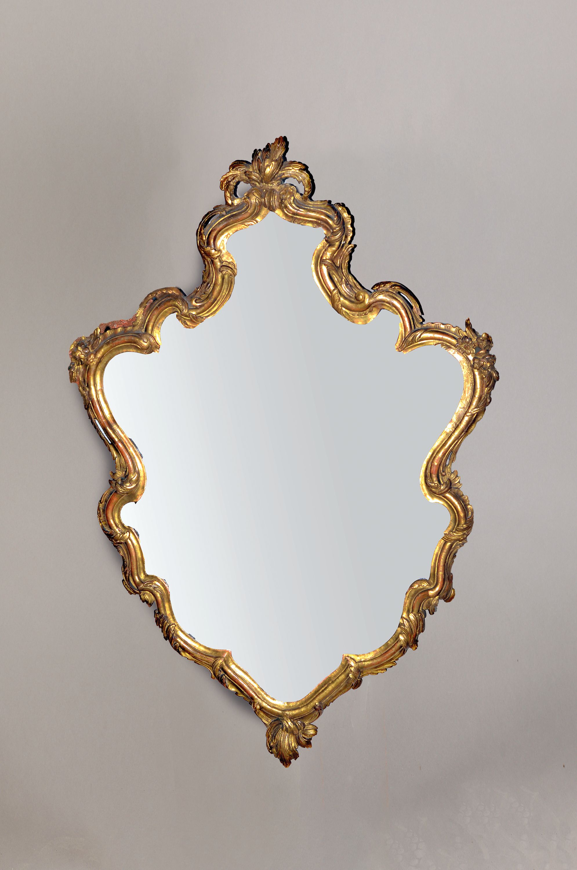 Wandspiegel, Italien, um 1880-90, Rokokostil, Holzrahmen geschnitzt und gestuckt,