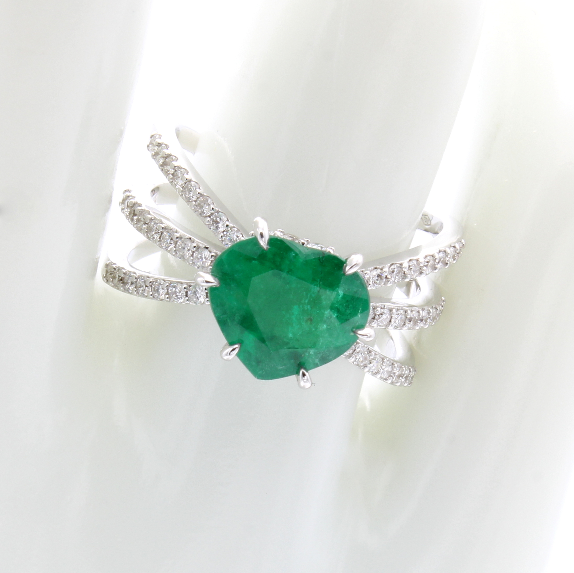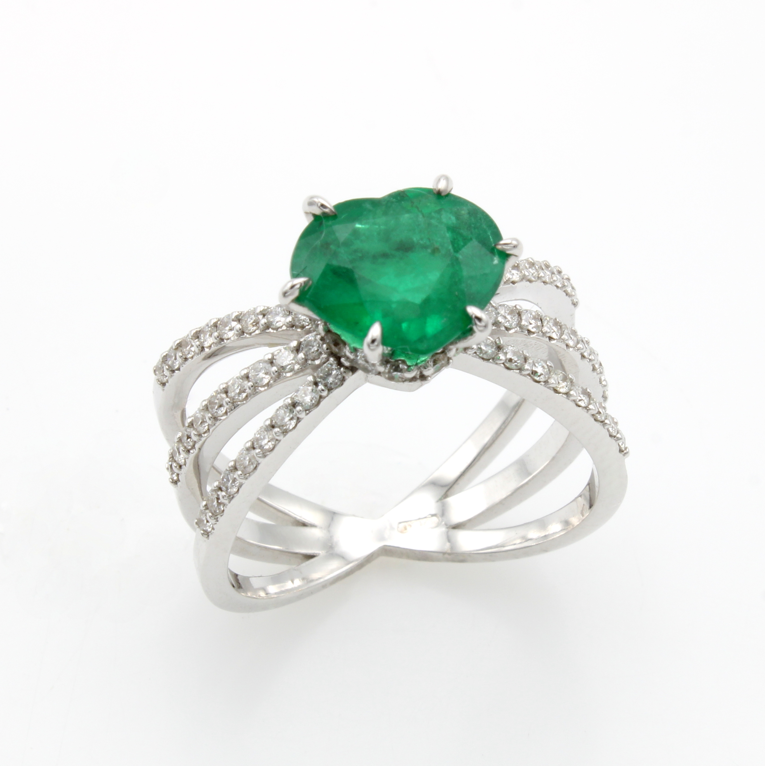 Ring mit Smaragd und Brillanten, WG 750/000,Smaragdherz ca. 2.15 ct, Ringschiene in 3-rhg.Optik, Brill. zus. ca. 0.70 ct Weiß/p, RW ca. 55 Schätzpreis: 8400, - EUR