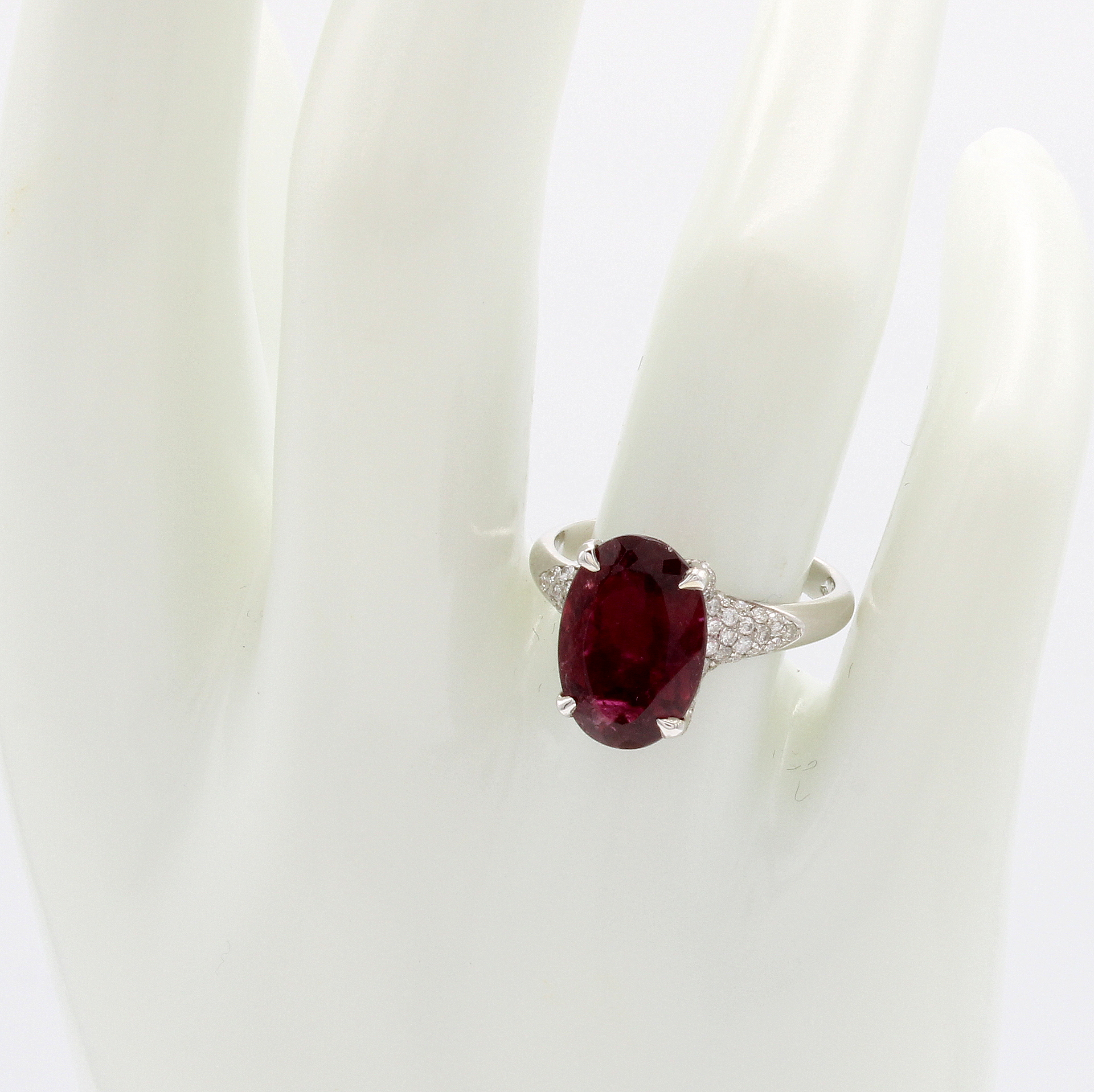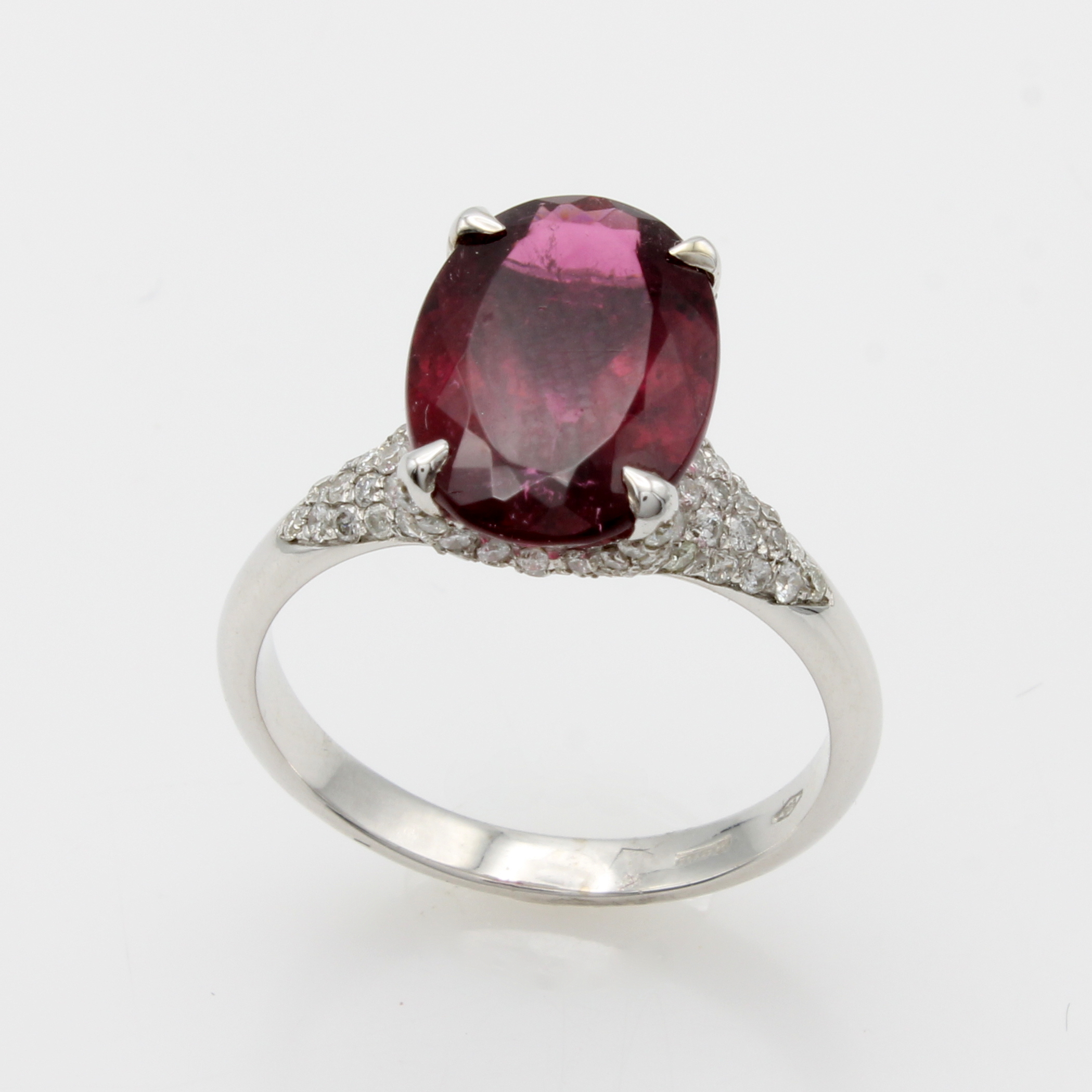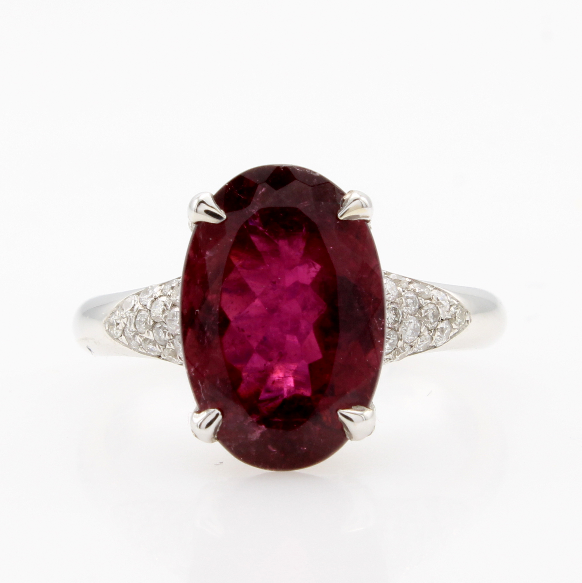 Ring mit Rubellit und Brillanten, WG 585/ 000, ovaler, fac. Rubellit ca. 4.03 ct, Brill.zus. ca. 0.65 ct Weiß/p, RW ca. 55 Schätzpreis: 6300, - EUR