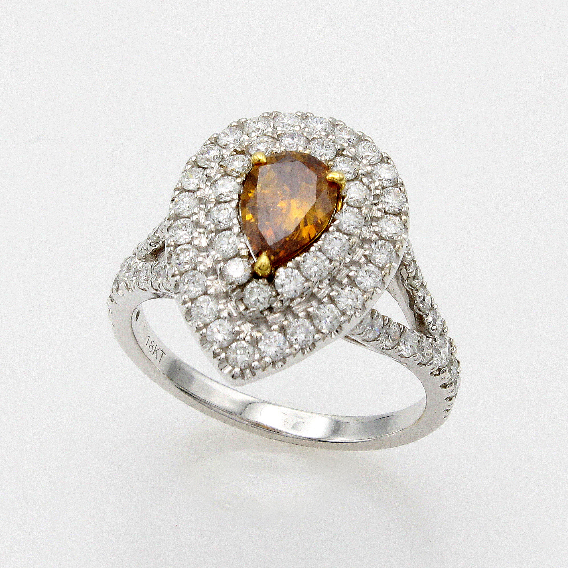 Diamanttropfen mittig gef. 0.62 ct fancy deep brownish yellowish orange/p, Besatzbrill.