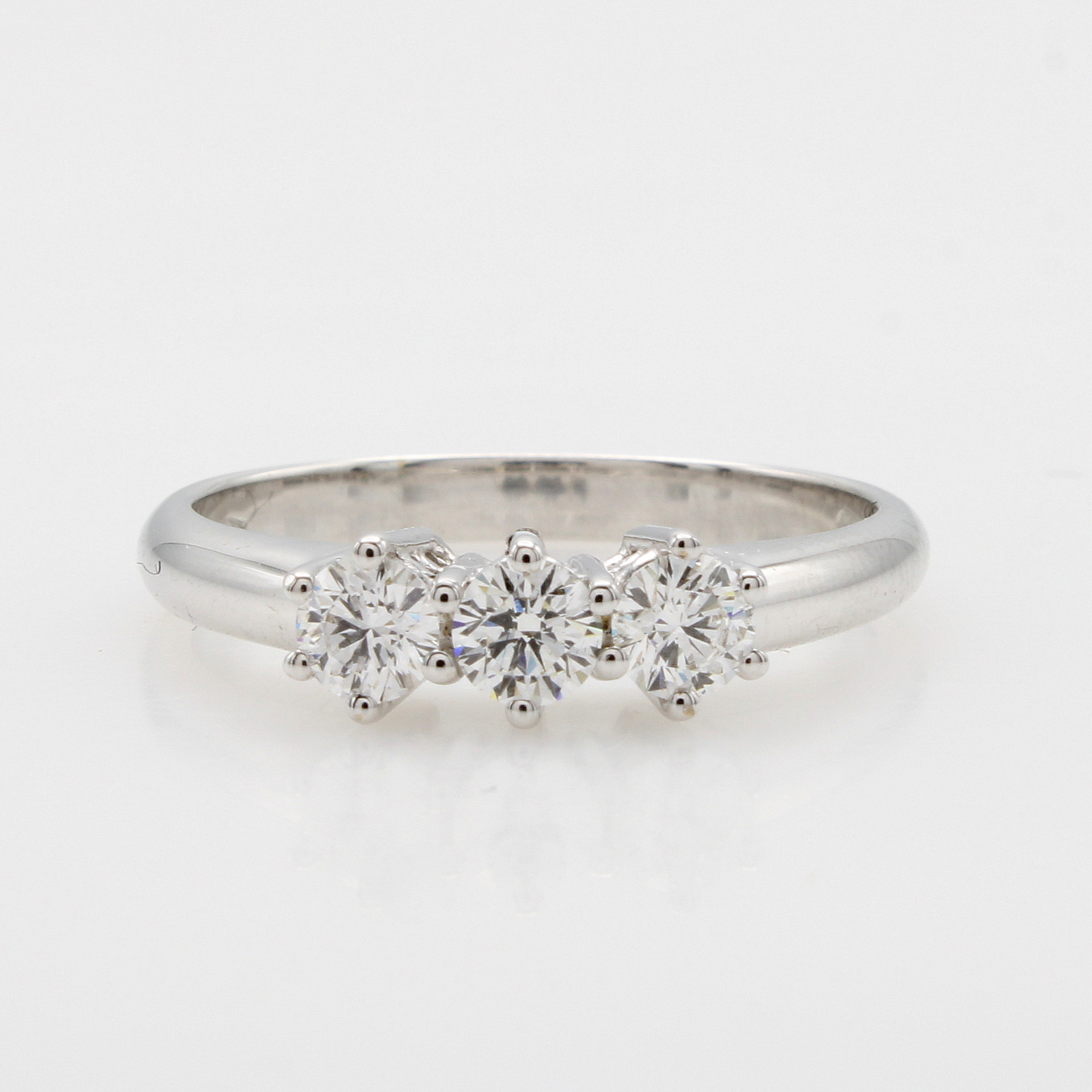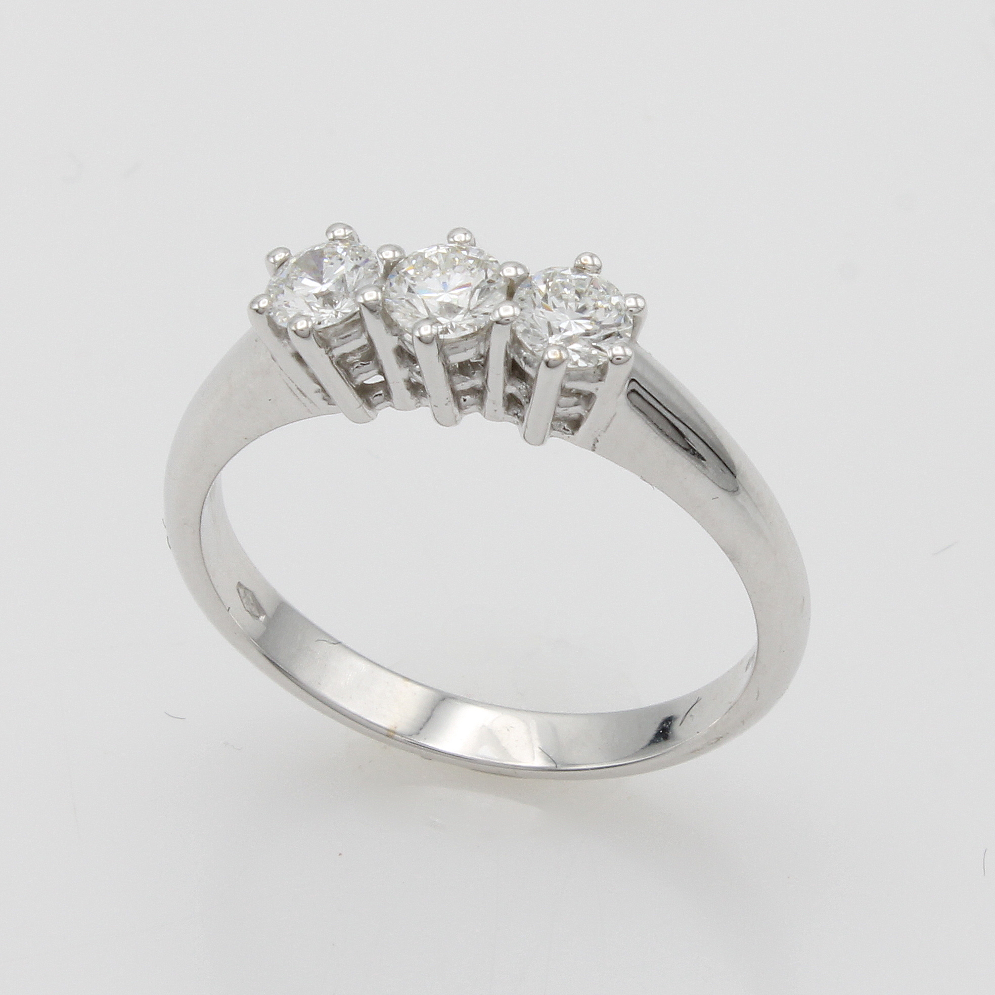 Ring mit Brillanten, WG 750/000, 3 Brill. zus. ca. 0.60 ct Weiß-l.get.Weiß/si, RW ca. 56 Schätzpreis: 4500, - EUR