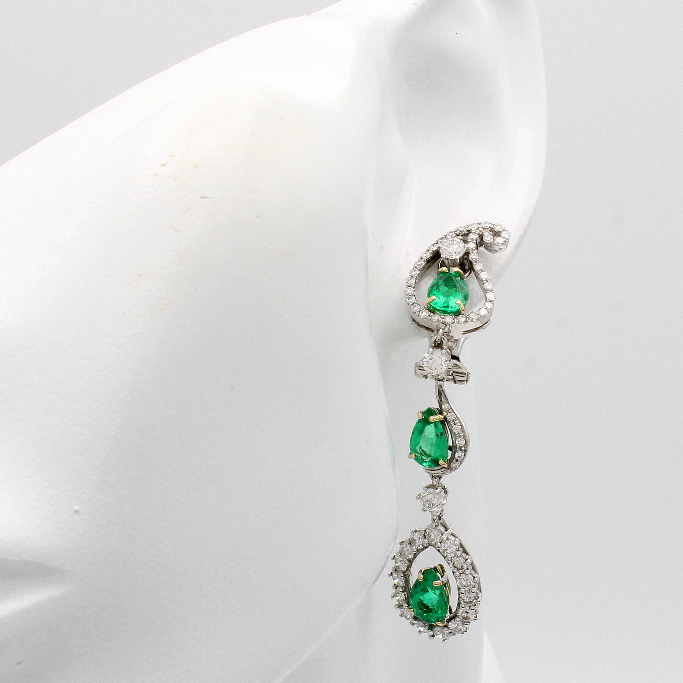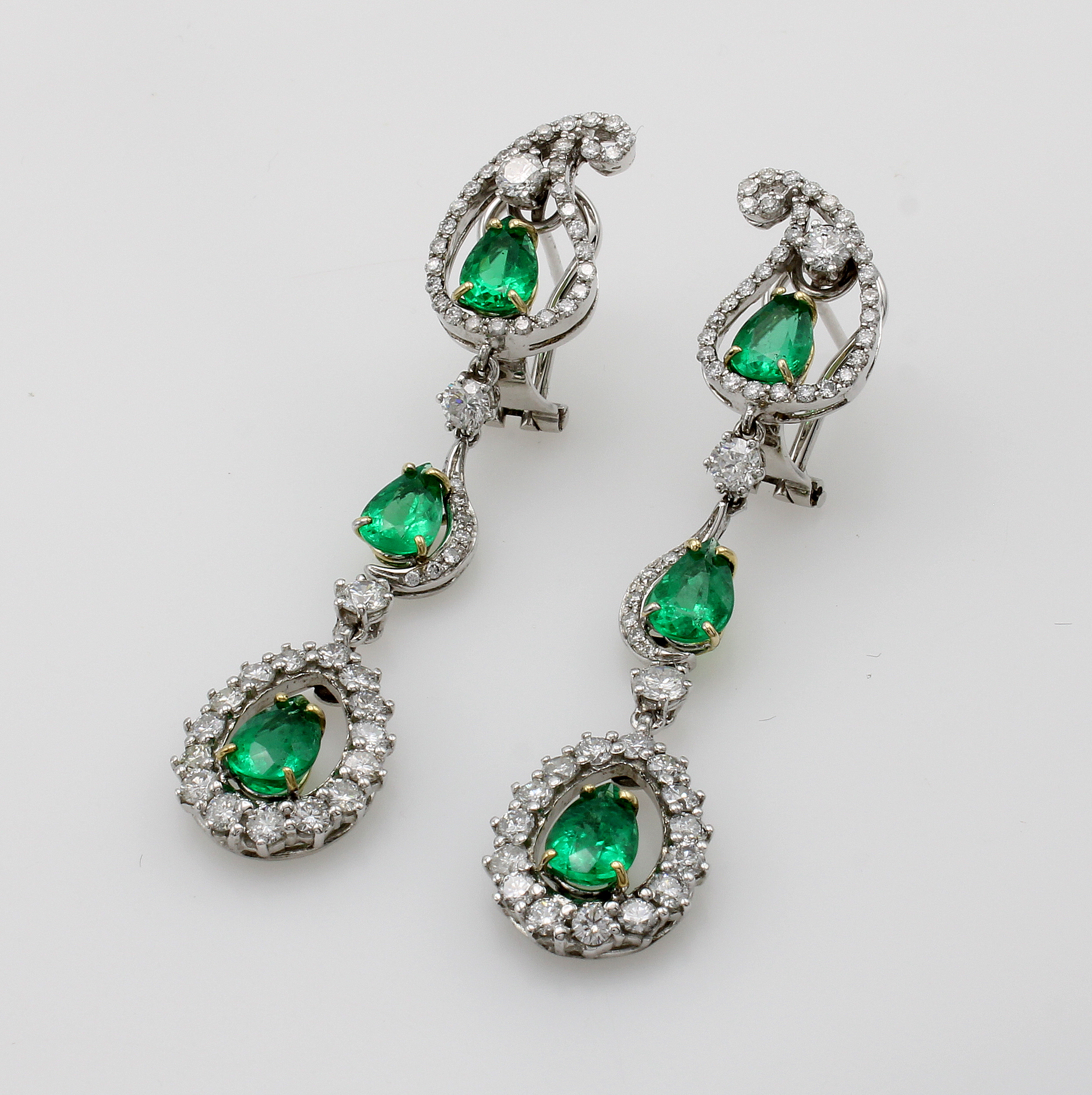 Paar exklusive Ohrgehänge mit Smaragden und Brillanten, Platin 950/000, Clipbrisur