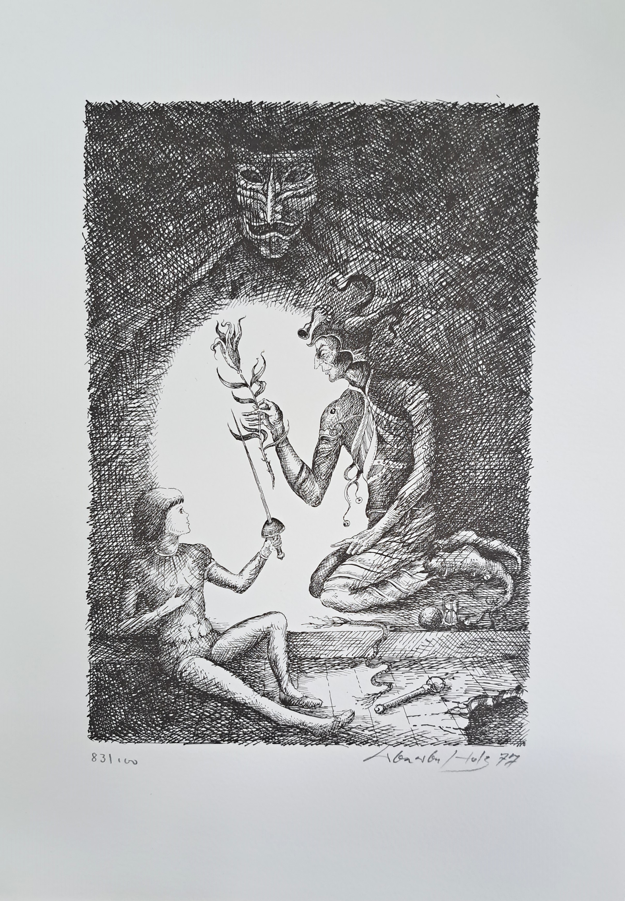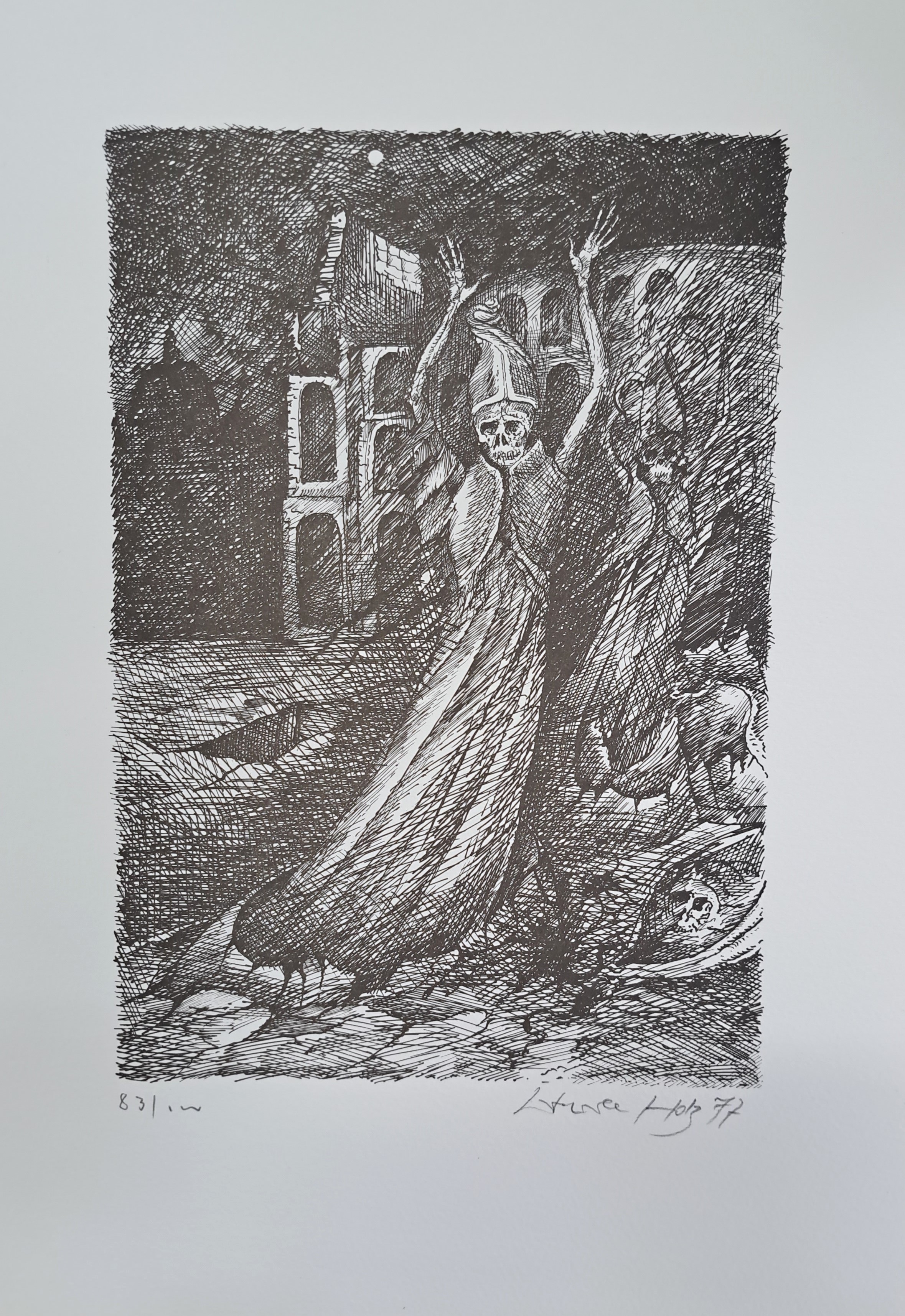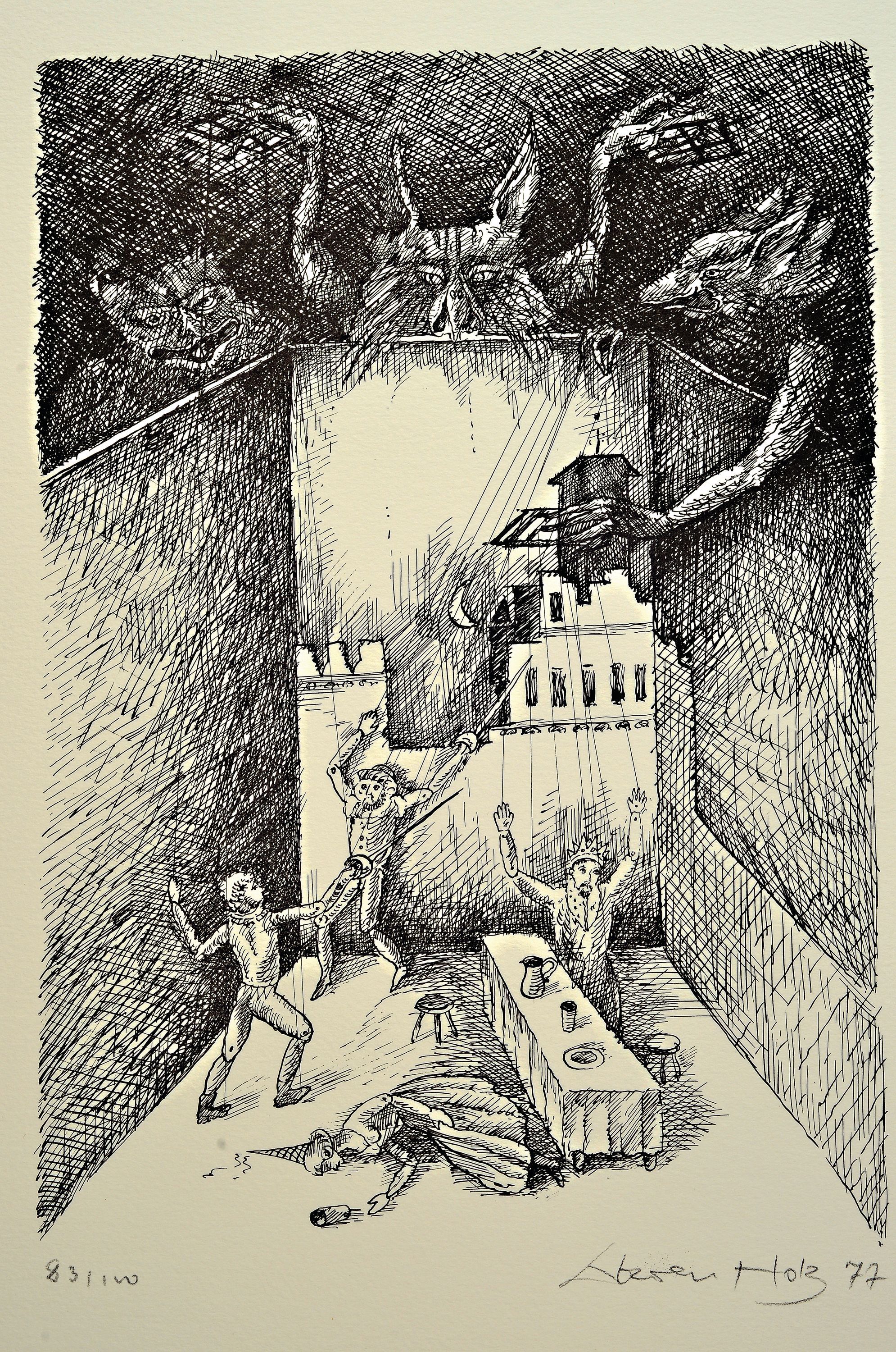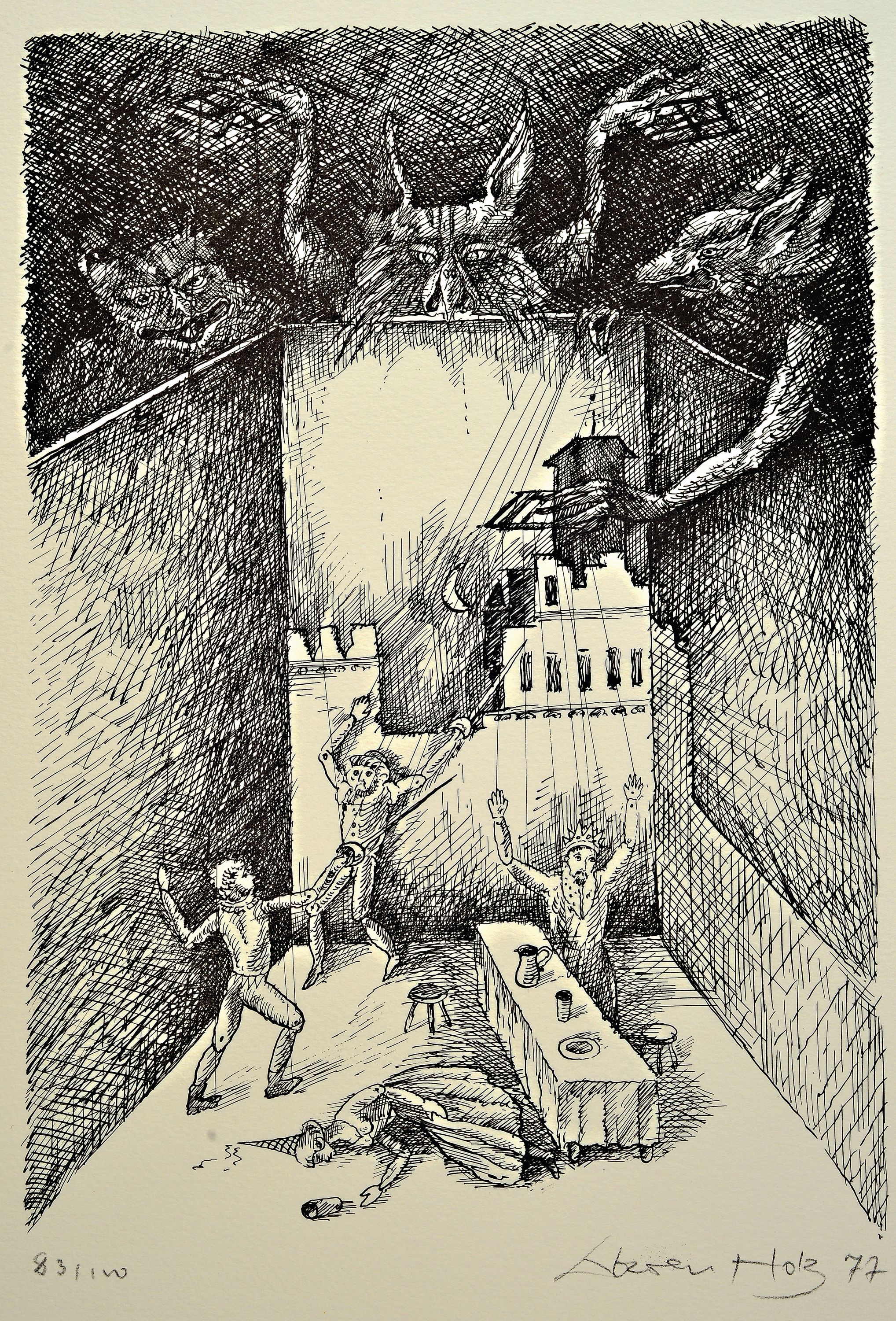 Werner Holz, 1948 Grünstadt-1991 Ludwigshafen, Die Hamlet-Folge, Mappe mit 9 Lithographien, alle handsigniert und num. 83/100, hrg. von Hans-Joachim Boerstinger 1977, Blattgr. ca. 42x30cm, orig. Mappe