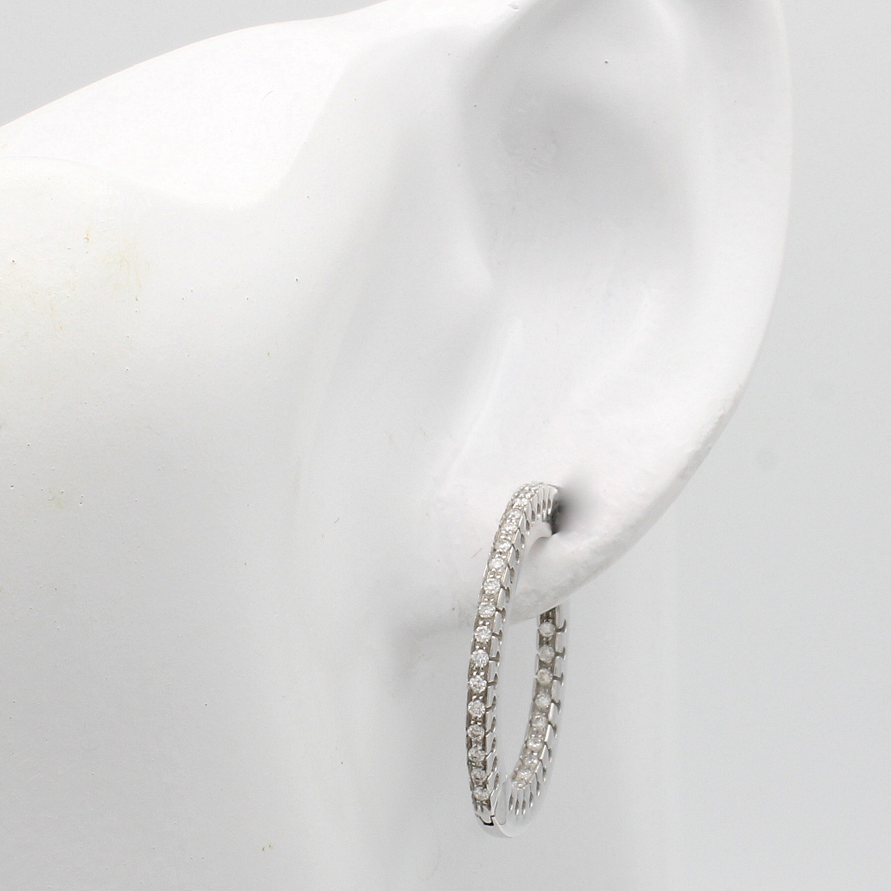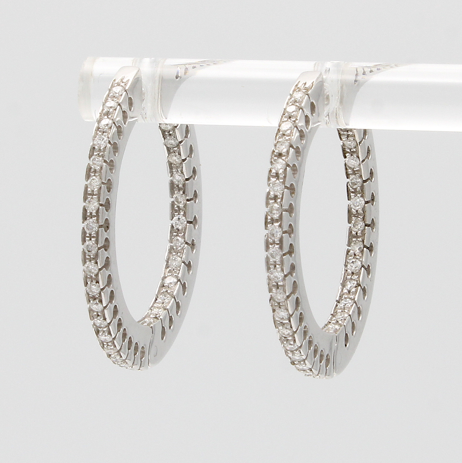 Paar Klappcreolen mit Brillanten, WG 750/000, bes. mit Brill. (z.T. auch innen gef.) in hohen Fassungen zus. ca. 0.30 ct Weiß/si, D. ca. 24 mm Schätzpreis: 4700, - EUR