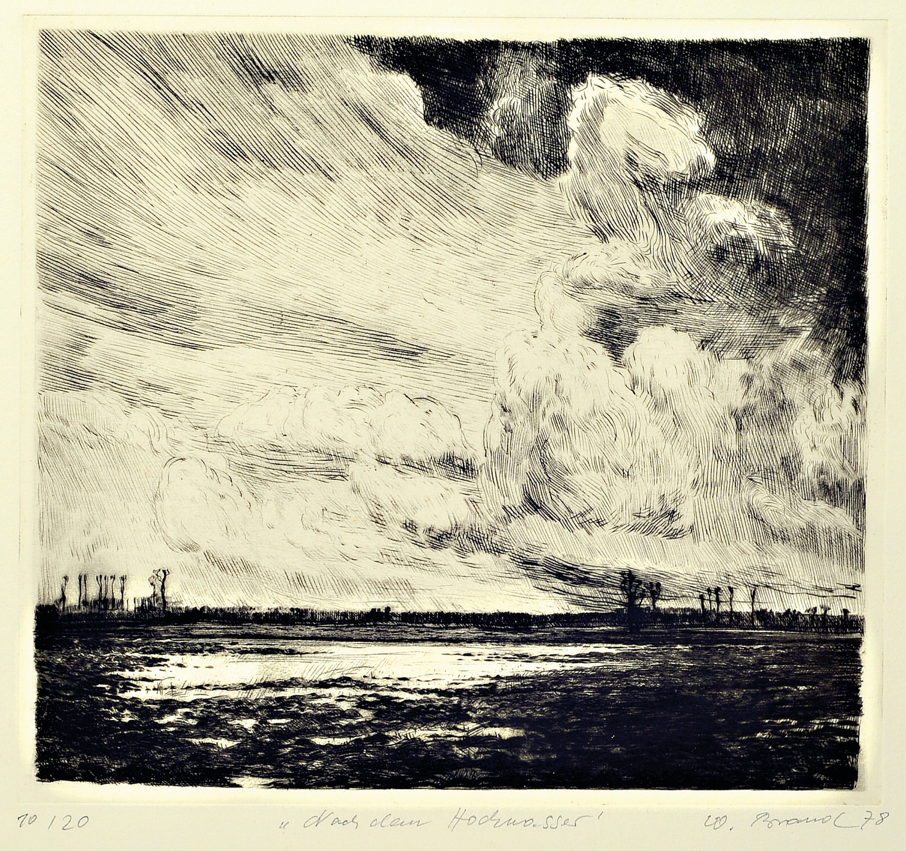 sign., dat. 79, bez. e.a., ca. 19x14cm, PP, u.Gl., R. ca. 56x45cm; Nach dem Hochwasser,