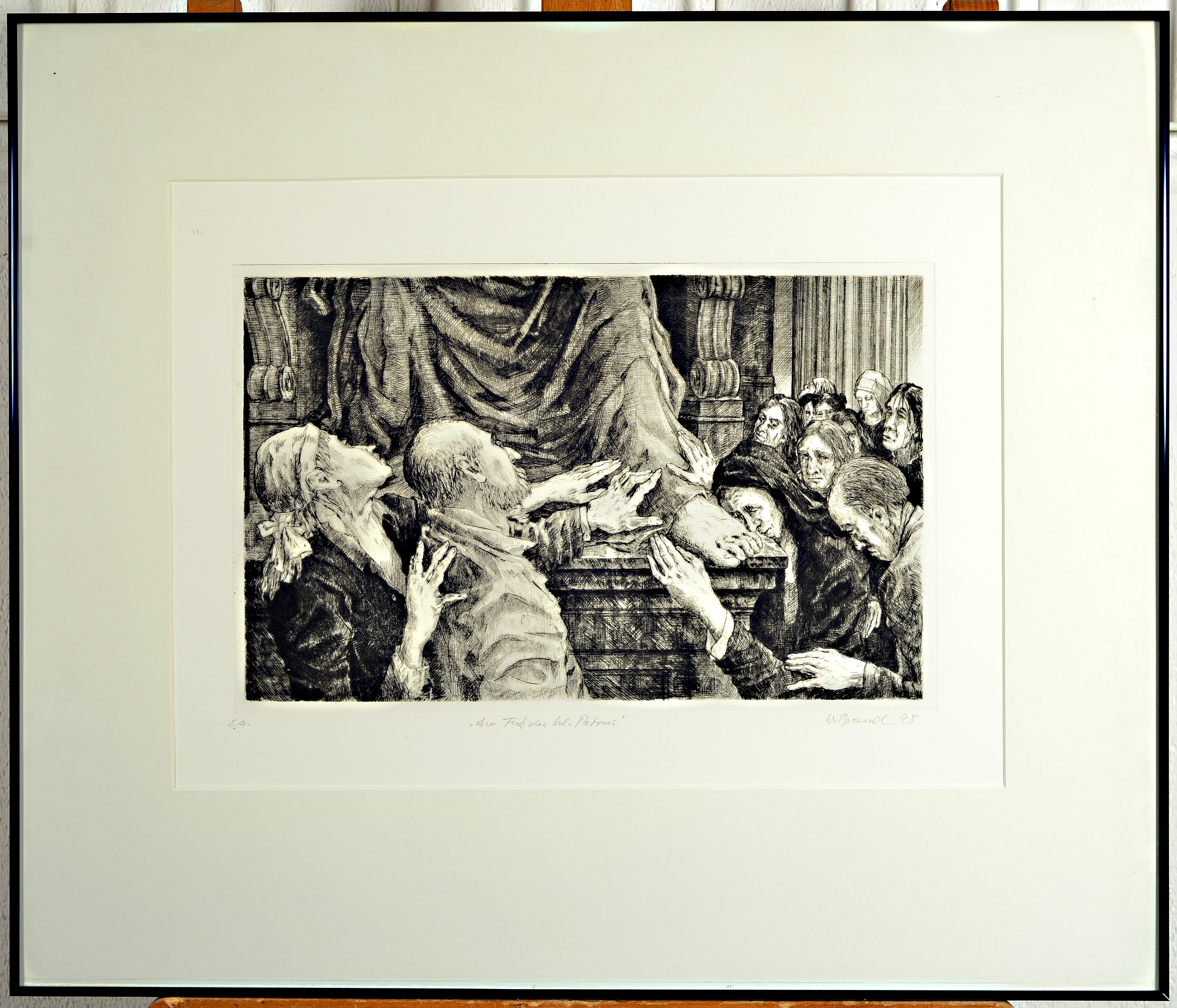 sign. und bez. e.a., ca. 43x33cm, PP, u.Gl., R. ca. 61x51cm; Am Fuß des Hl. Petrus,