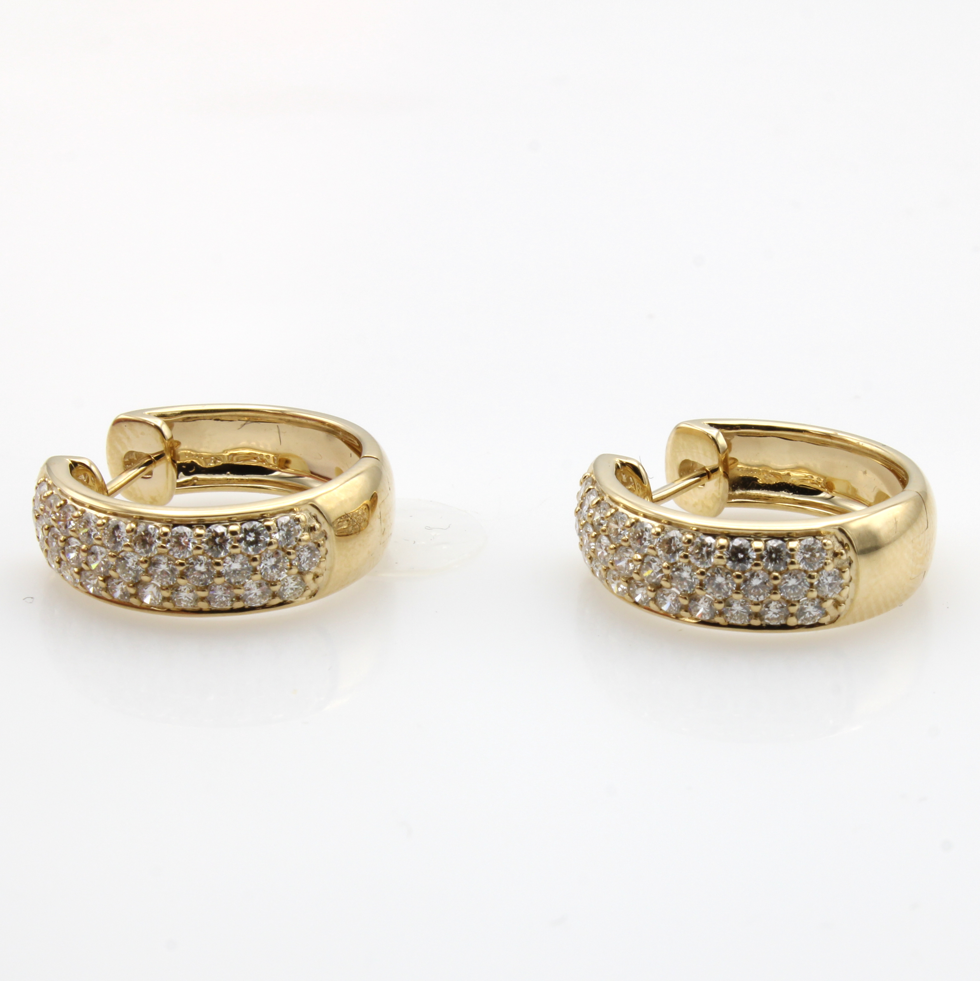 Paar Klappcreolen mit Brillanten, GG 585/000, 62 Brill. zus. ca. 1.12 ct feines Weiß+/vvs-vs Schätzpreis: 3870, - EUR