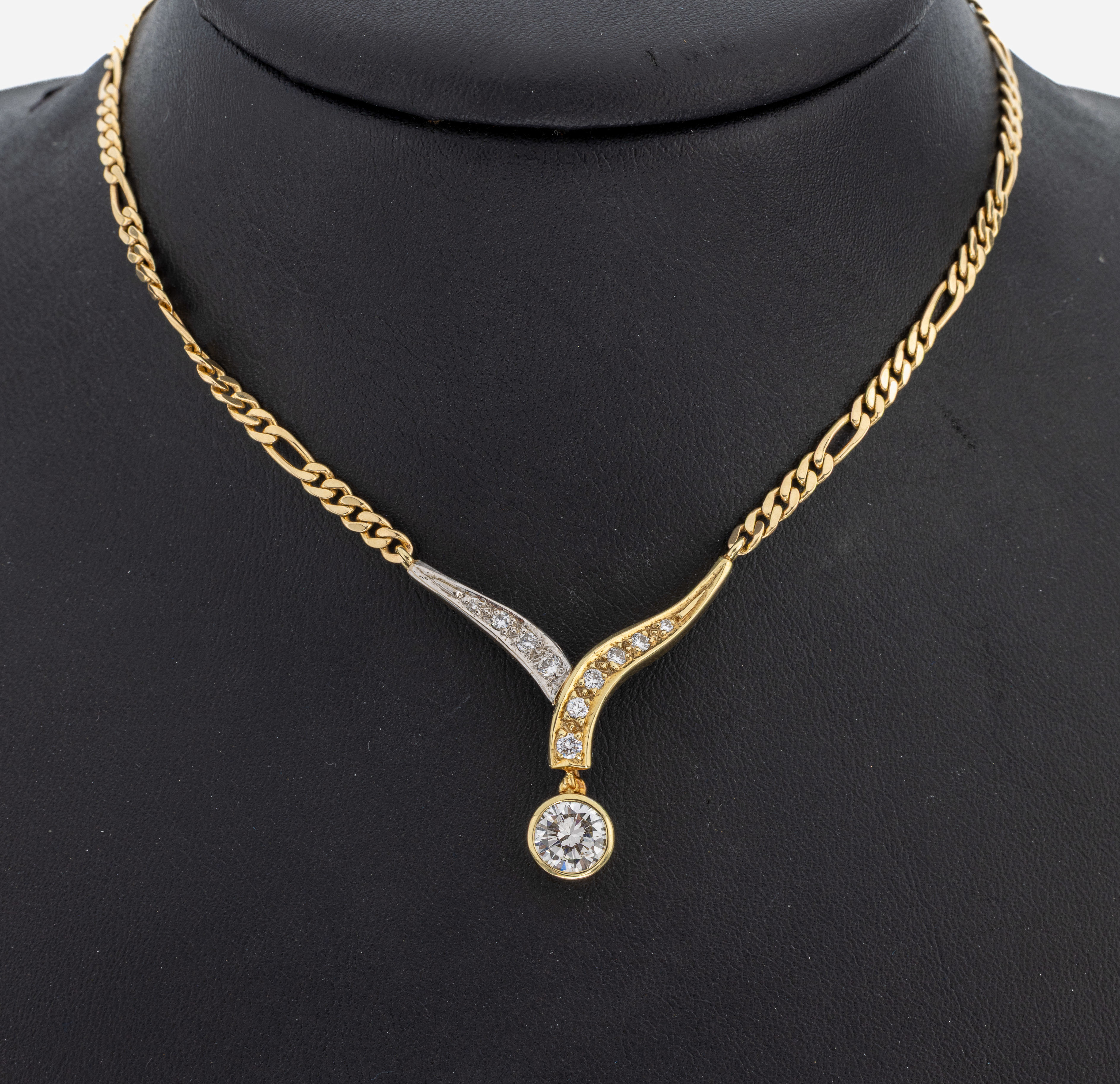 14 kt Gold Brillant-Collier, GG/WG 585/000,Mittelteil mit abgehängtem Brillant ca.