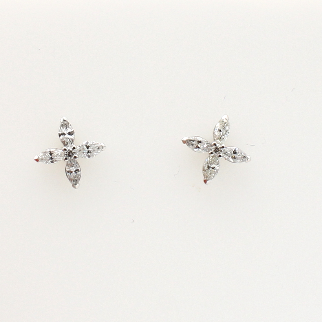 Paar Ohrstecker mit Diamanten und Brillanten, WG 750/000, 8 Diamantnavettes zus. ca. 0.63 ct u. 2 Brill. zus. ca. 0.04 ct feines Weiß/ vs, anged. Kreuzform Schätzpreis: 1900, - EUR